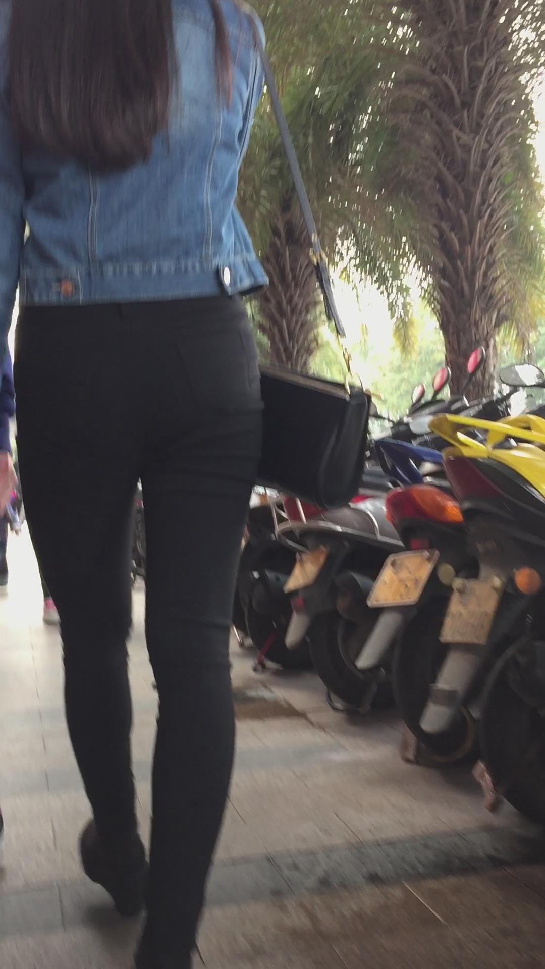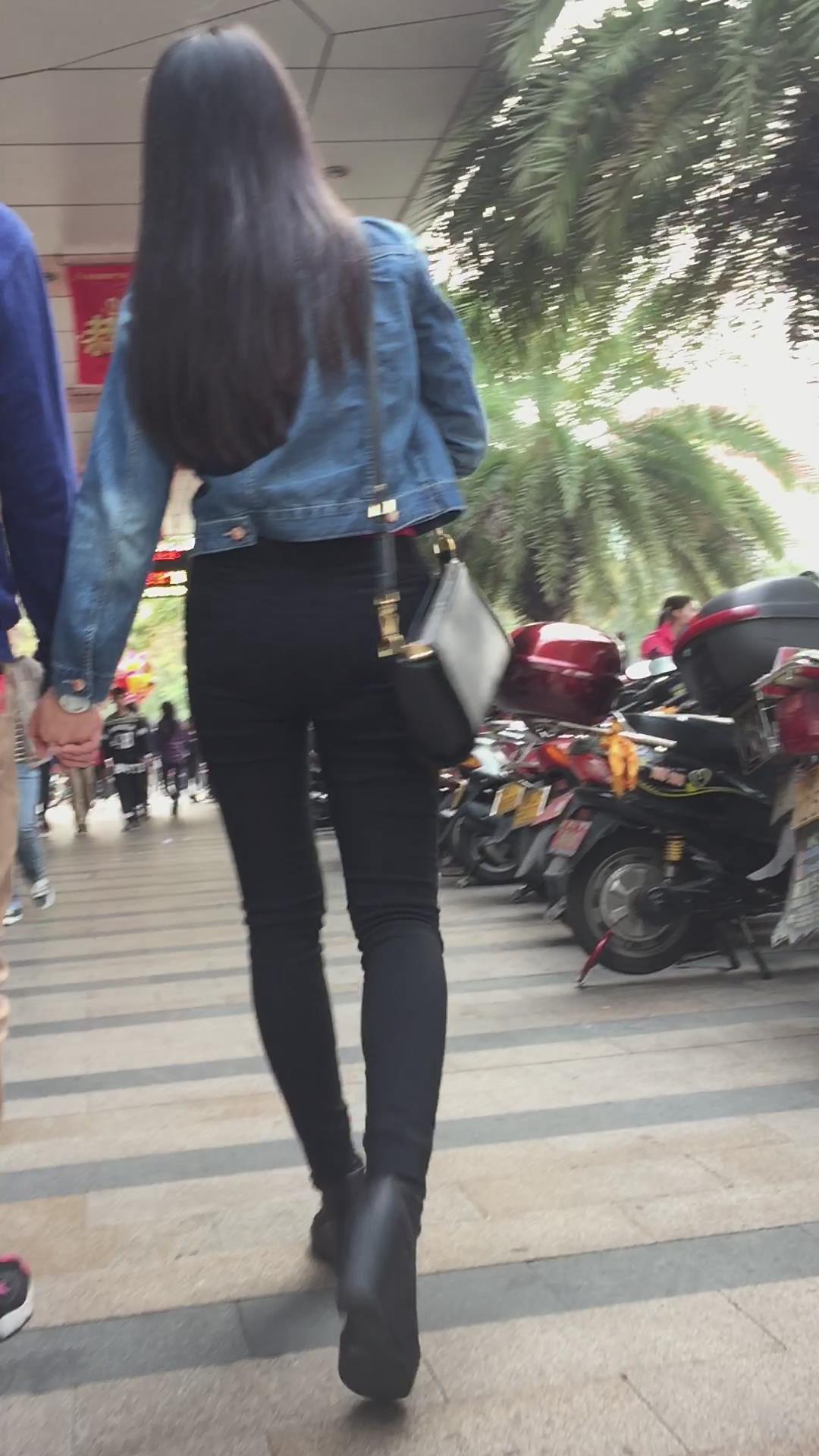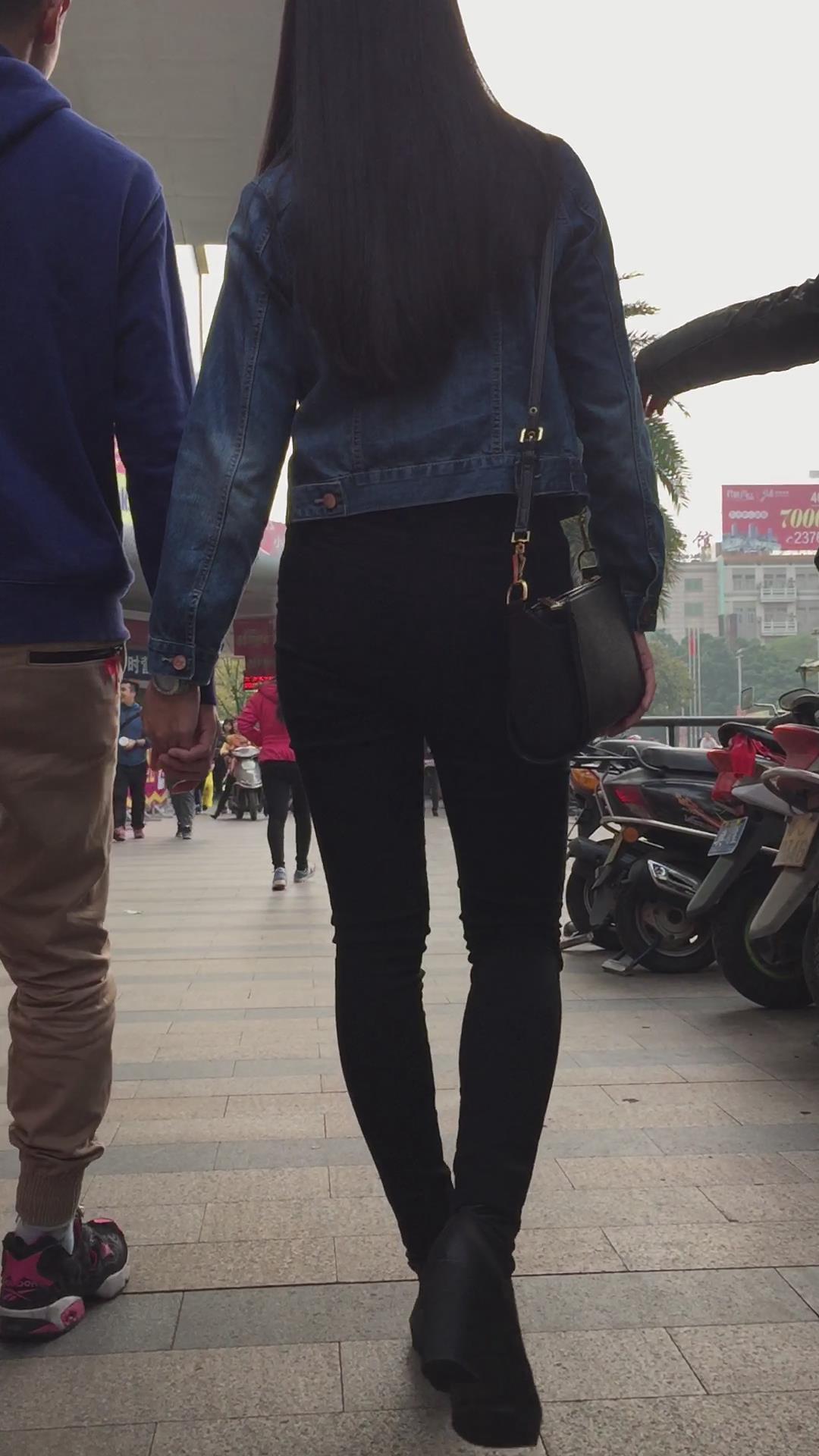 黑色紧身裤牛仔小外套妹子 编号6088