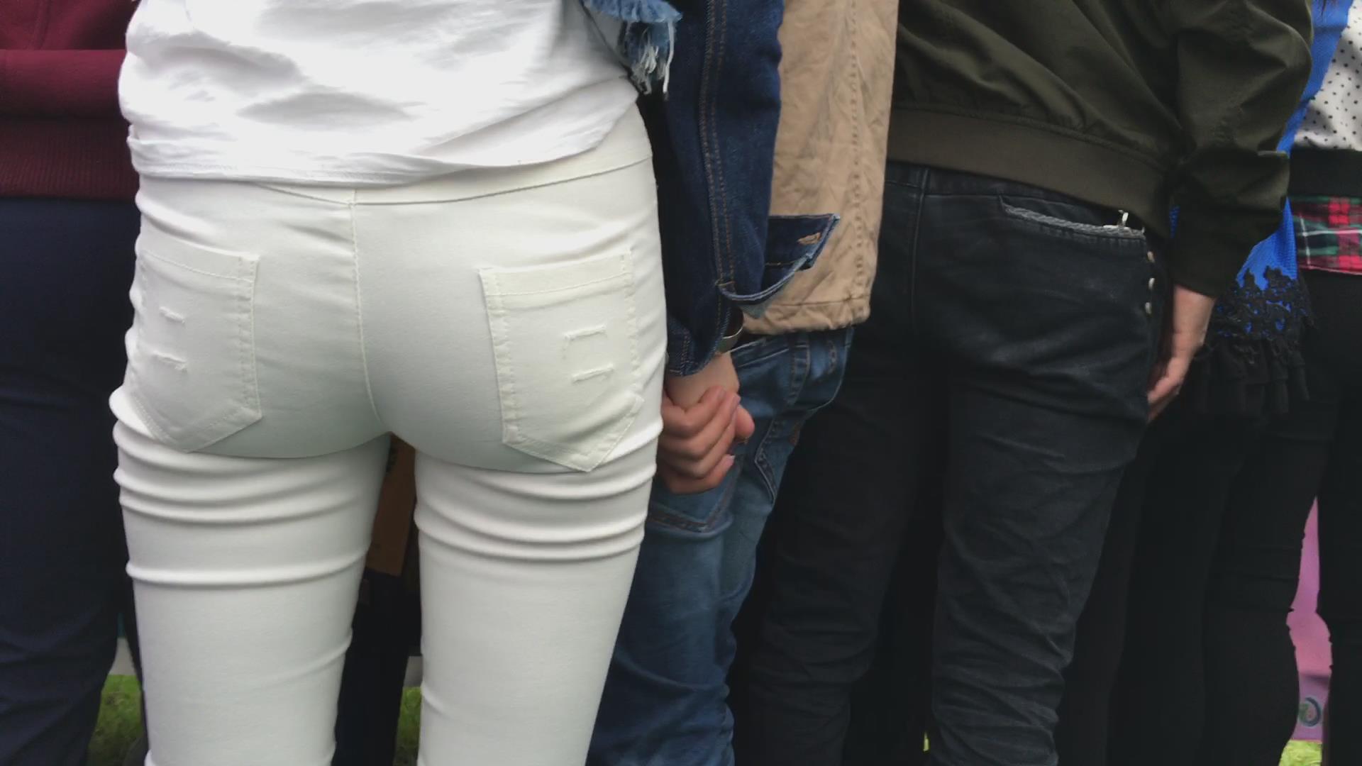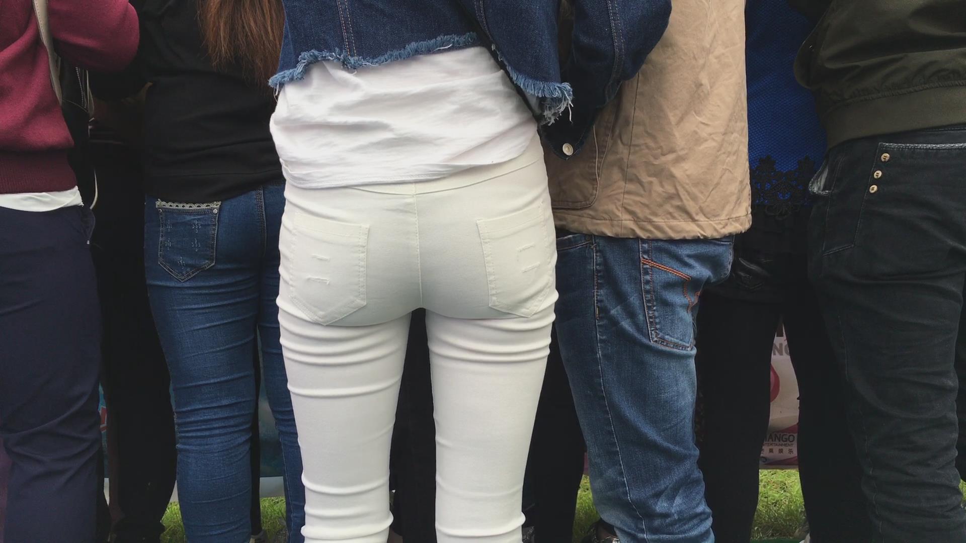 极品紧身白裤圆臀美女在围观什么呢 编号6103