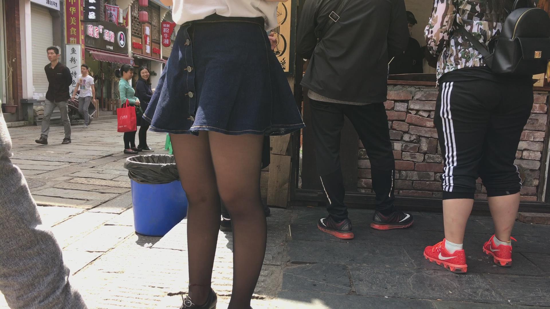 买臭豆腐吃的黄头发牛仔短裙妹子,丝袜不错哦 编号5175