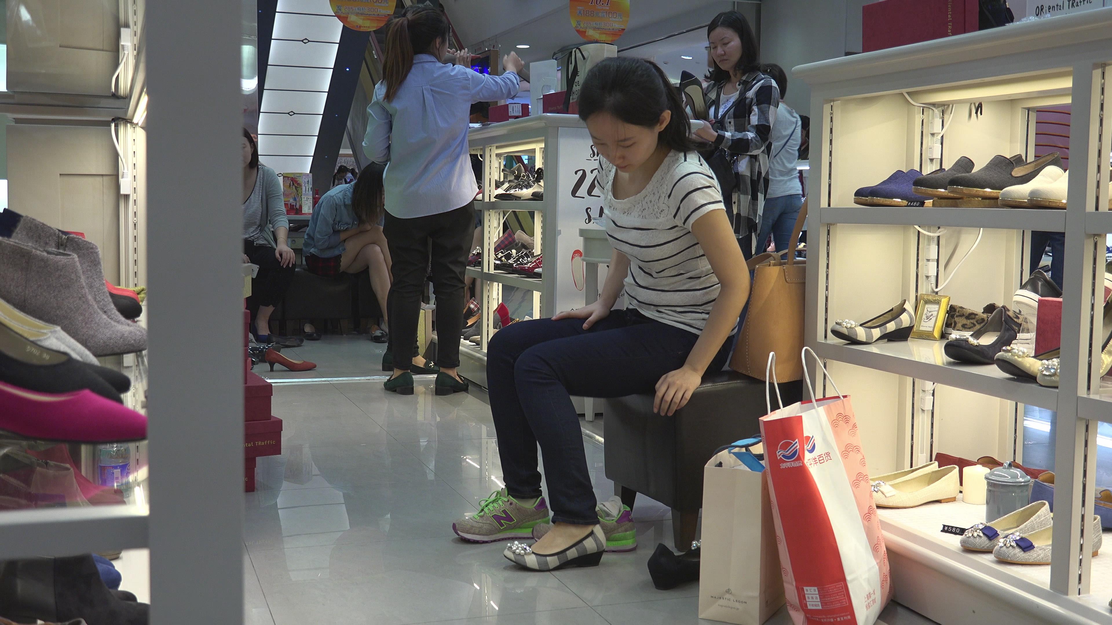 4k-鞋店试鞋的娇小美眉,一双雪白玉足也一样娇小 编号5182
