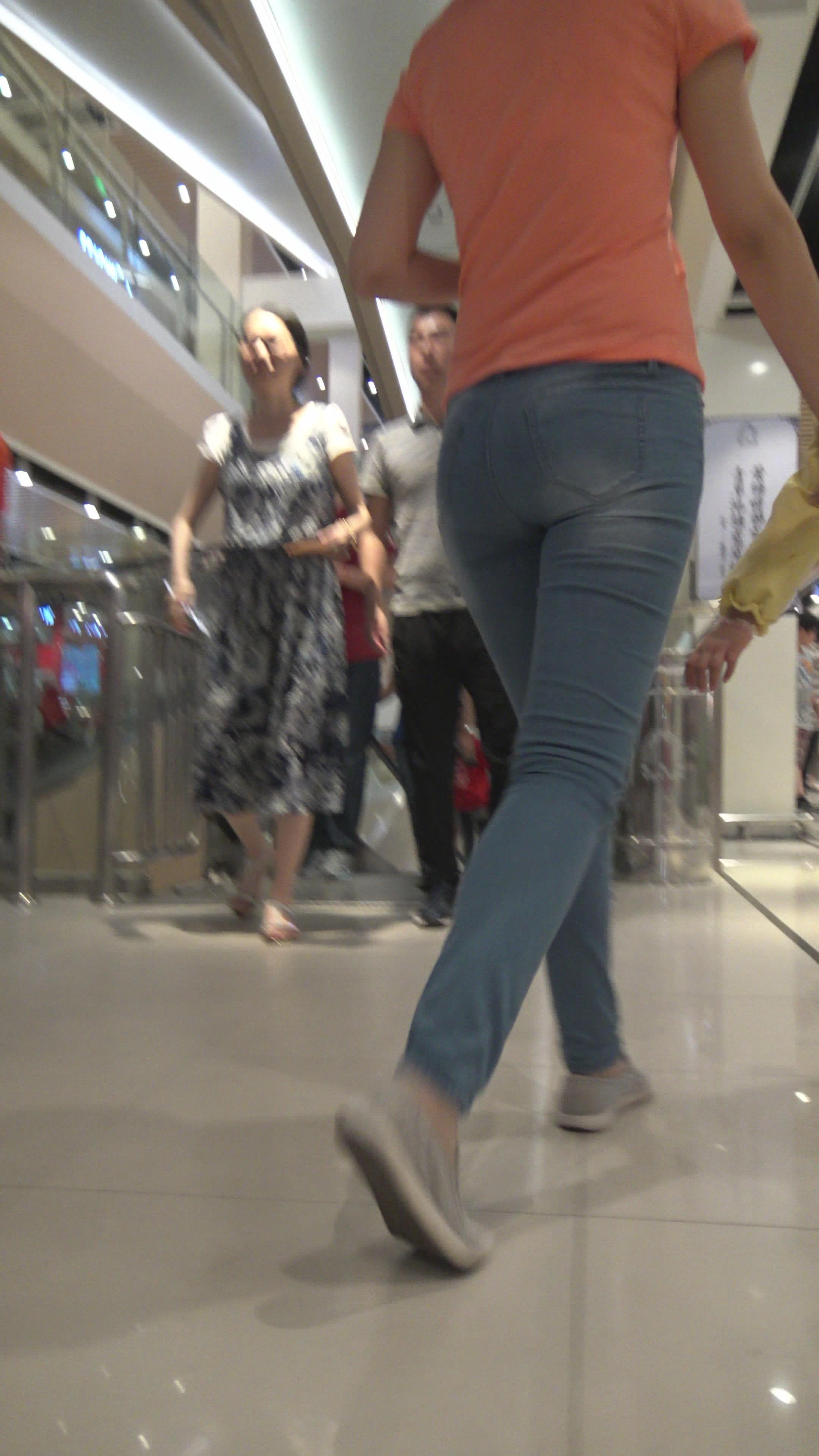 街拍紧身牛仔美,妇逛商场 编号5226