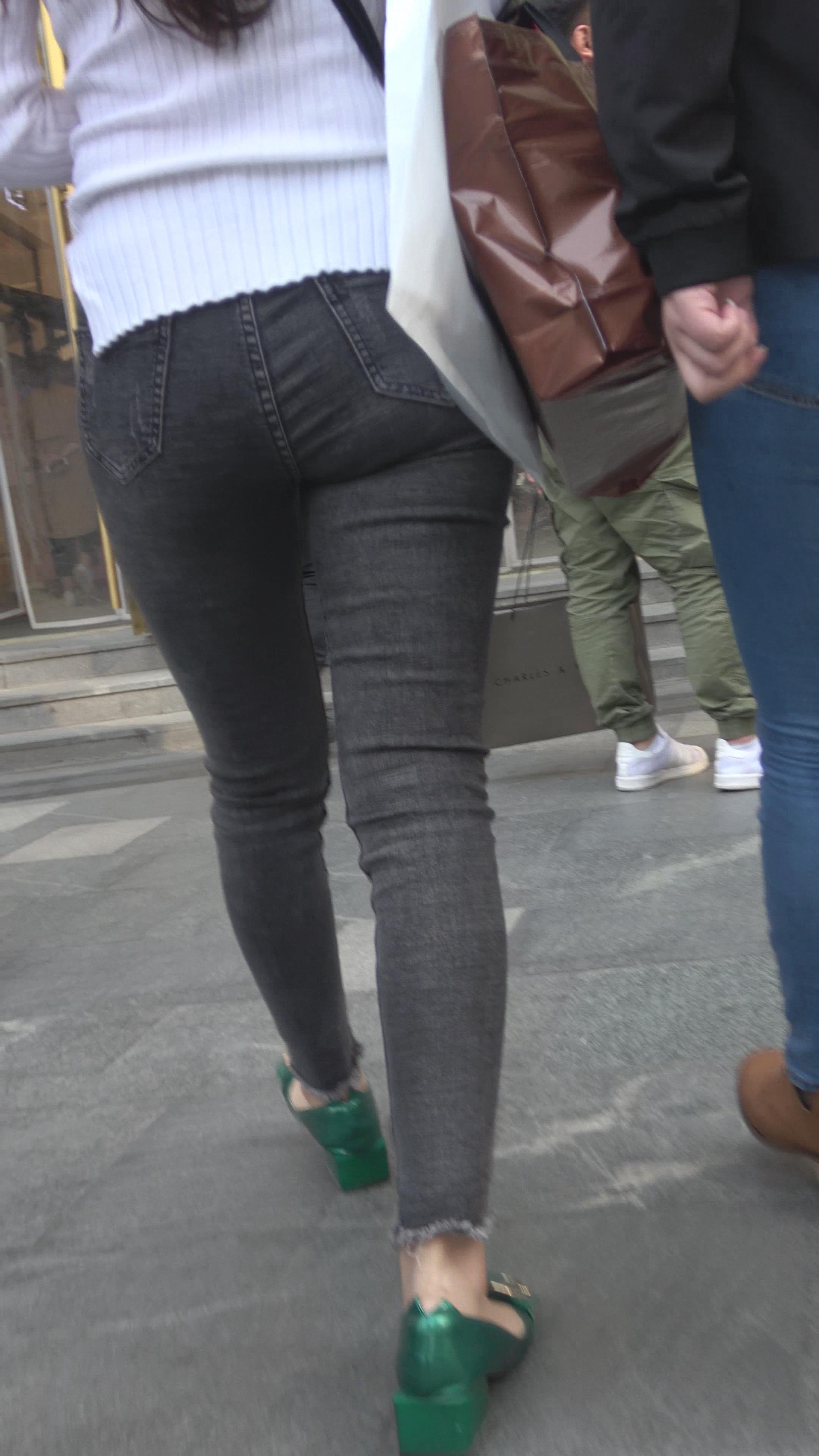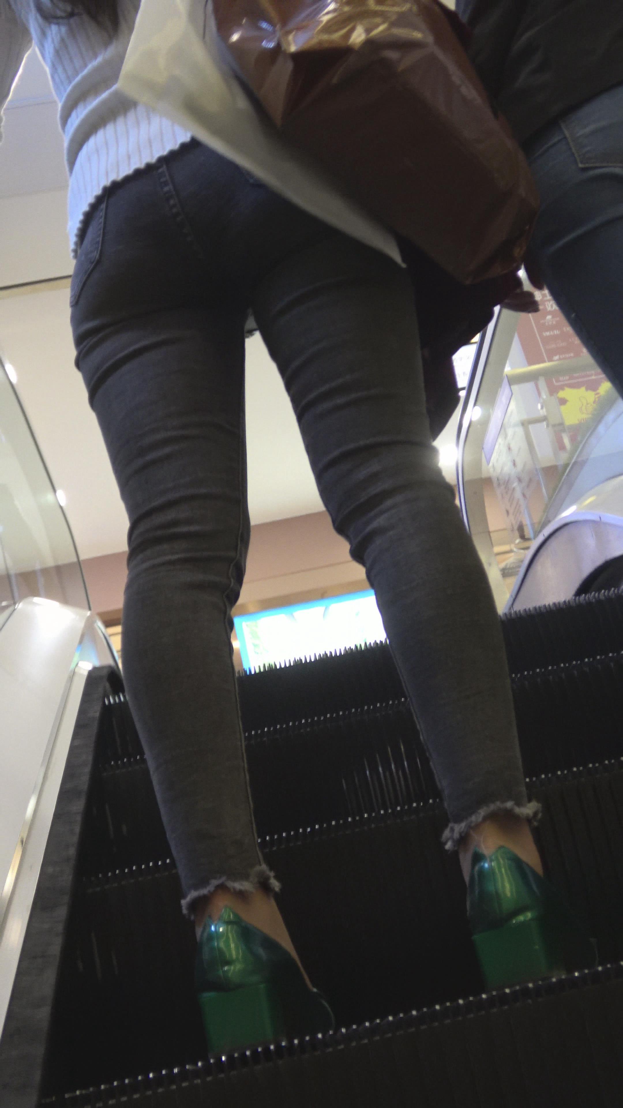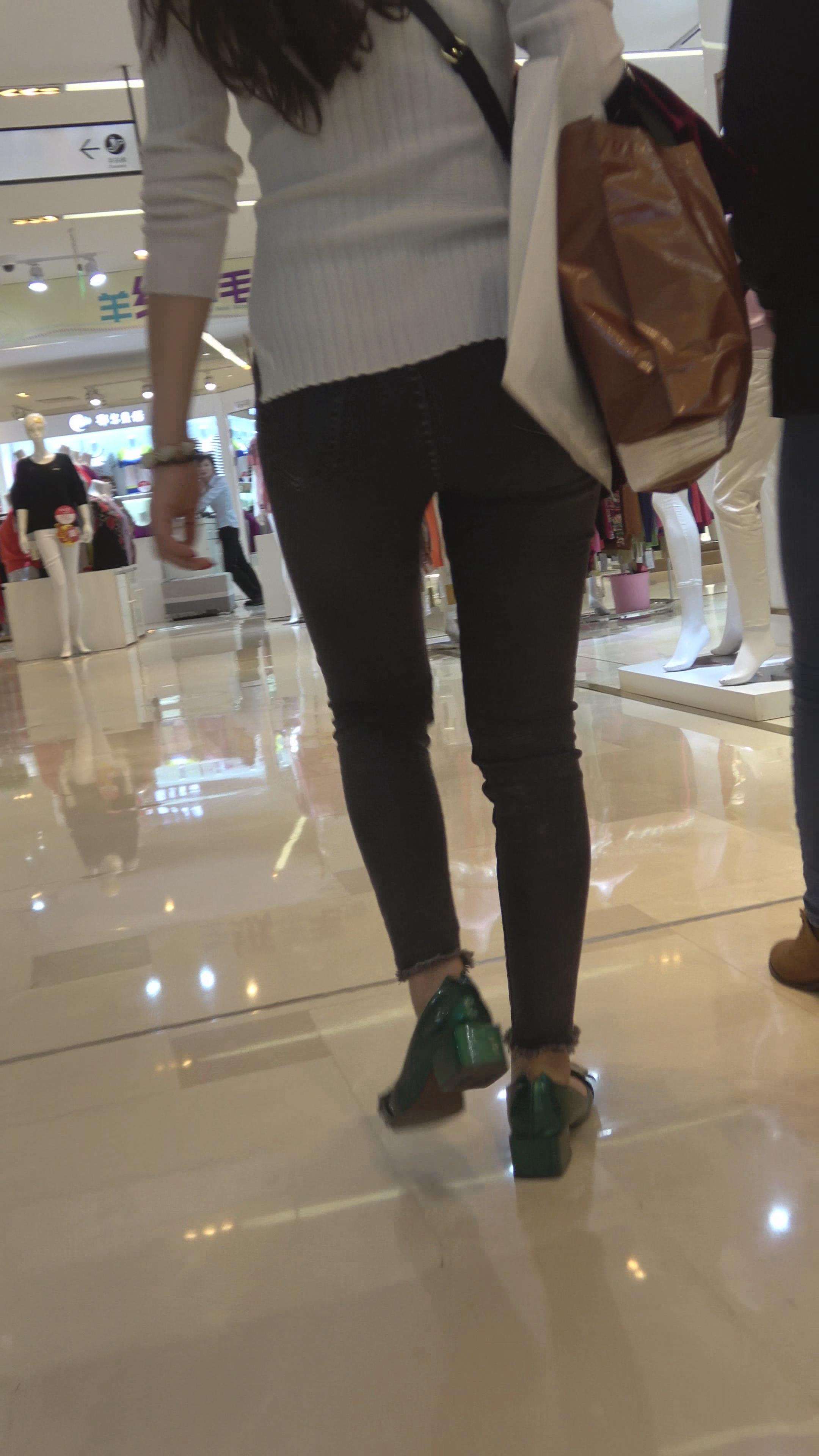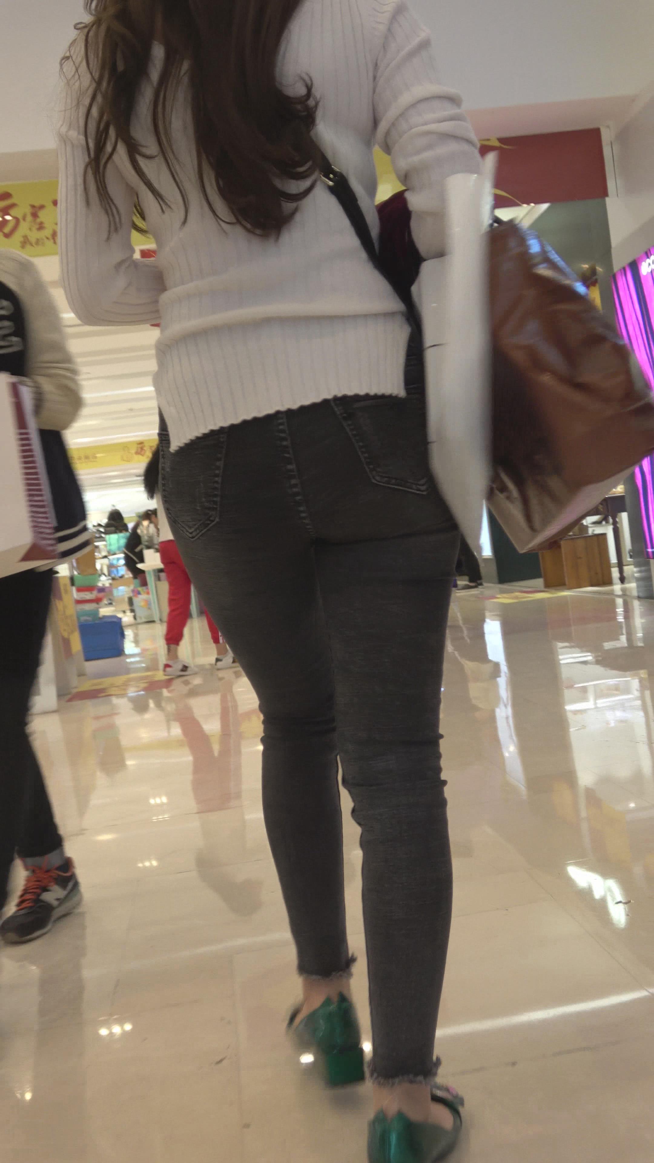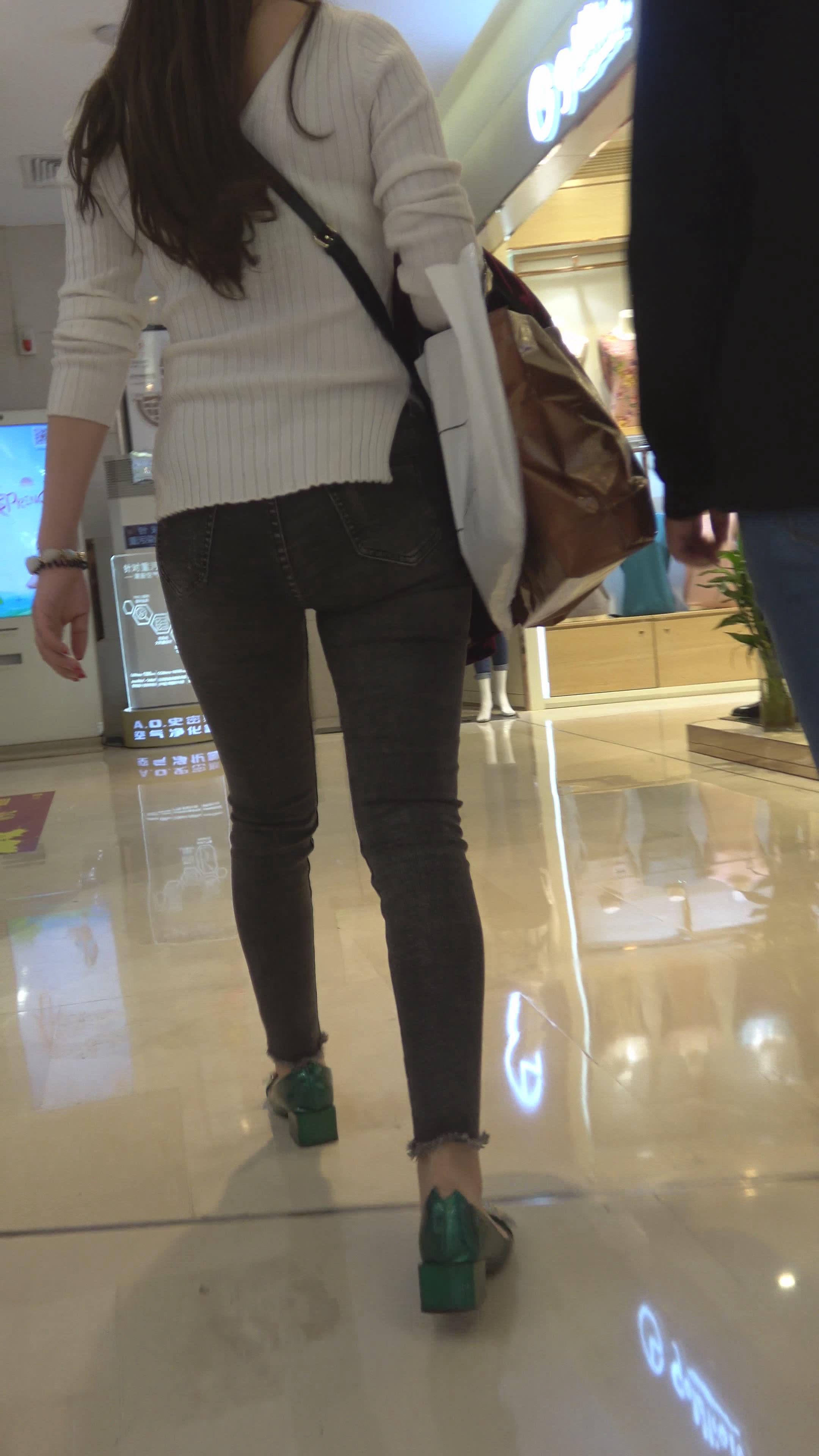 4K 白色毛衣灰色紧身牛仔裤街拍美女姐姐 编号5227