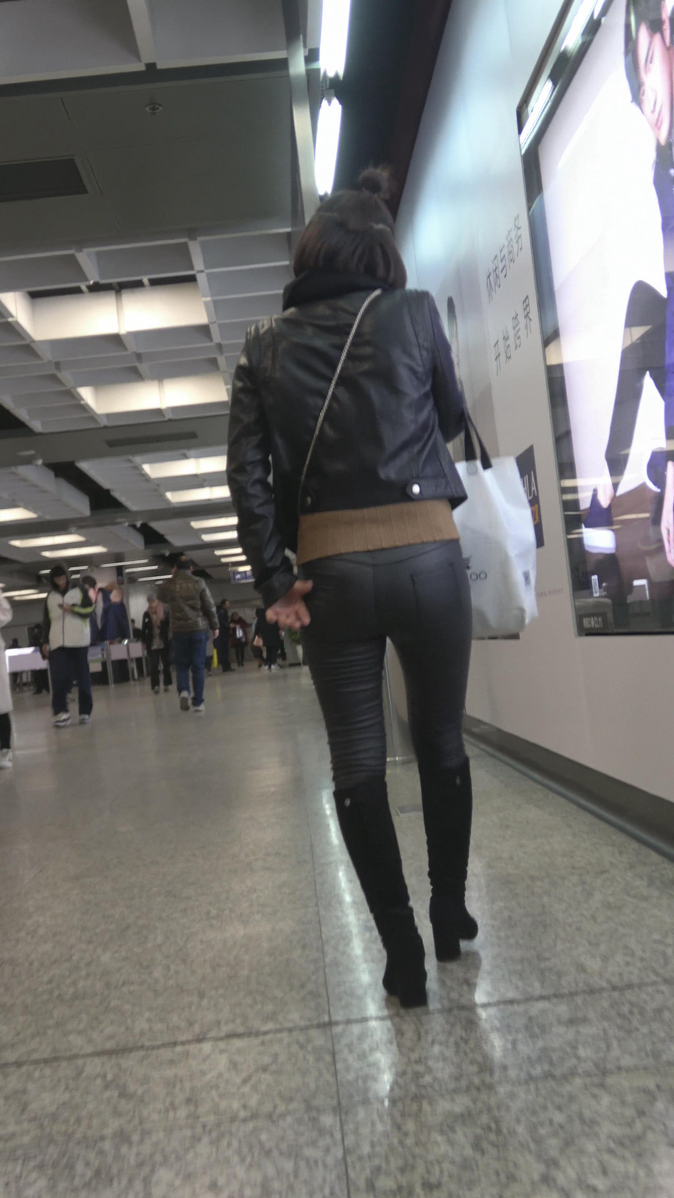 4K 跟拍逛商场的紧身皮裤美女 编号5239