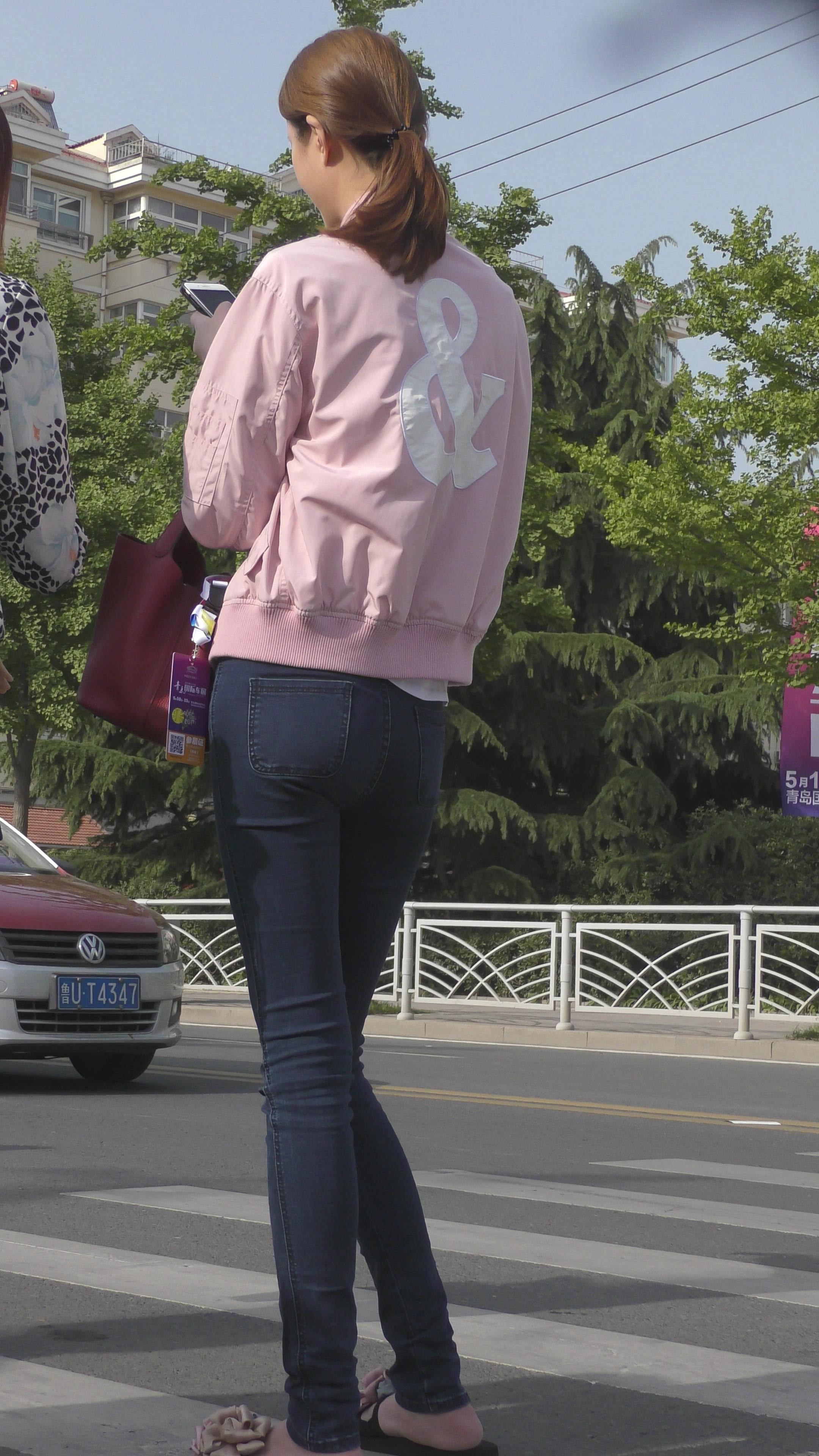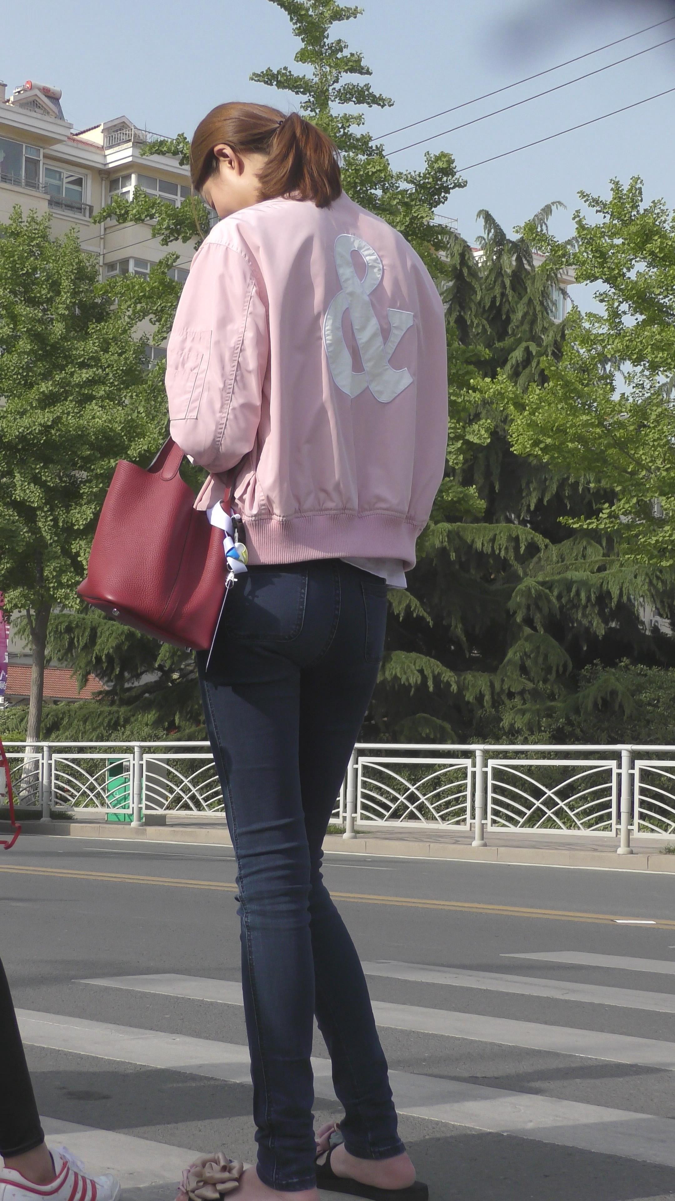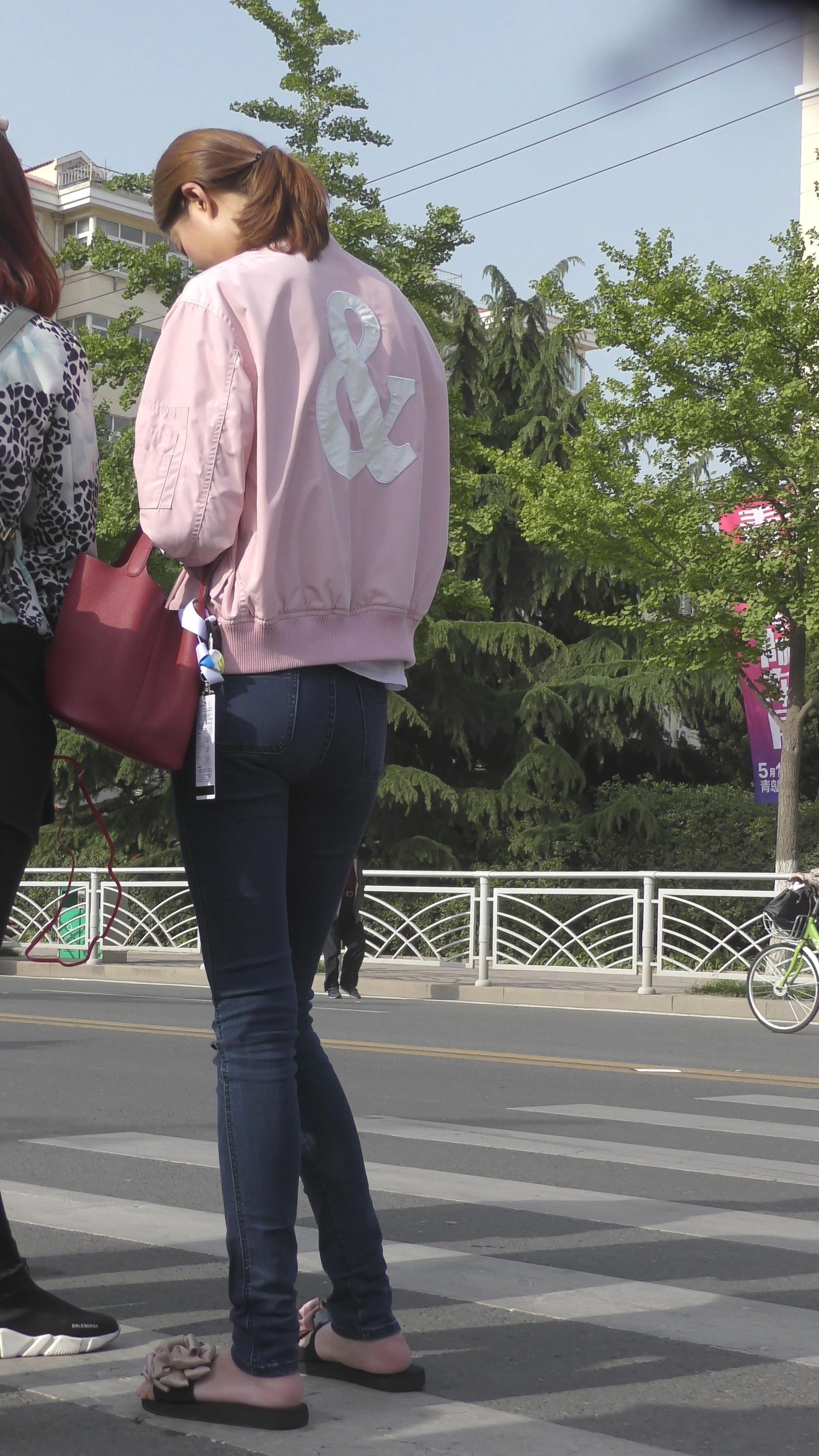 4K 等车的紧身牛仔苗条美女姐姐 编号5240