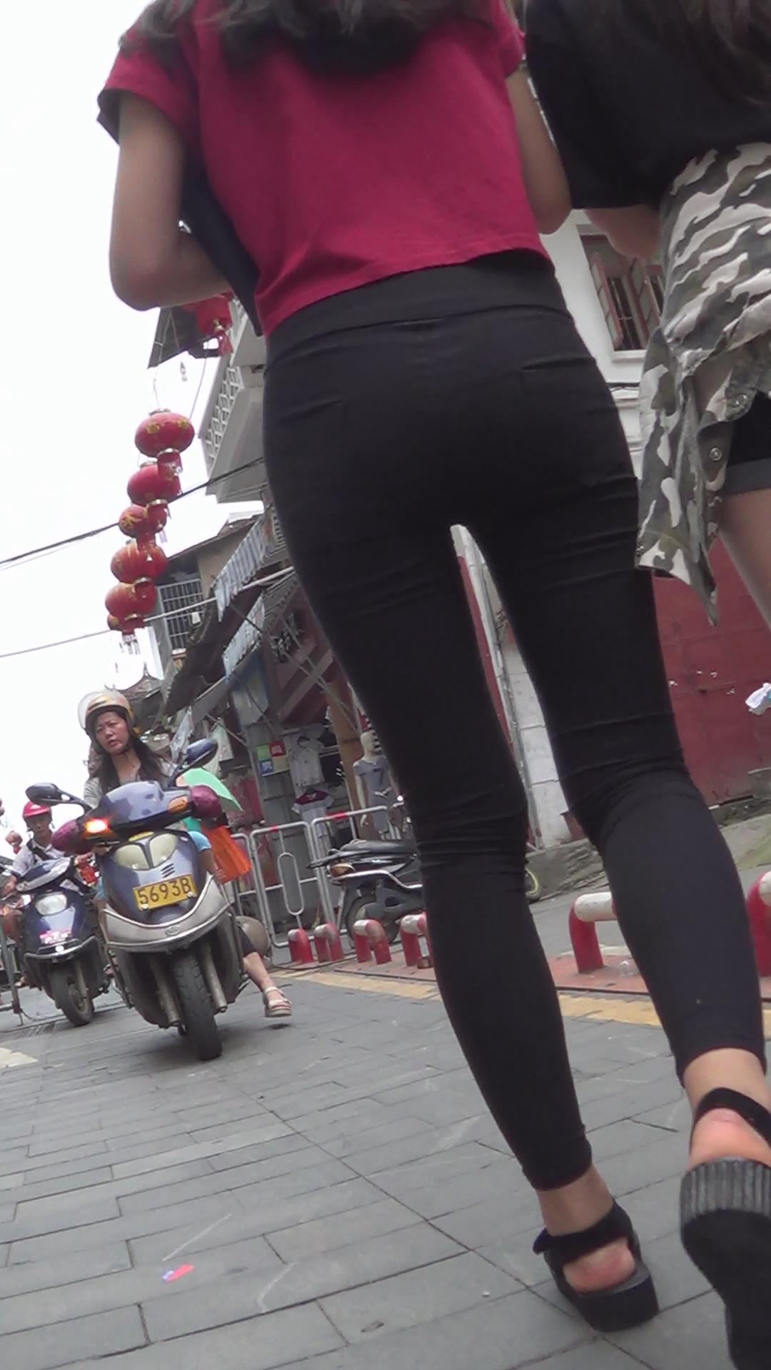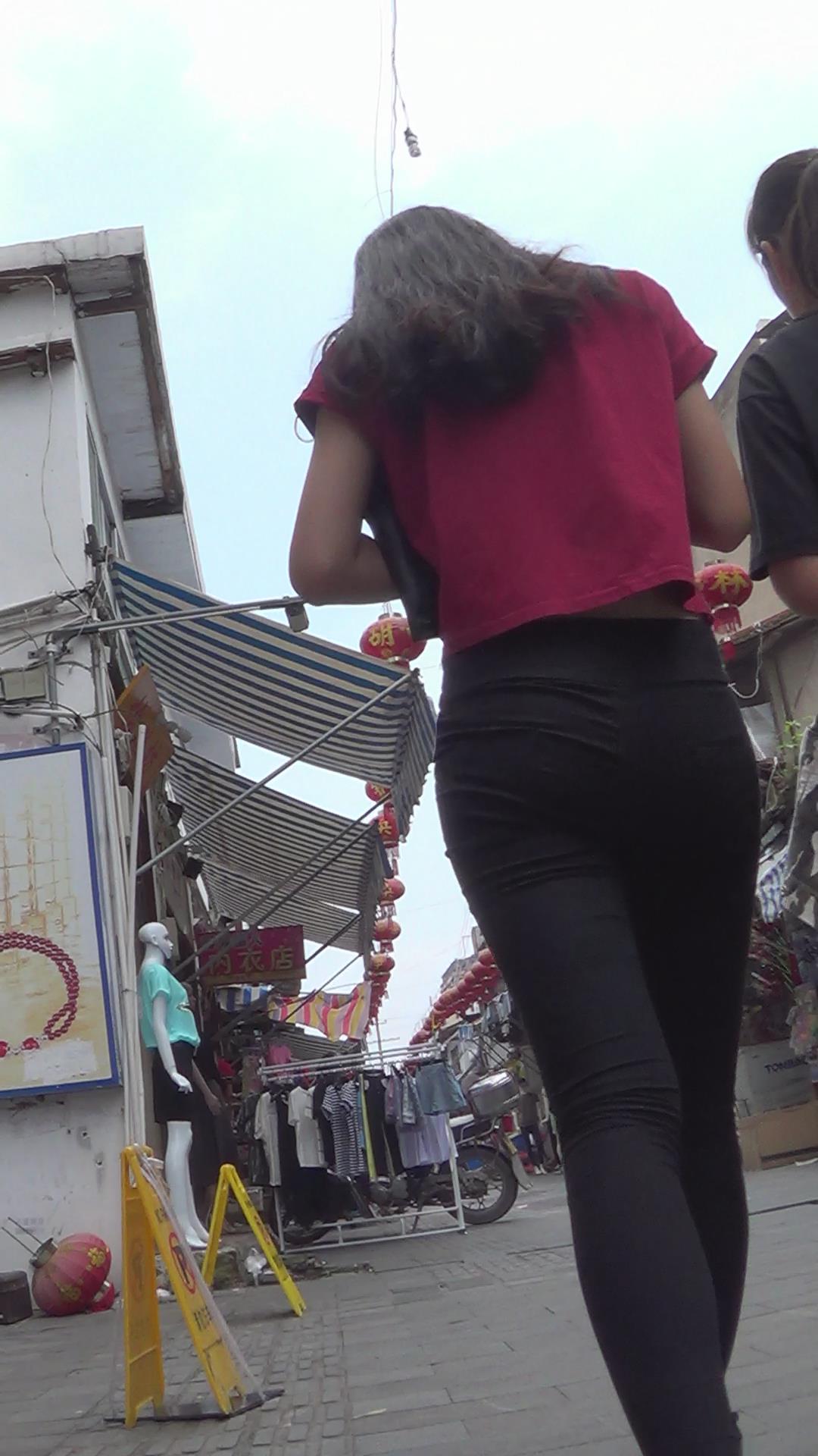 红衣黑色紧身裤苗条美女 编号6108