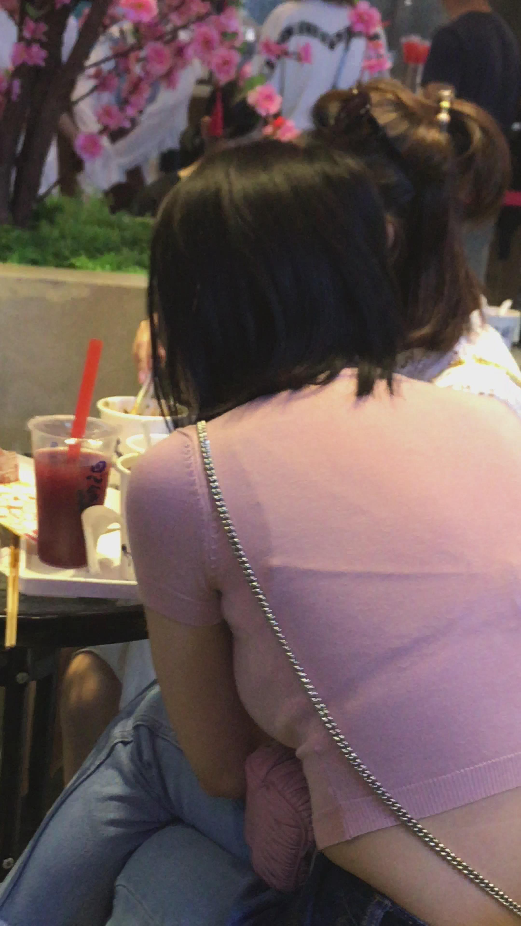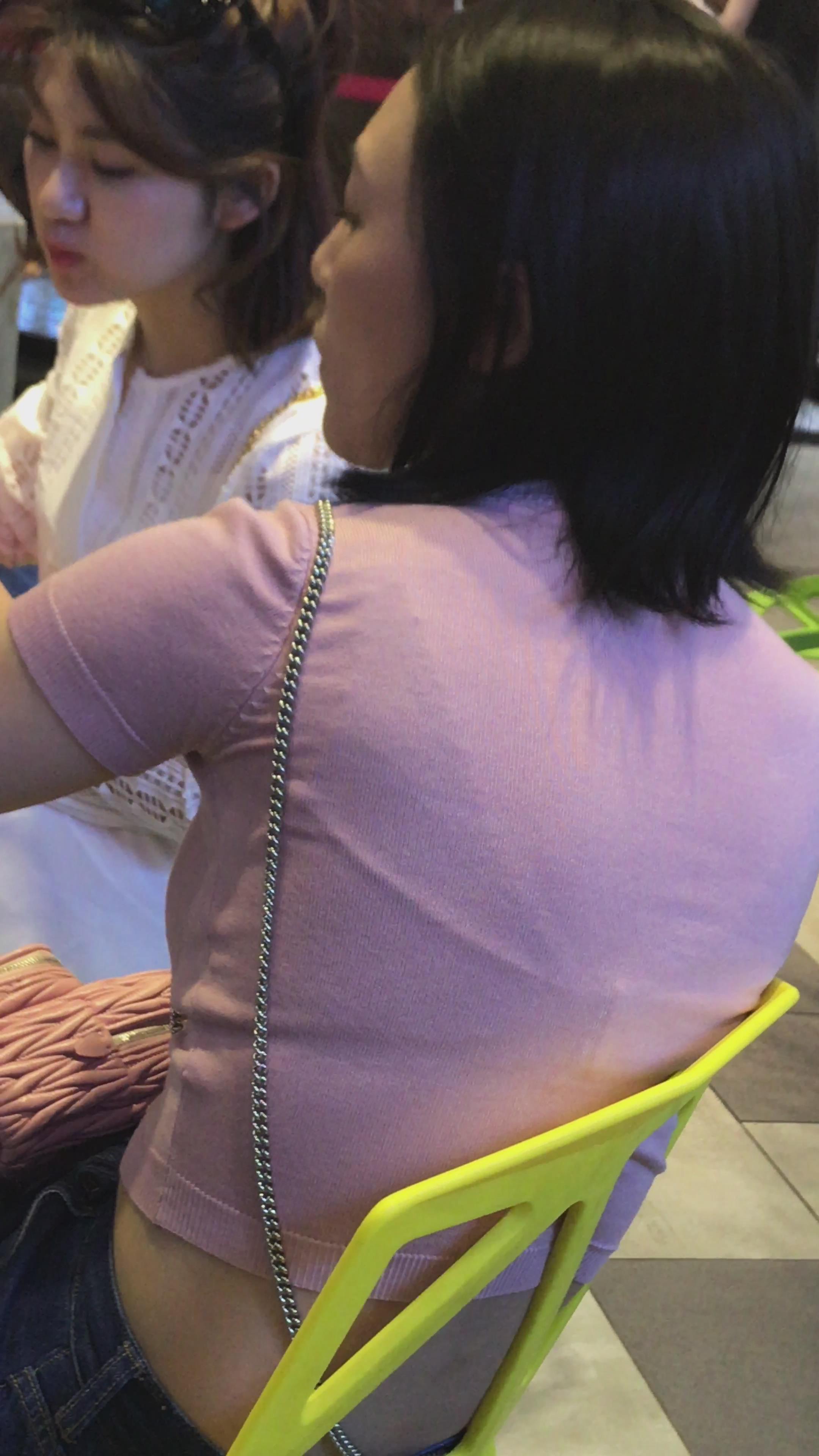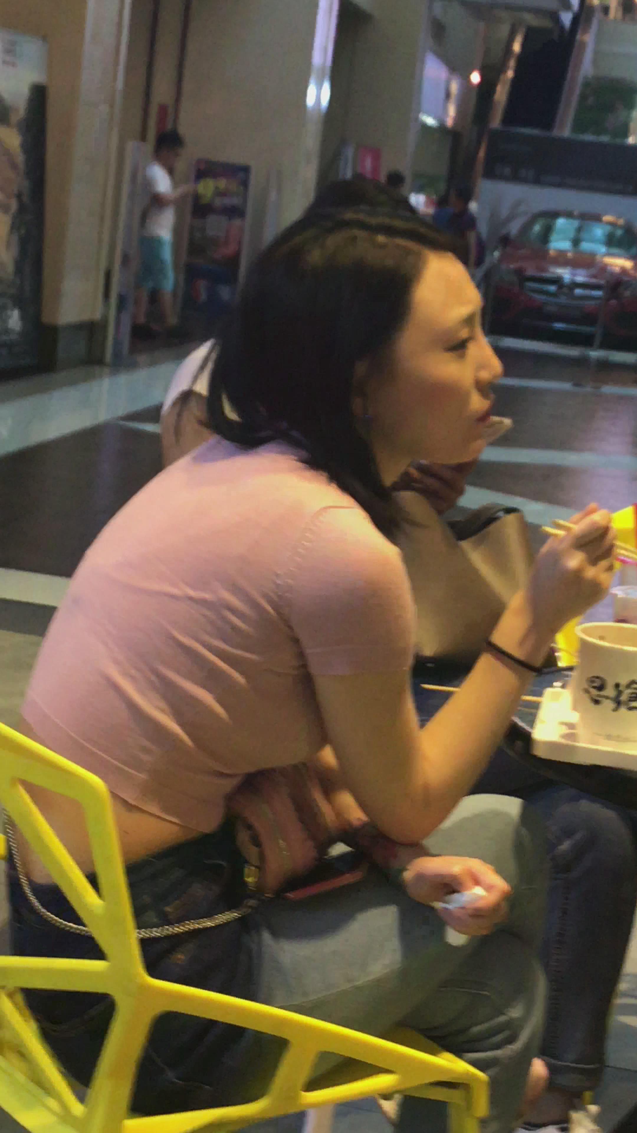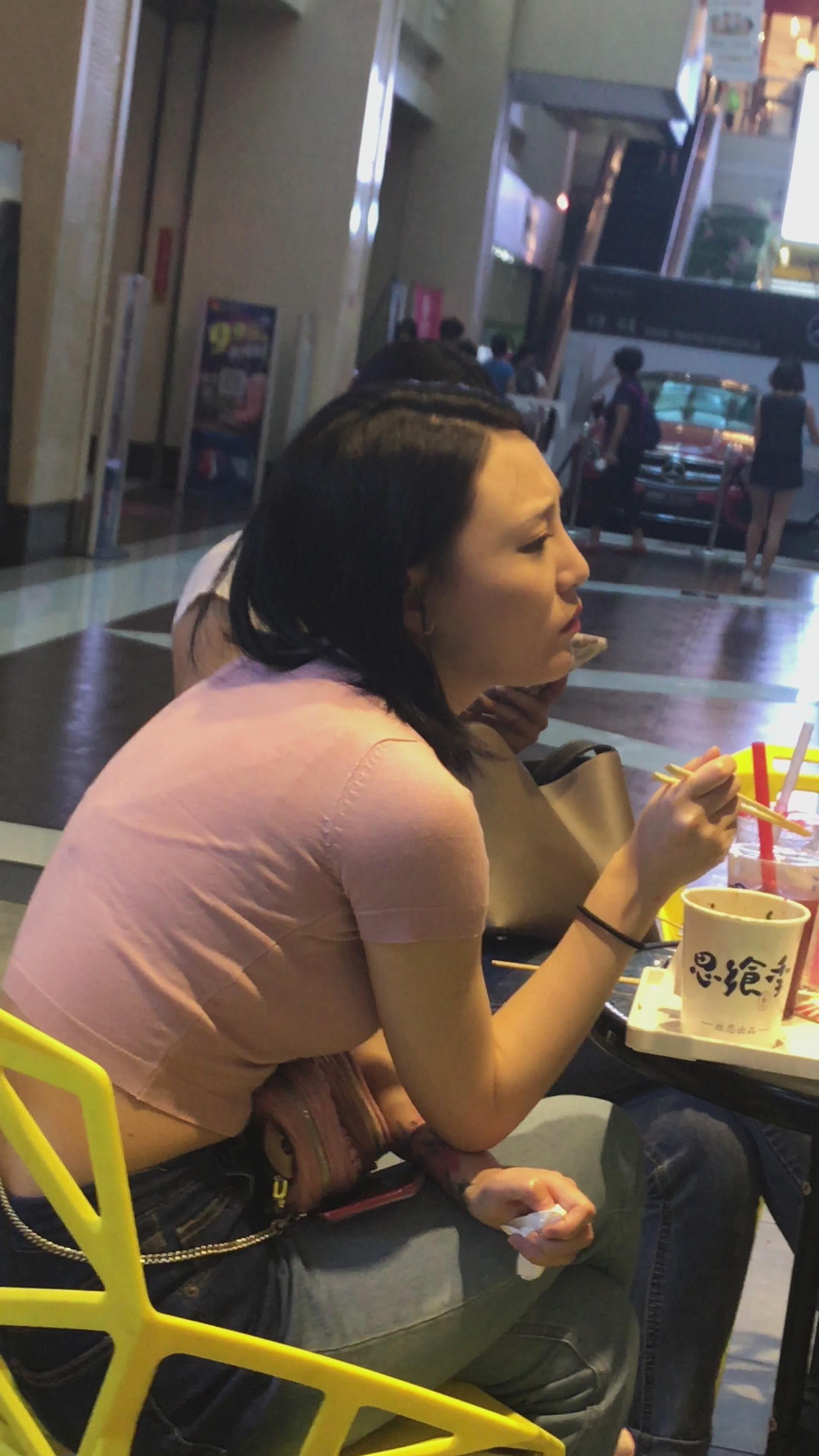 粉衣服街拍紧身丰腴身材美女 编号5249