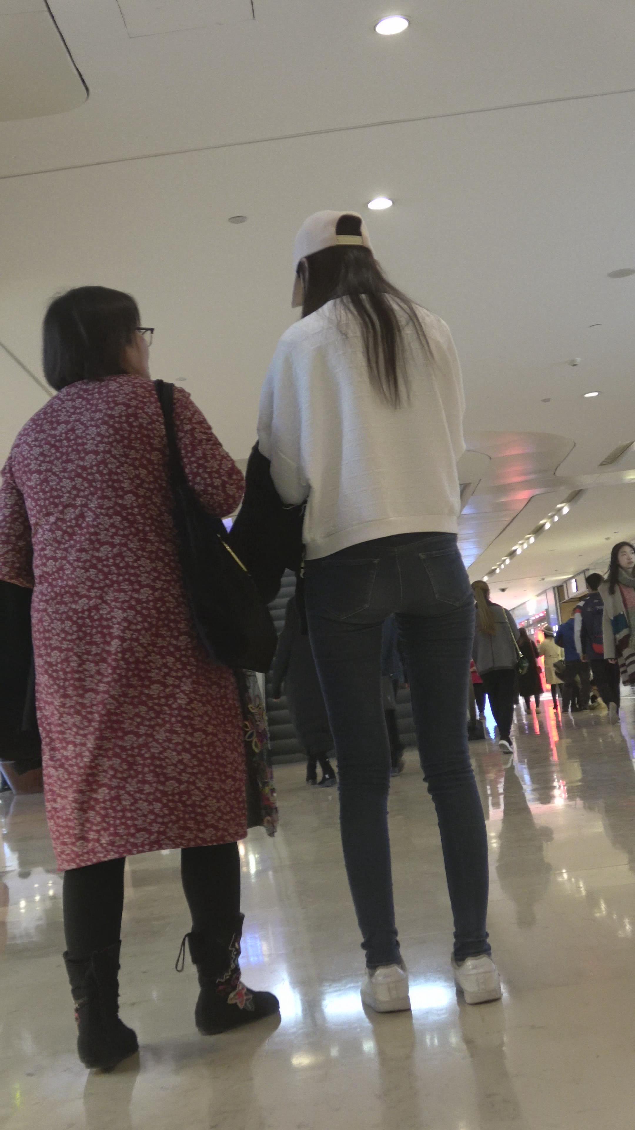4K - 街拍商场的两位紧身牛仔美女 编号5260