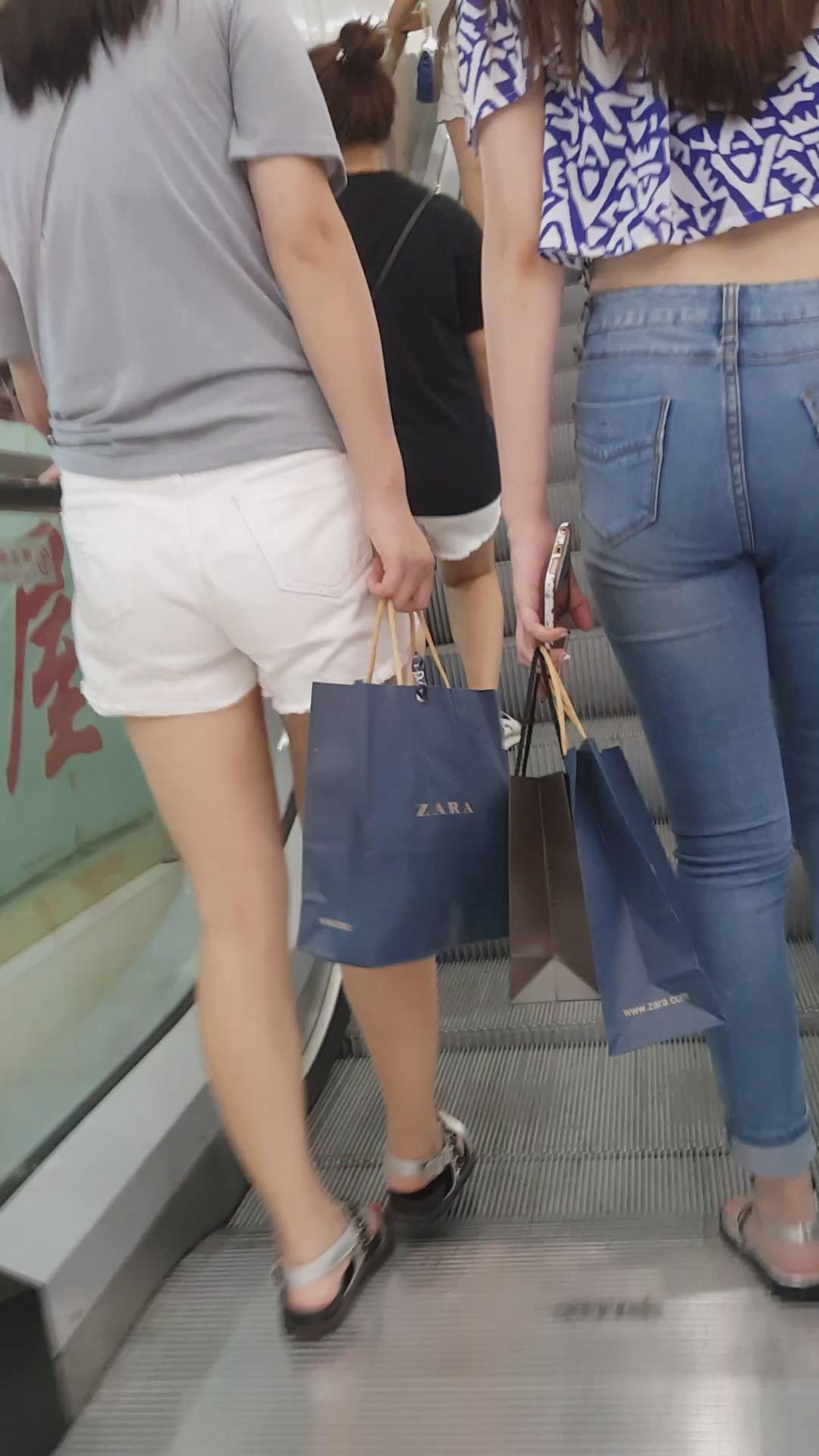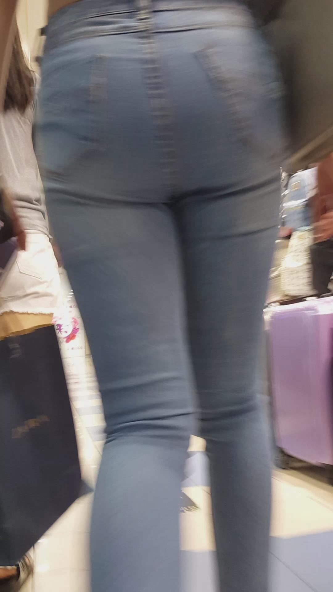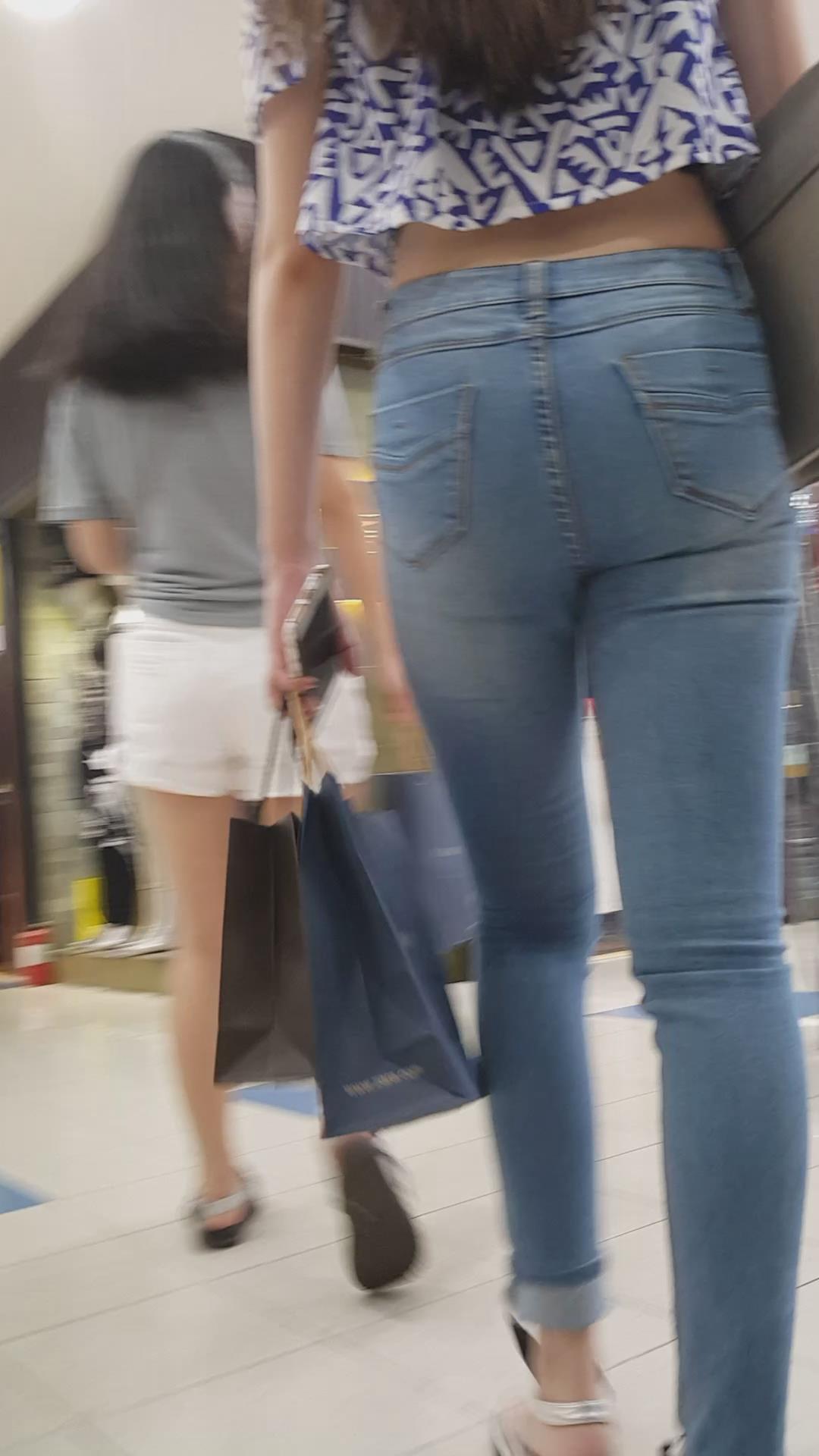 商场买买买的紧身蓝牛丰臀美眉 编号6110