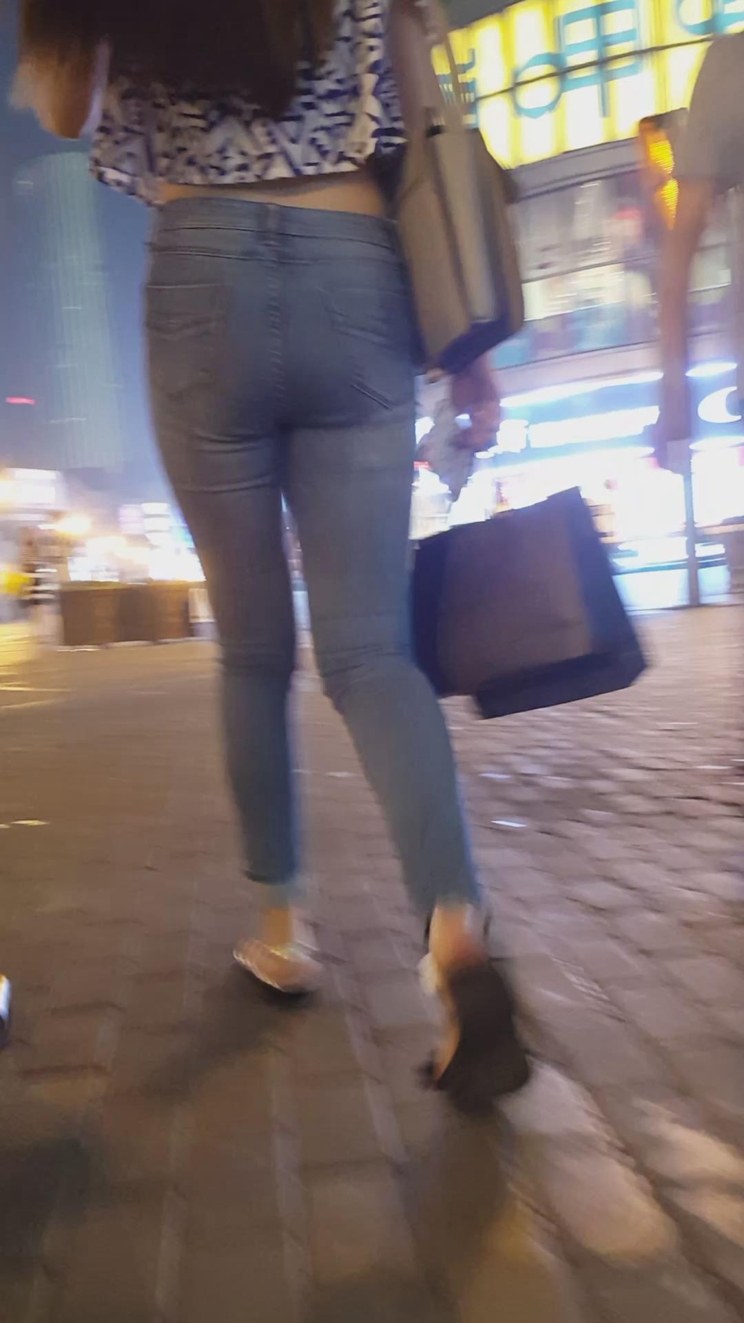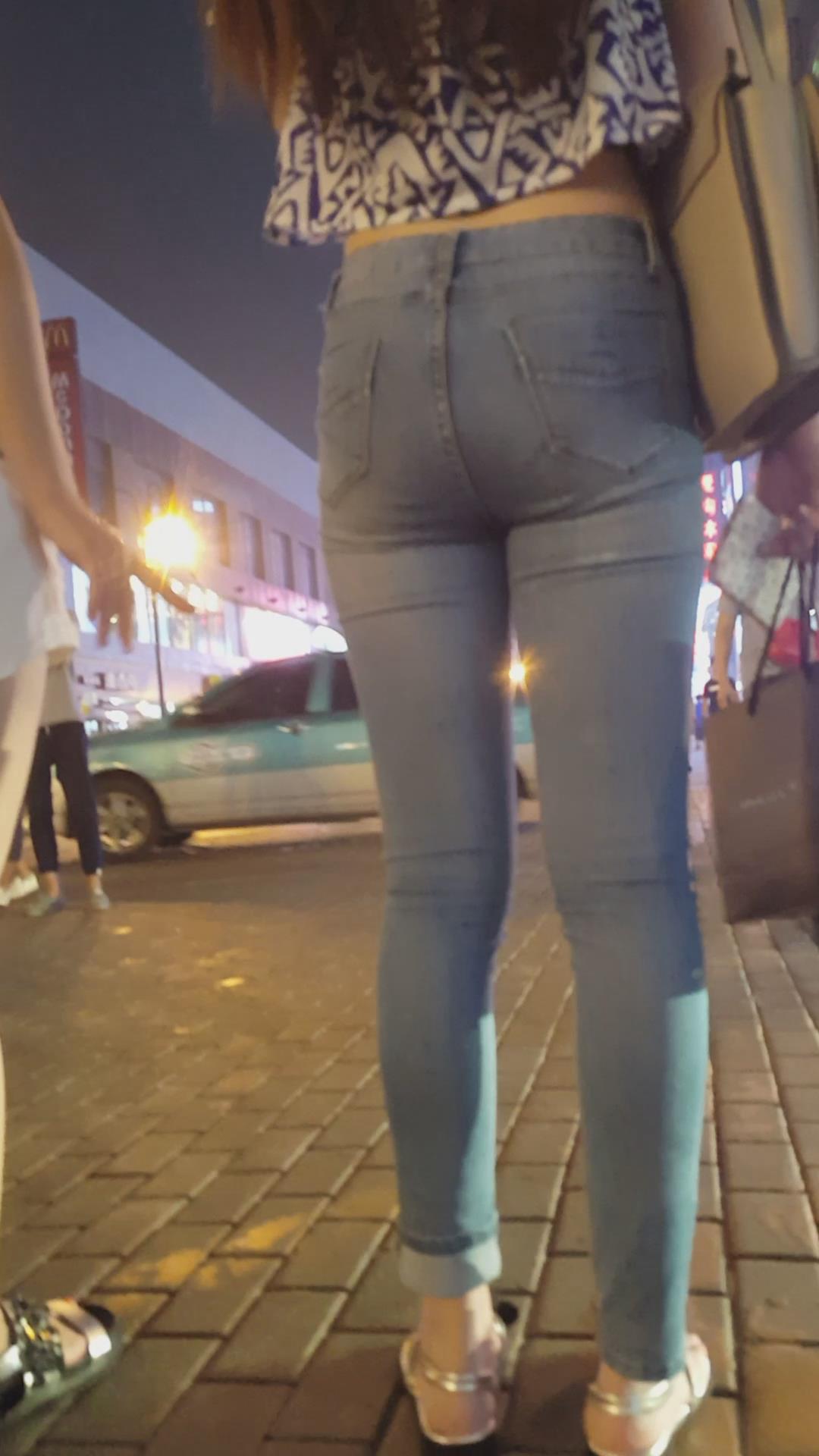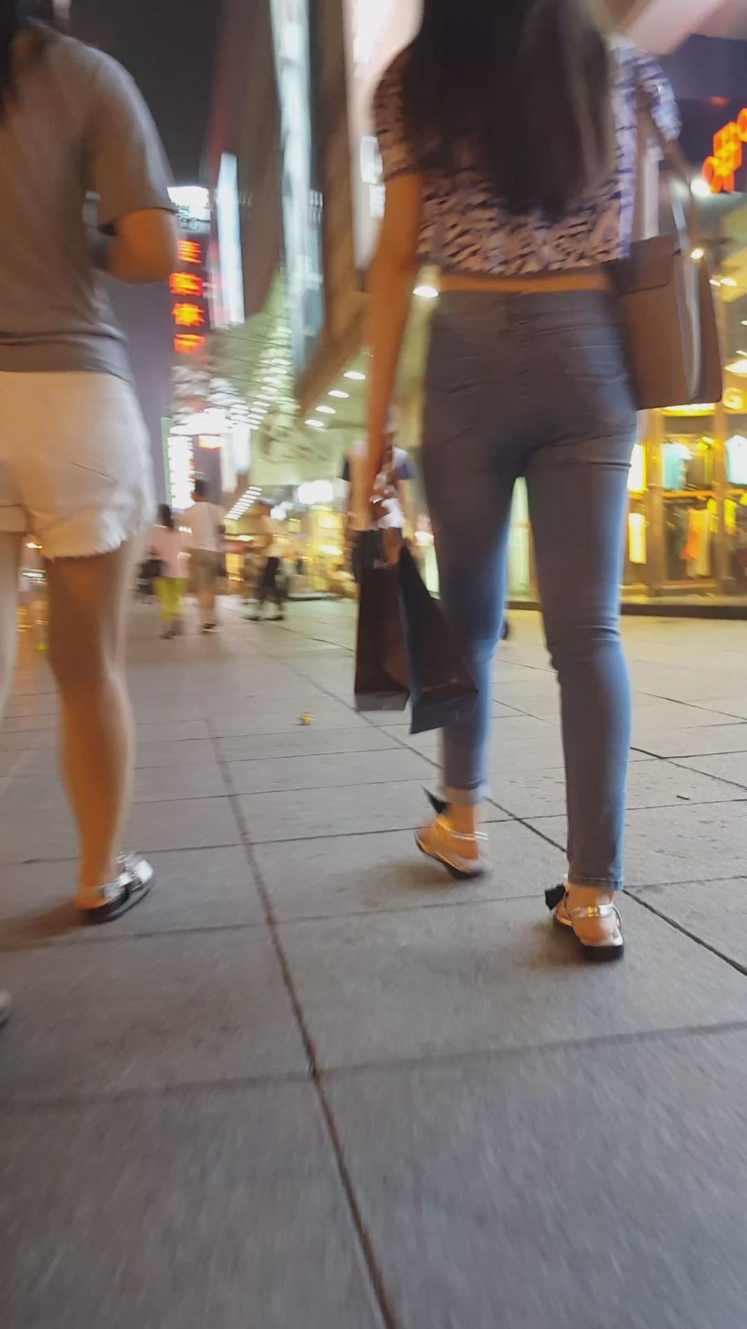商场买买买的紧身蓝牛丰臀美眉 编号6110