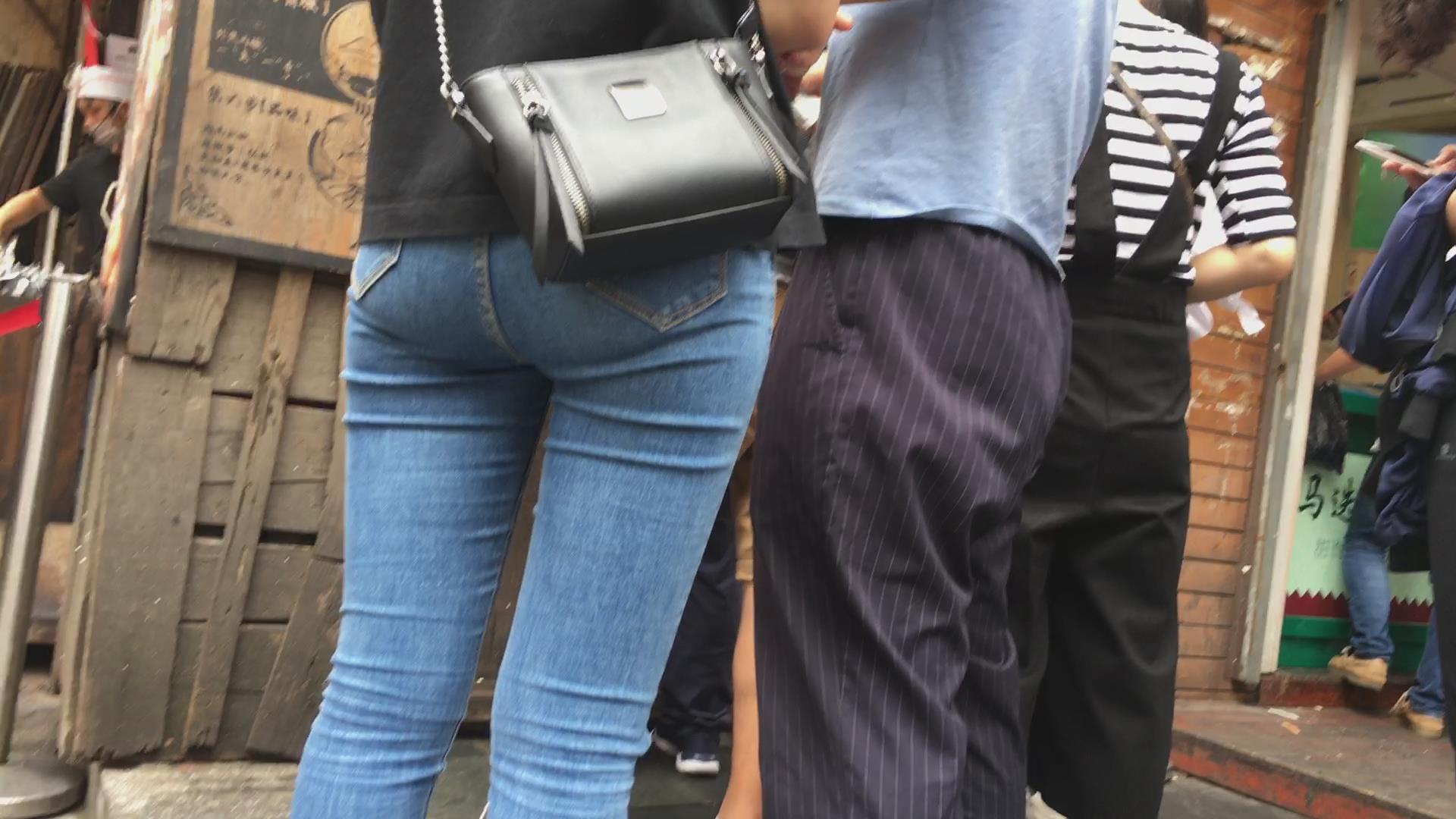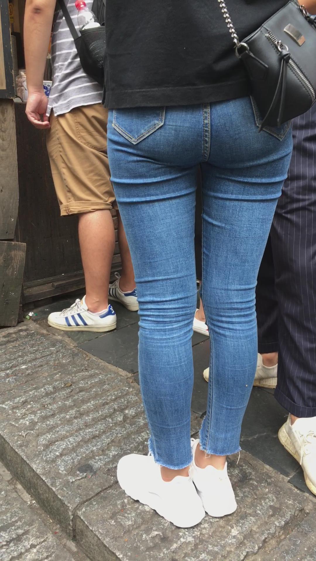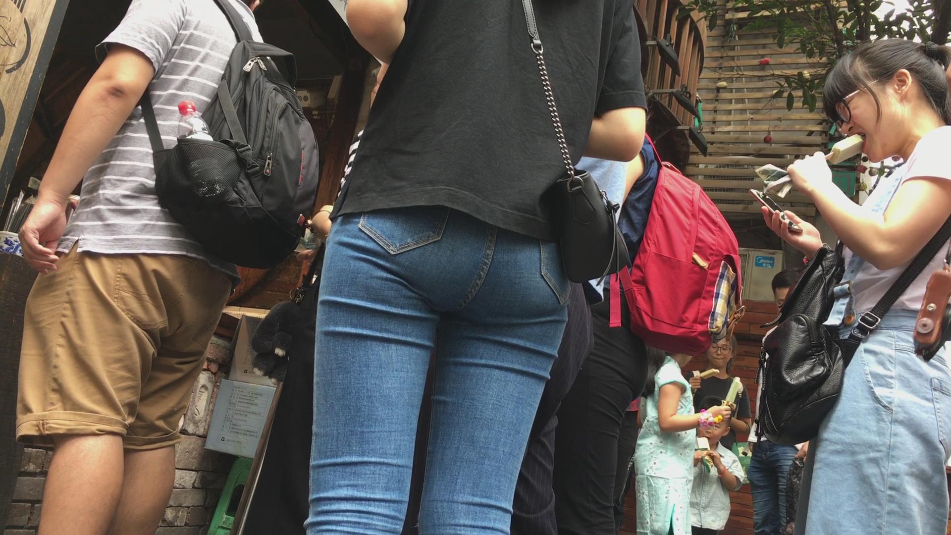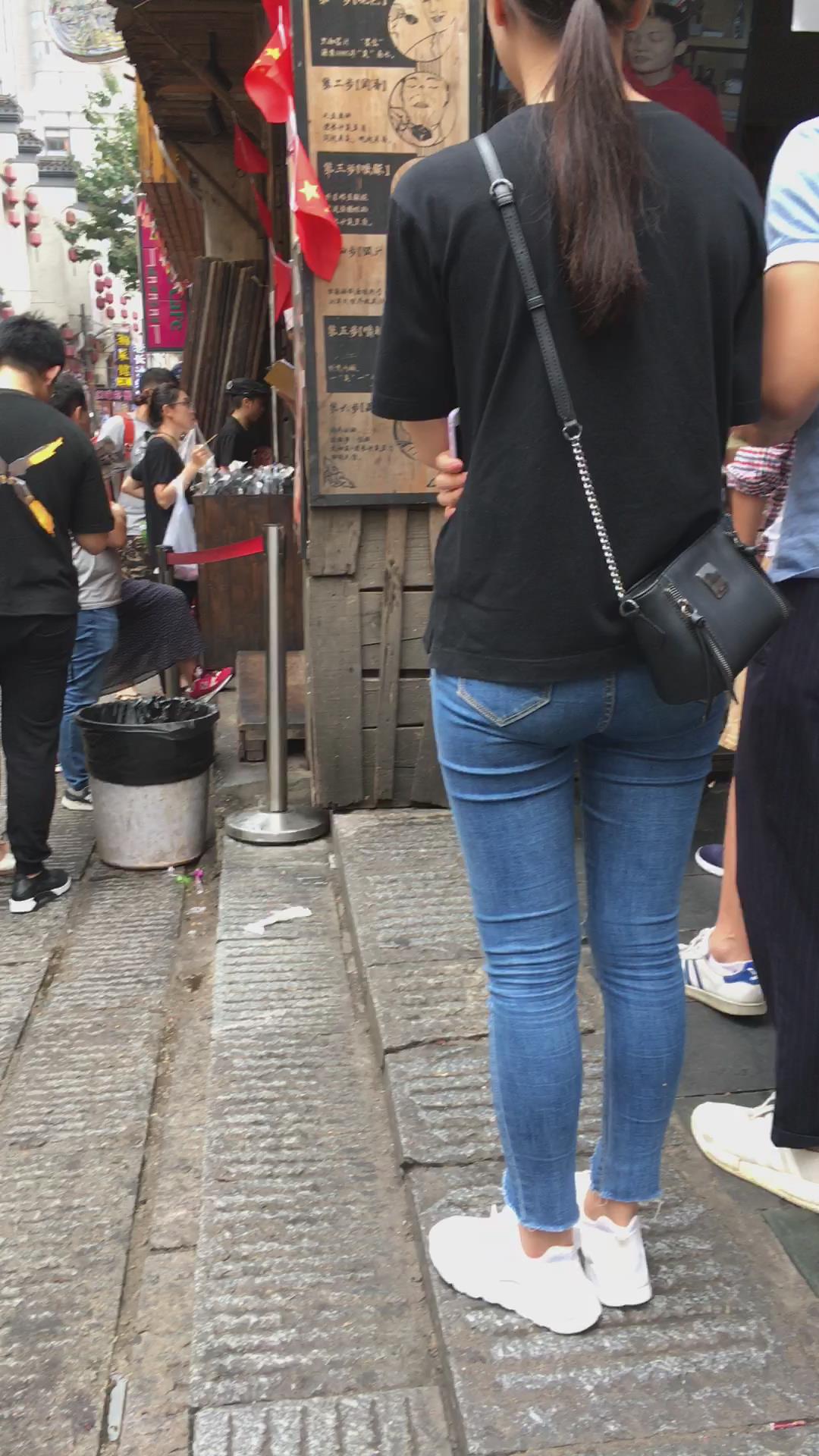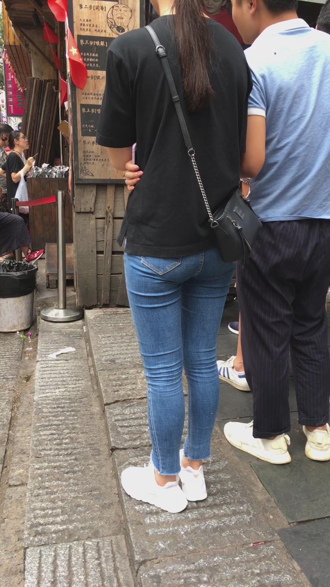 超紧身牛仔裤黑T恤学生妹 编号5280