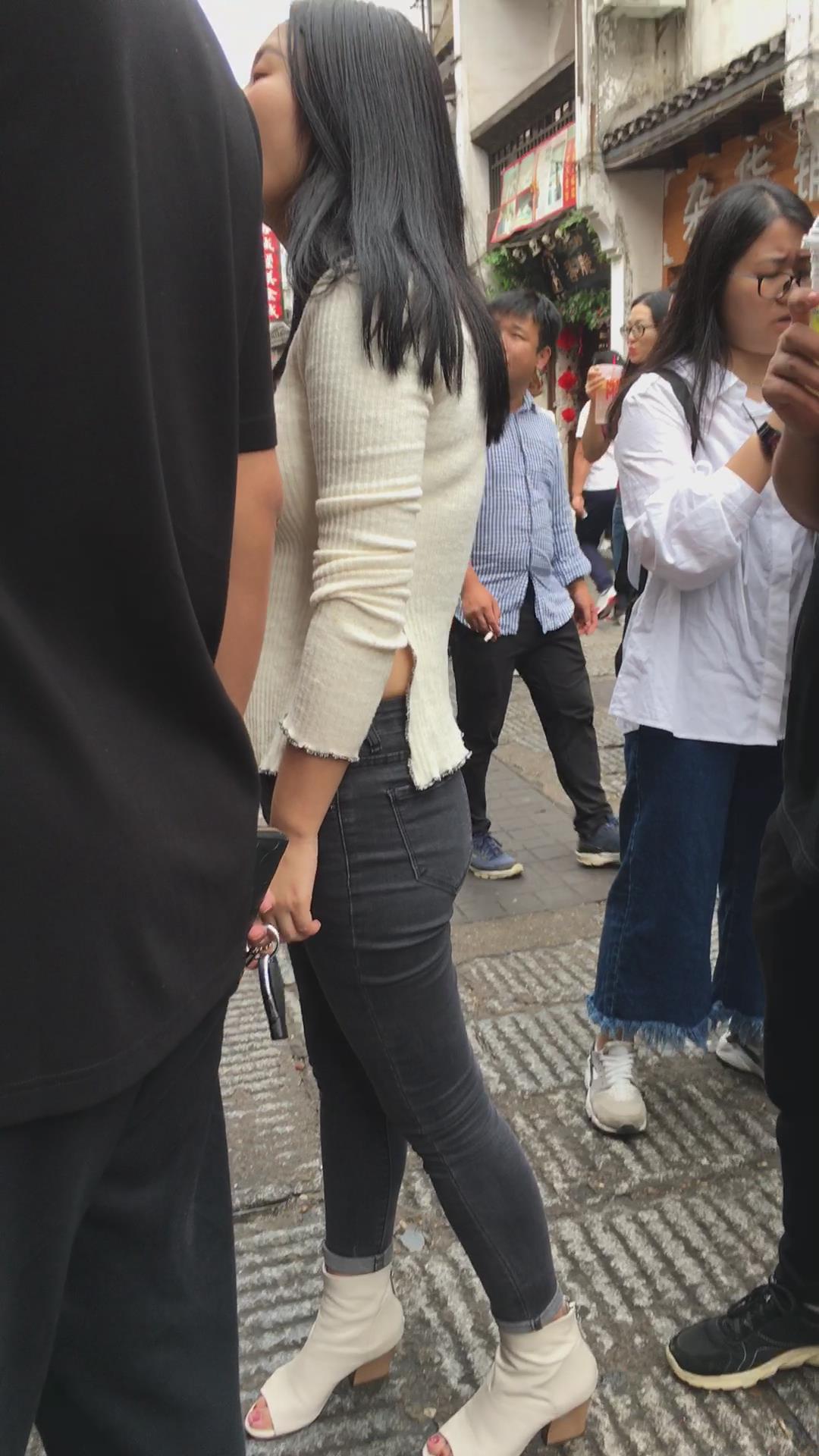 黑色紧身裤宽臀美眉 编号5284