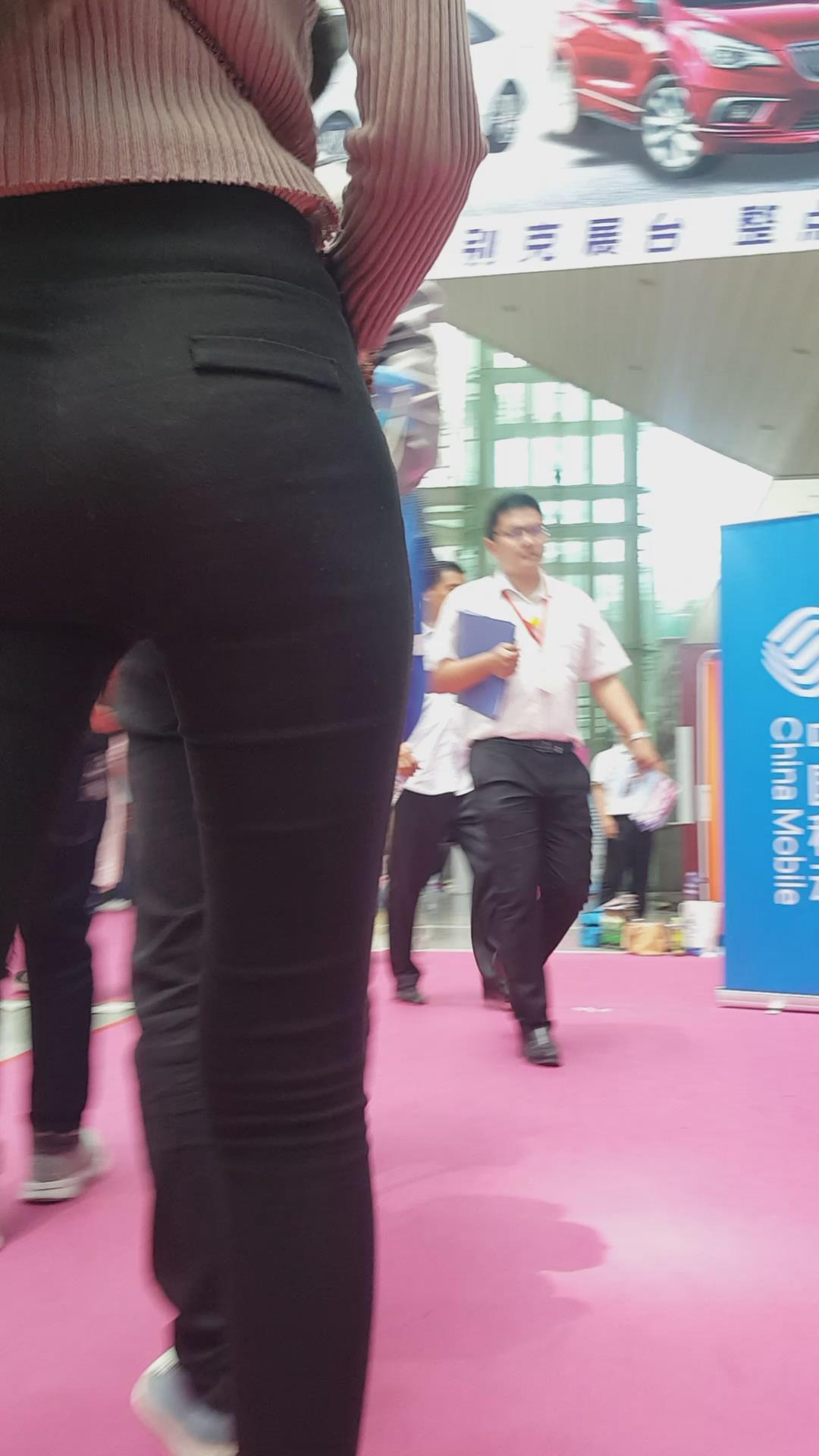 黑色紧身裤街拍美臀姐姐 编号5301
