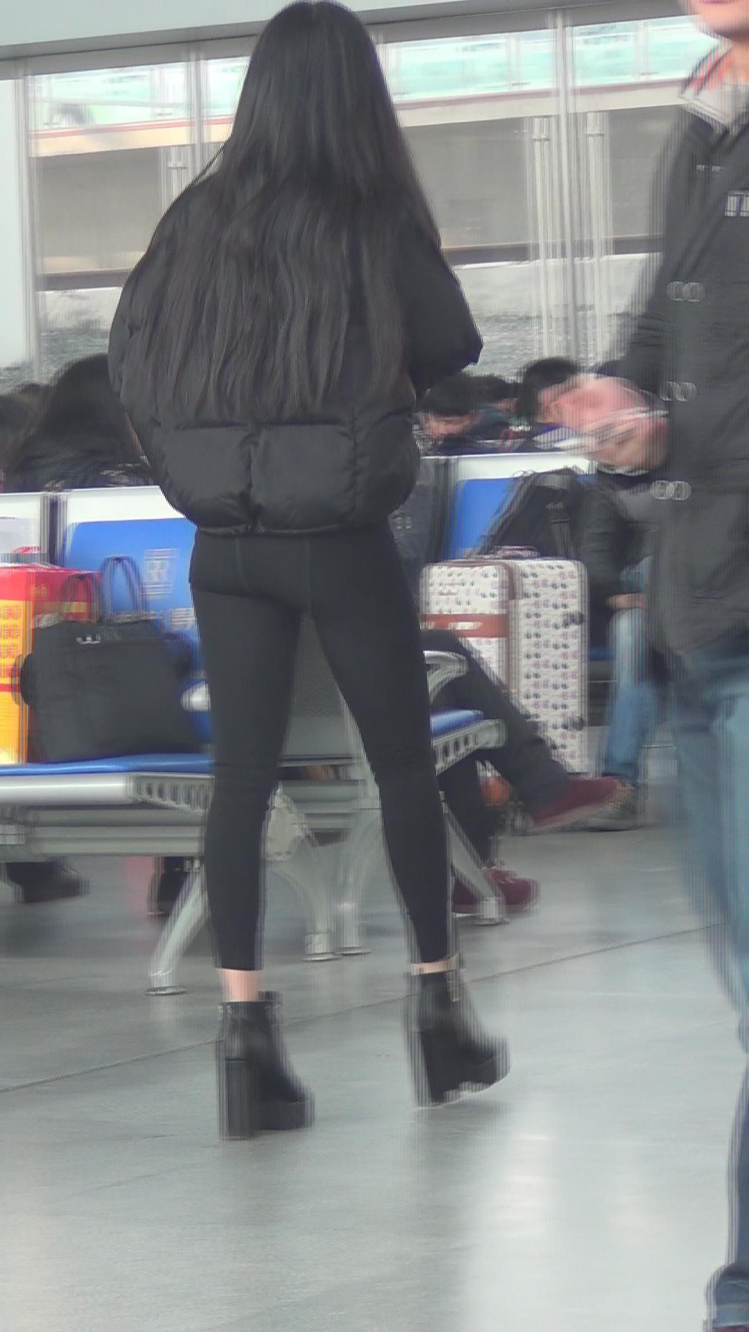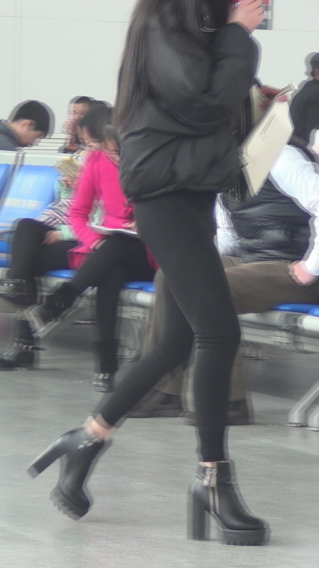 街拍黑色紧身裤长腿美女视频 编号5321