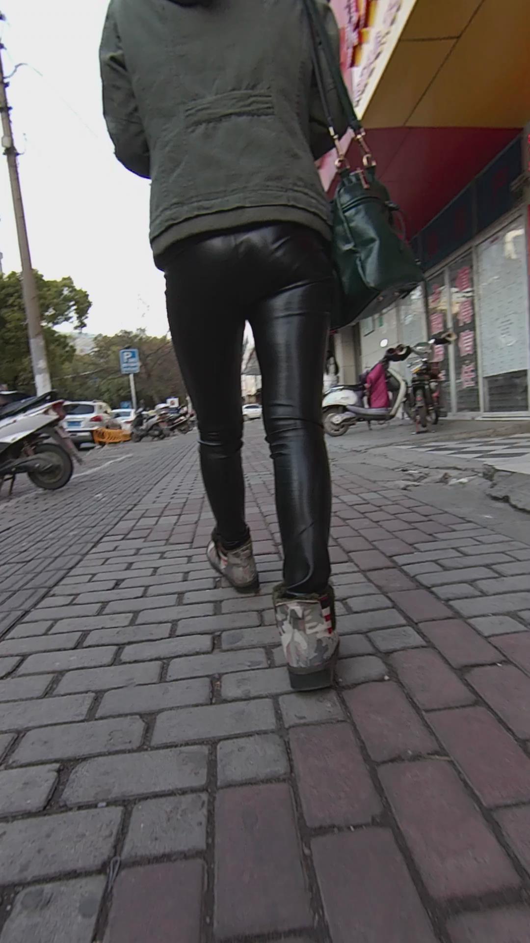 街拍黑色紧身皮裤美眉 编号5342