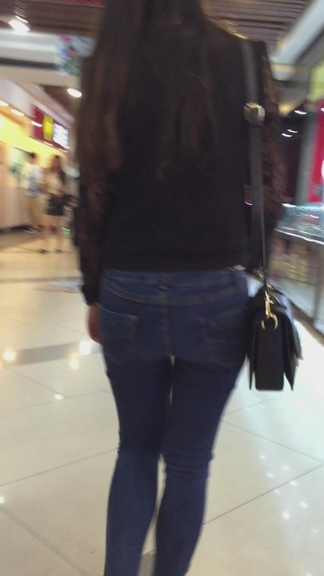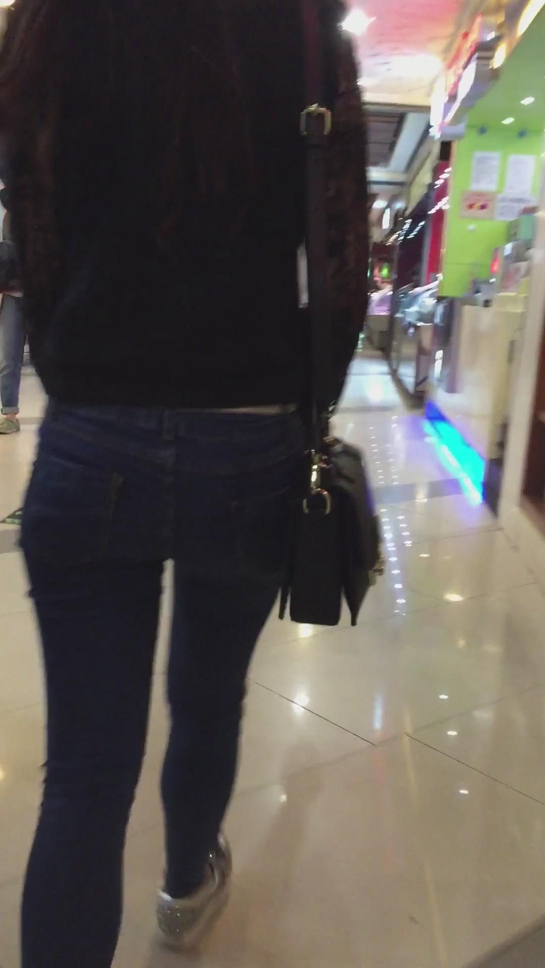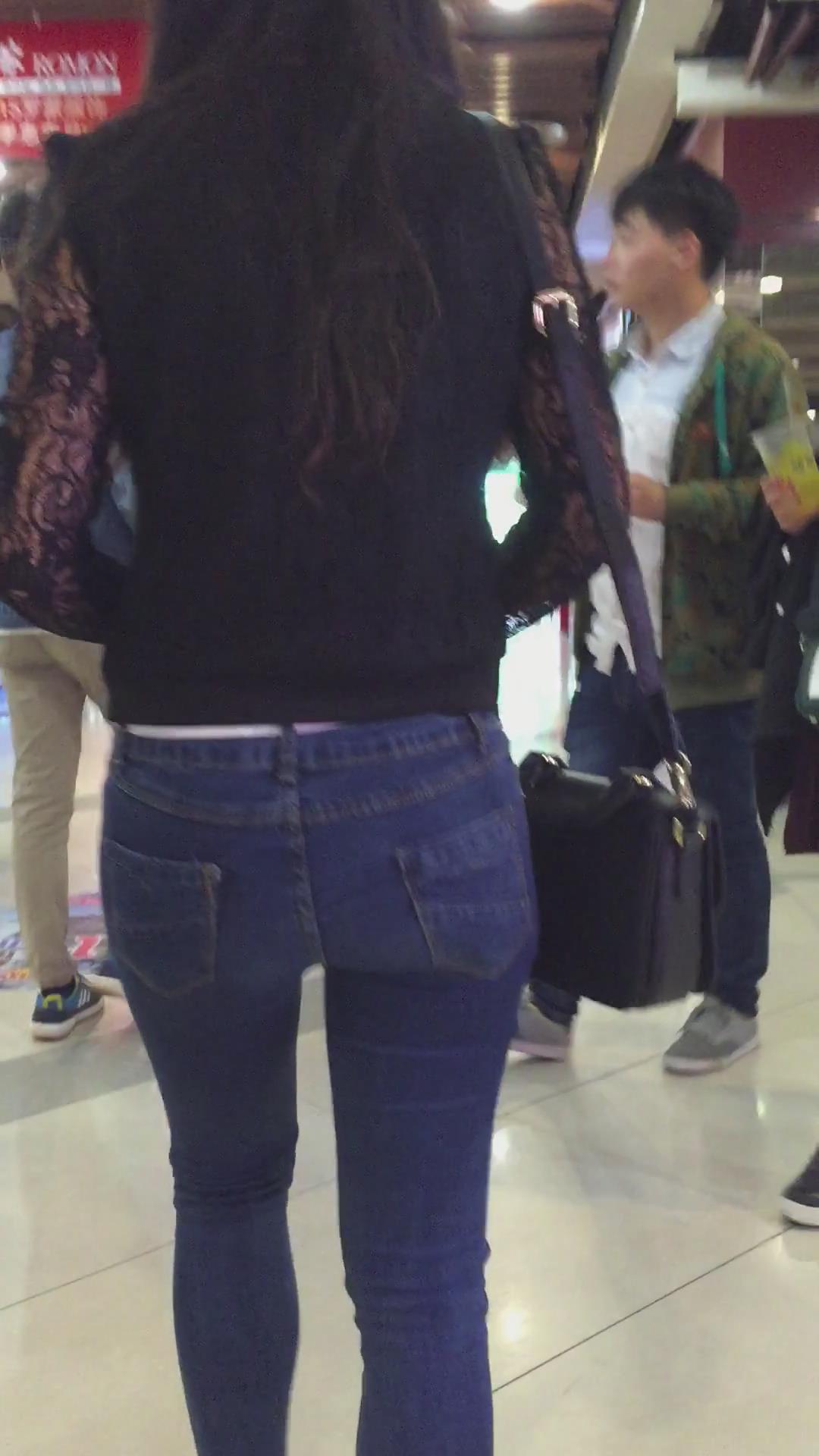 街拍紧身蓝色牛仔裤美眉、太紧啦 编号5345