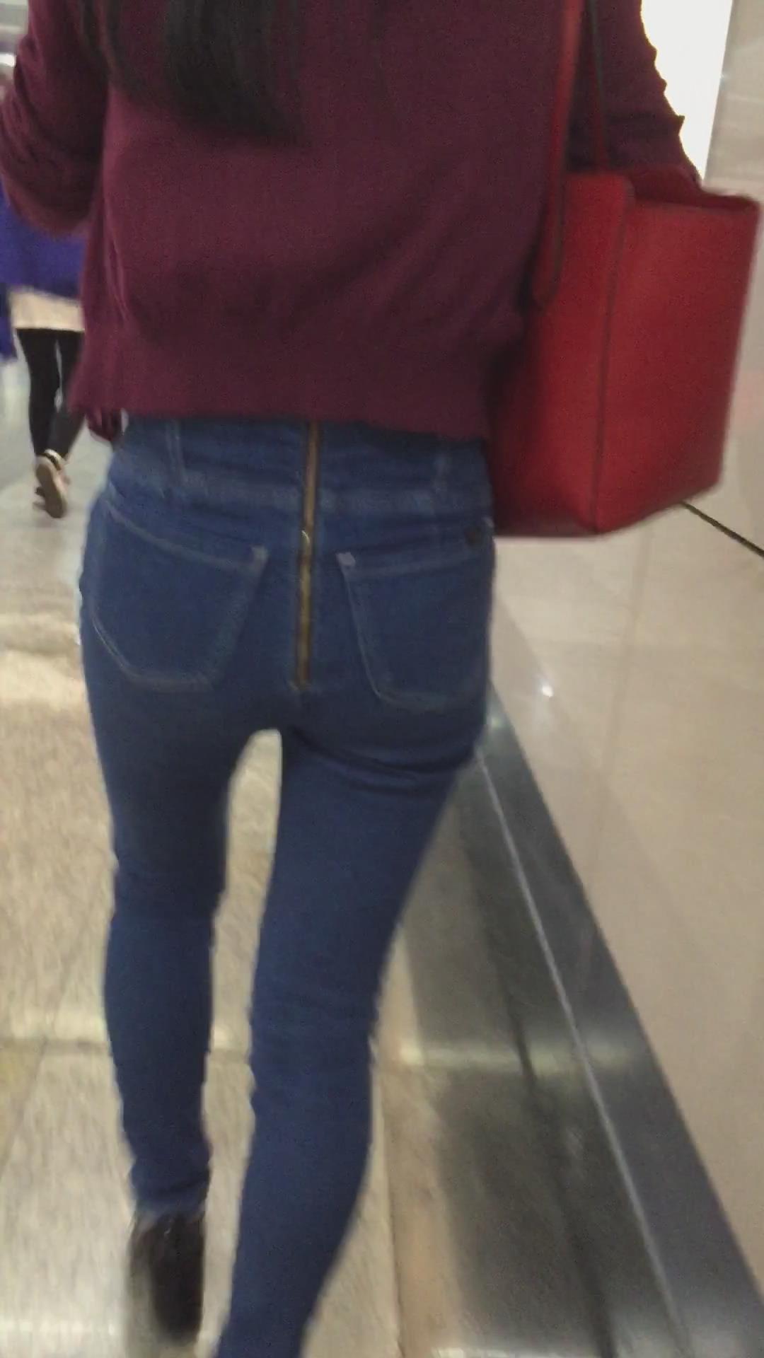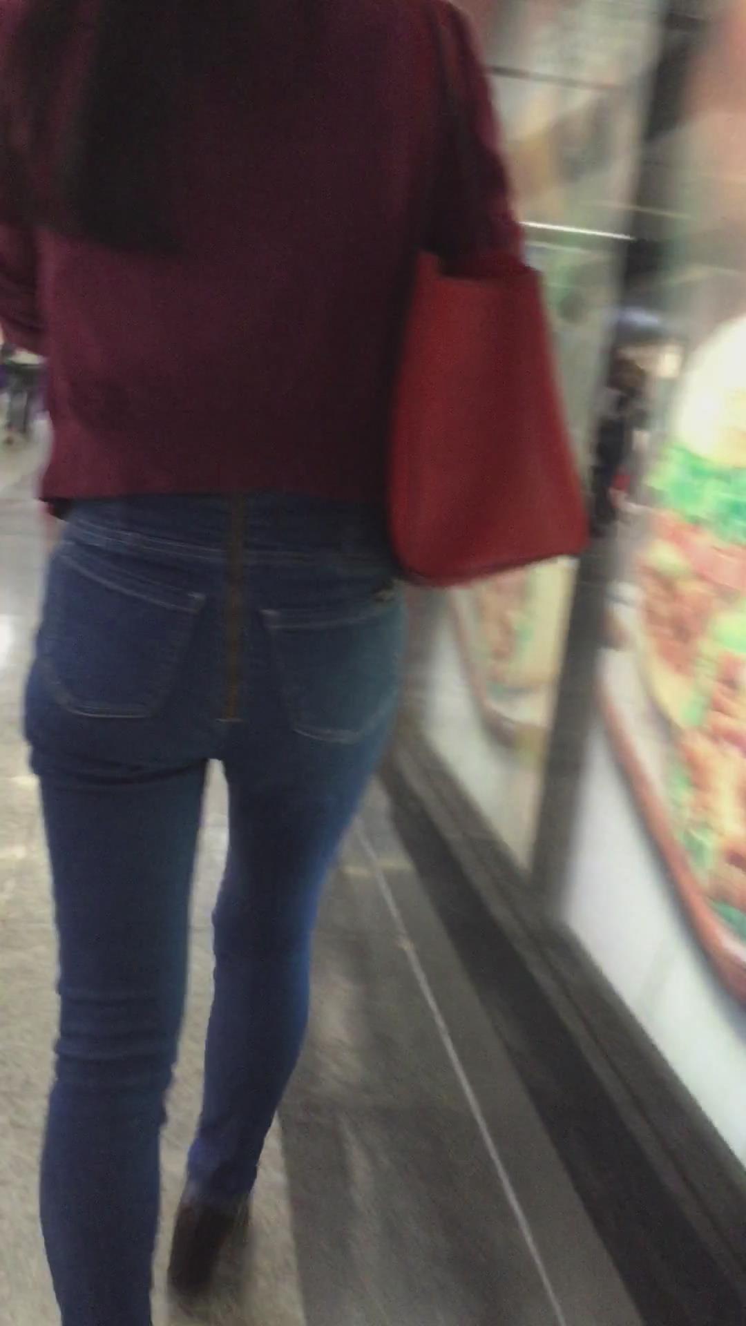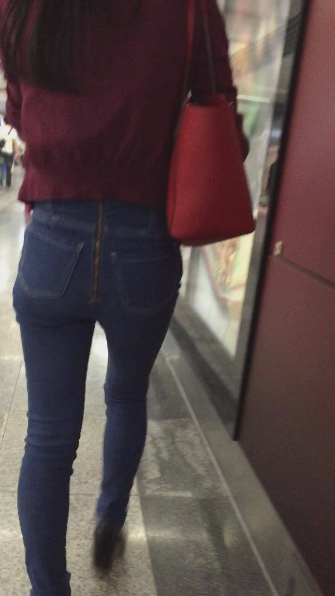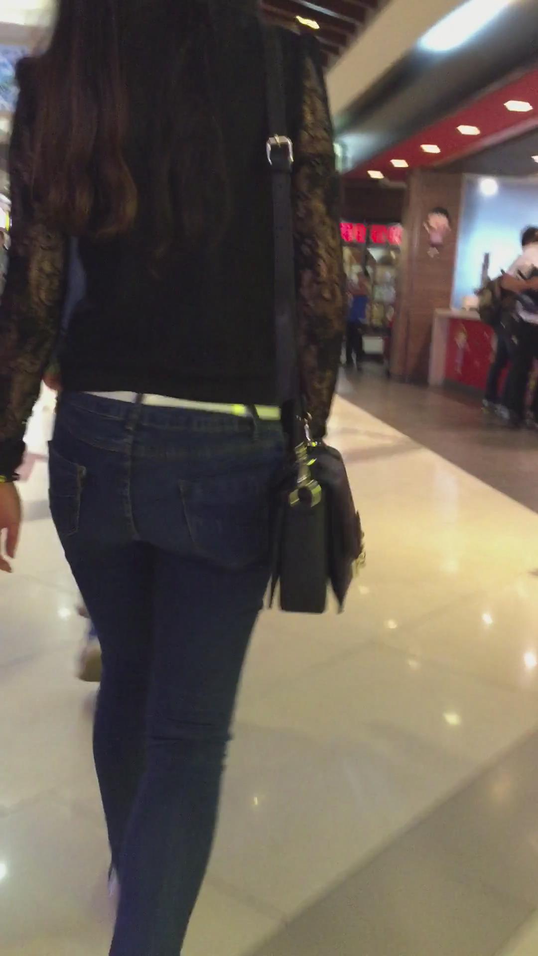 街拍紧身蓝色牛仔裤美眉、太紧啦 编号5345