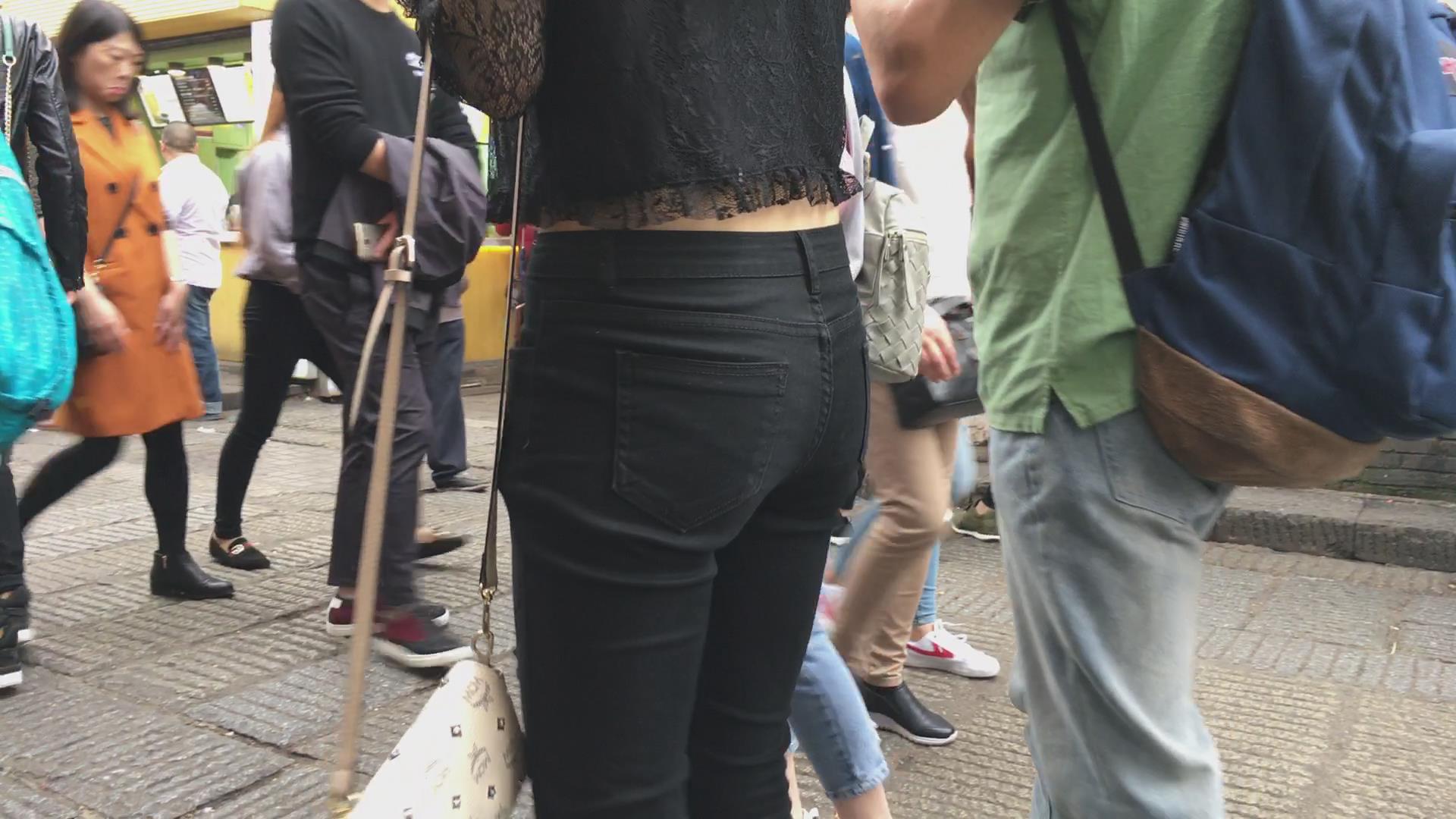 街拍黑色紧身裤美女 编号5348