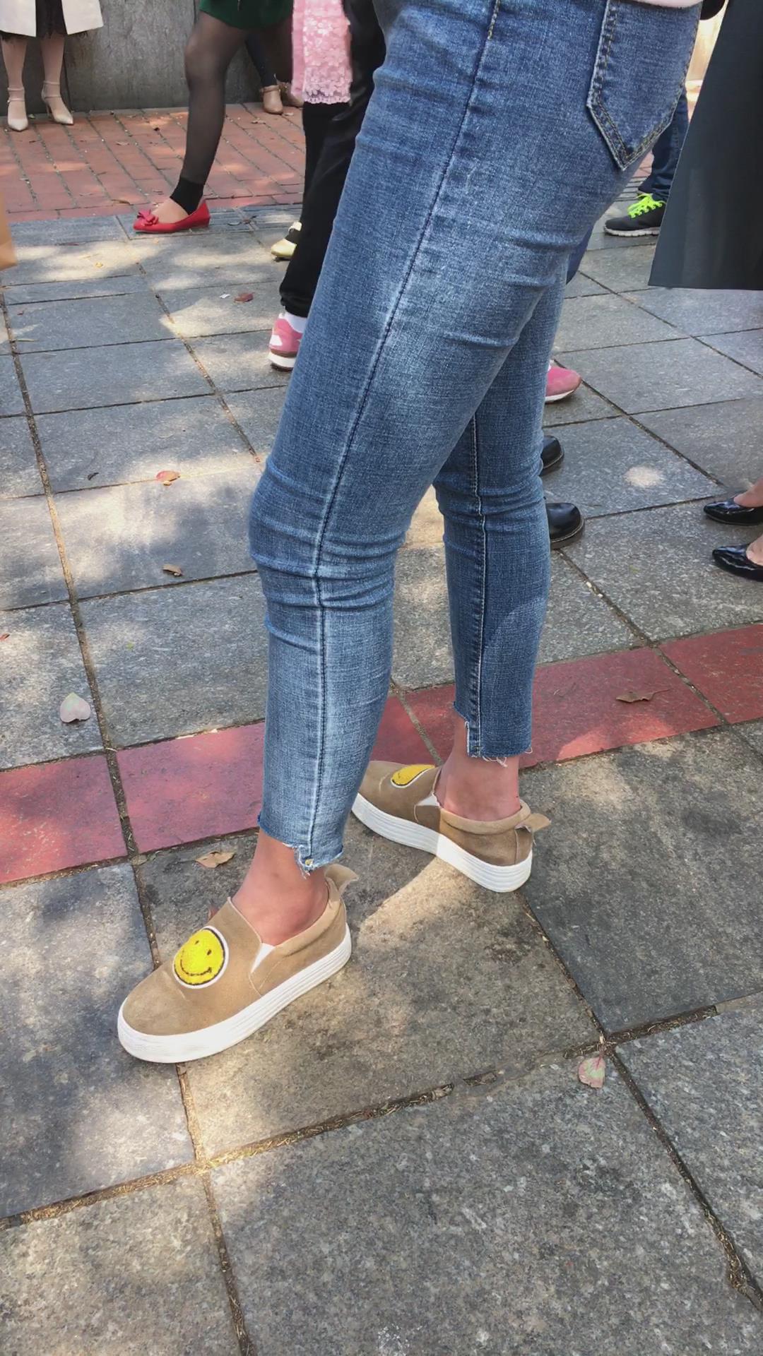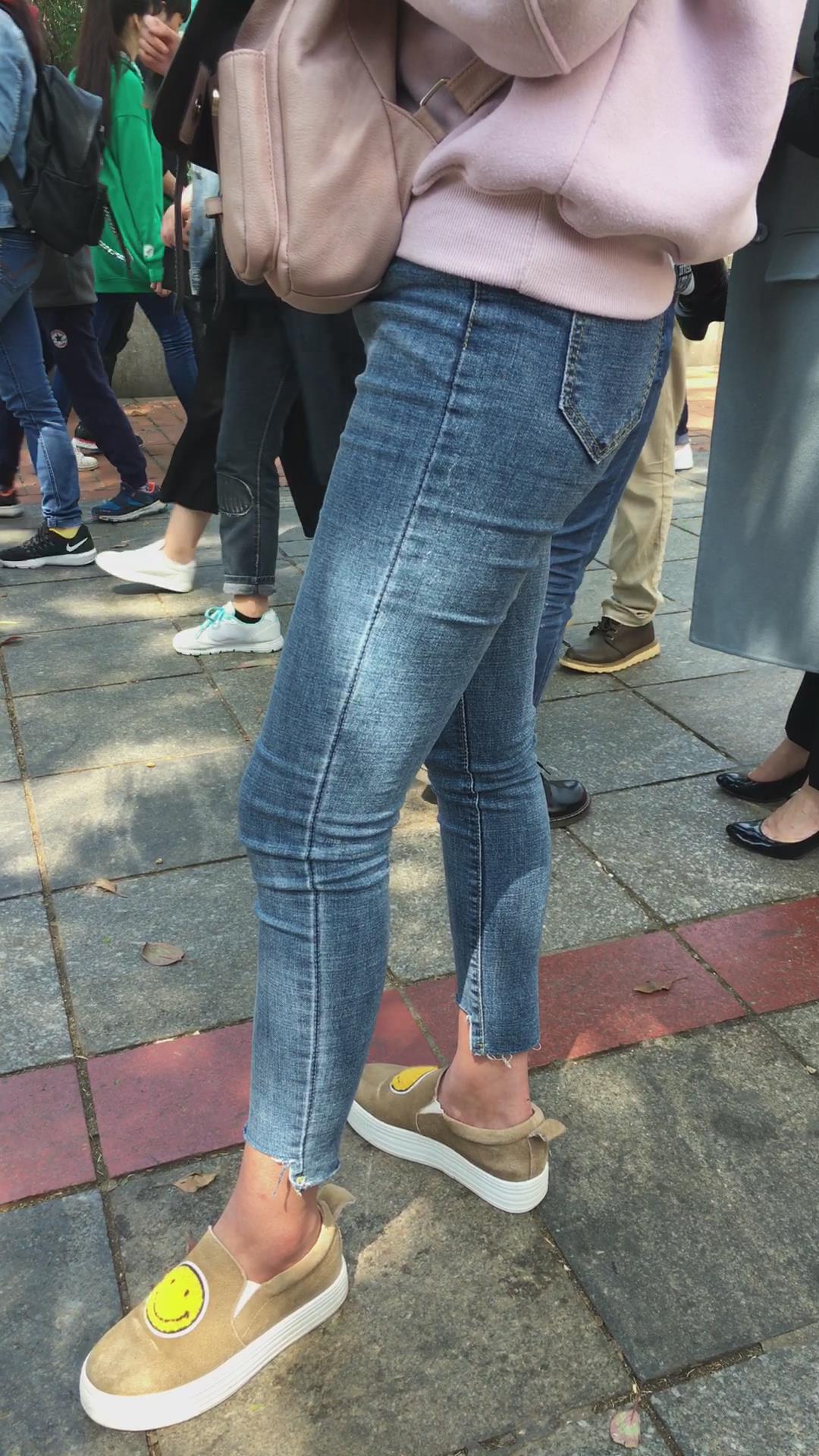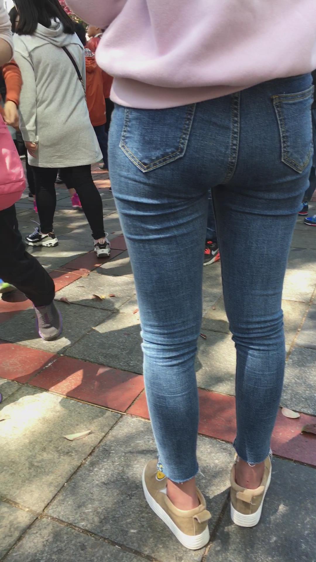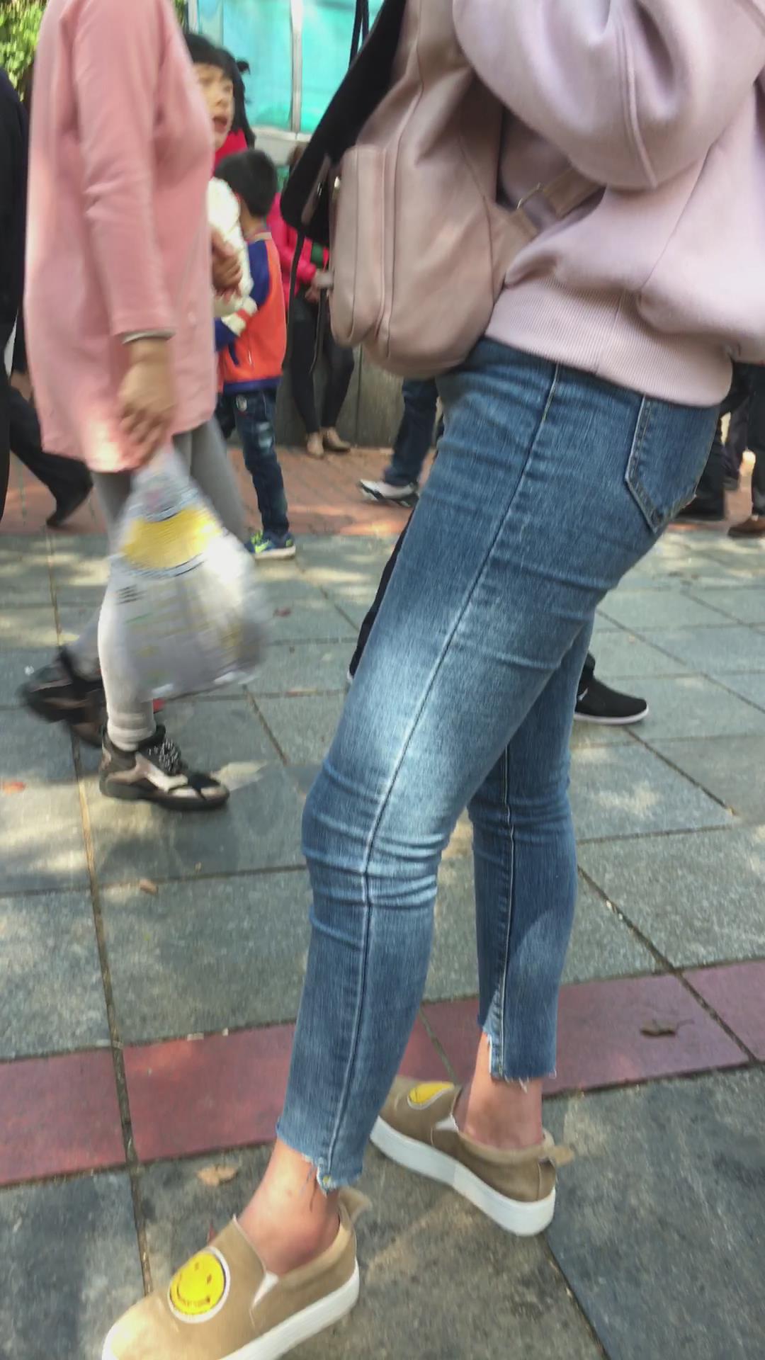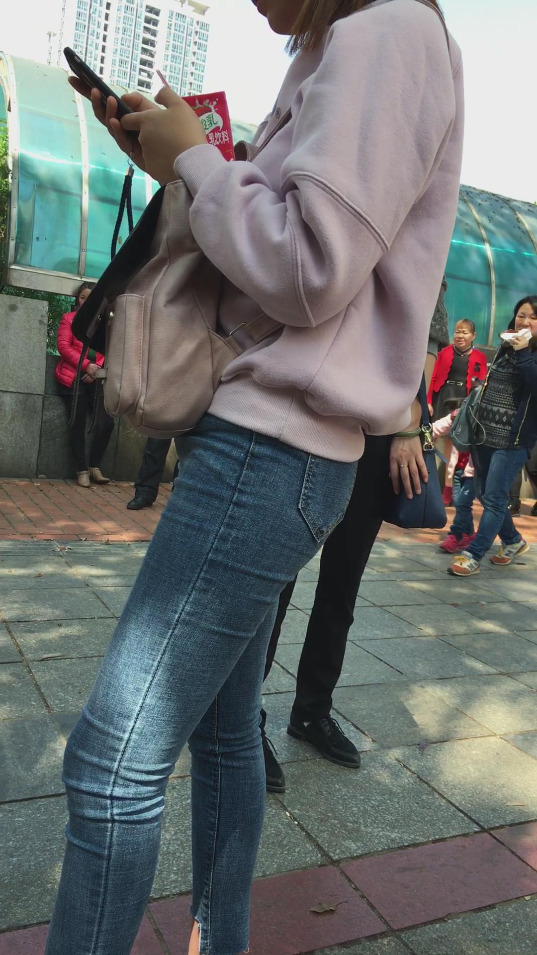 街拍超紧身蓝色牛仔裤圆臀美女 编号5350
