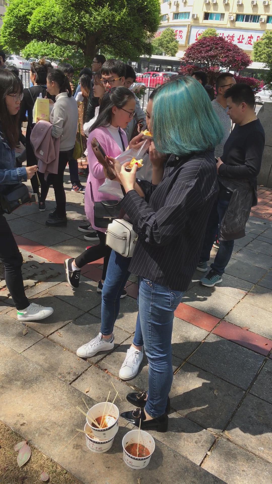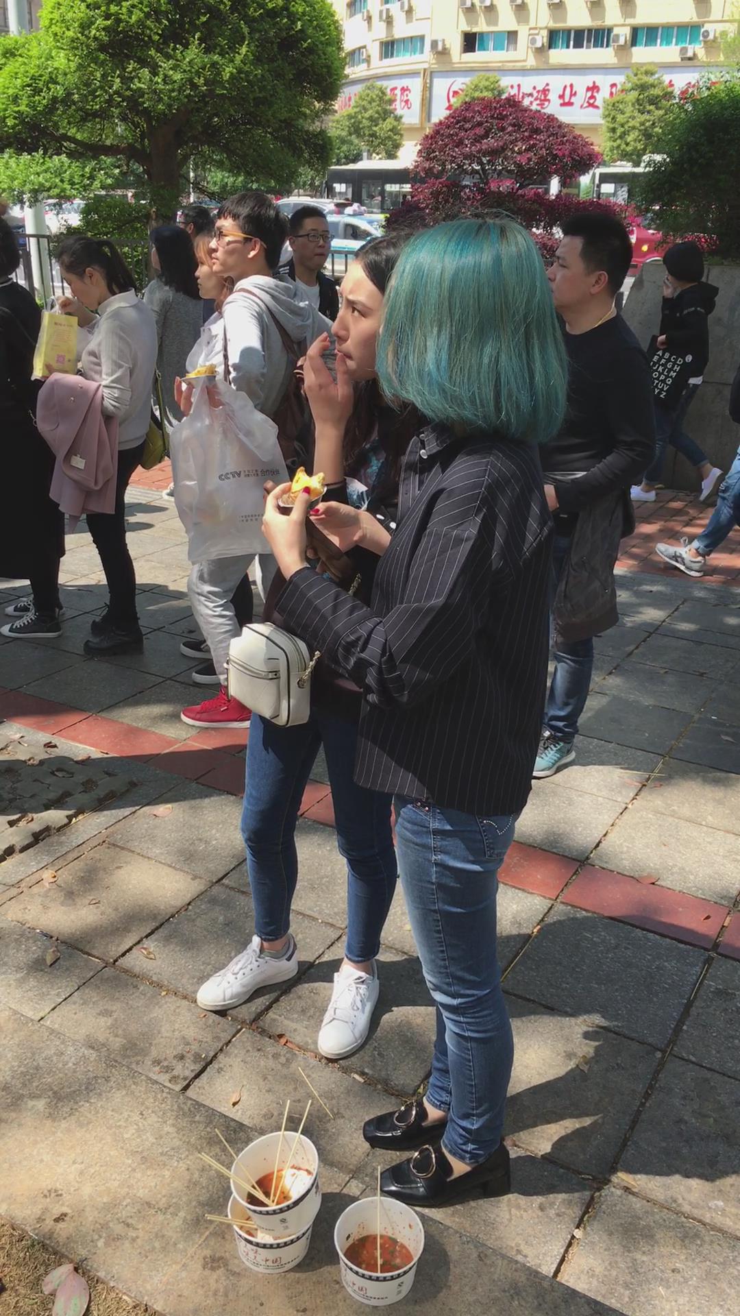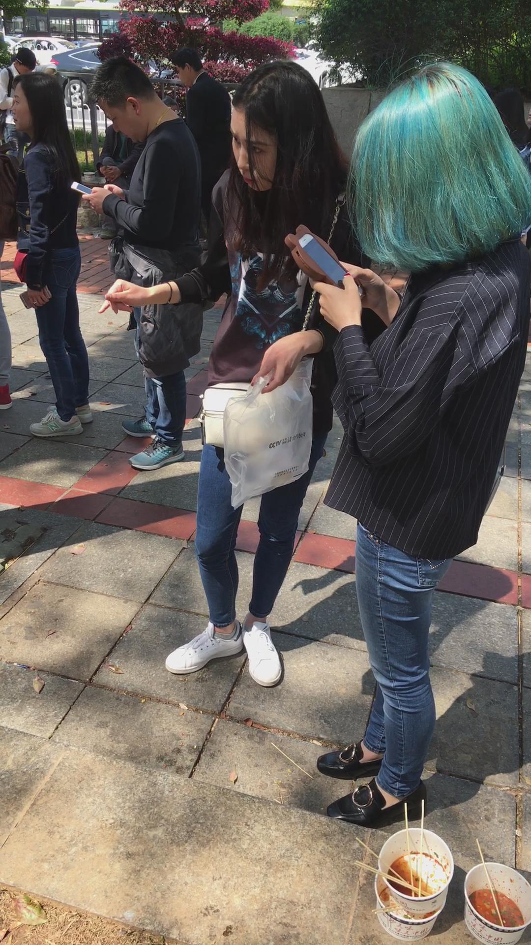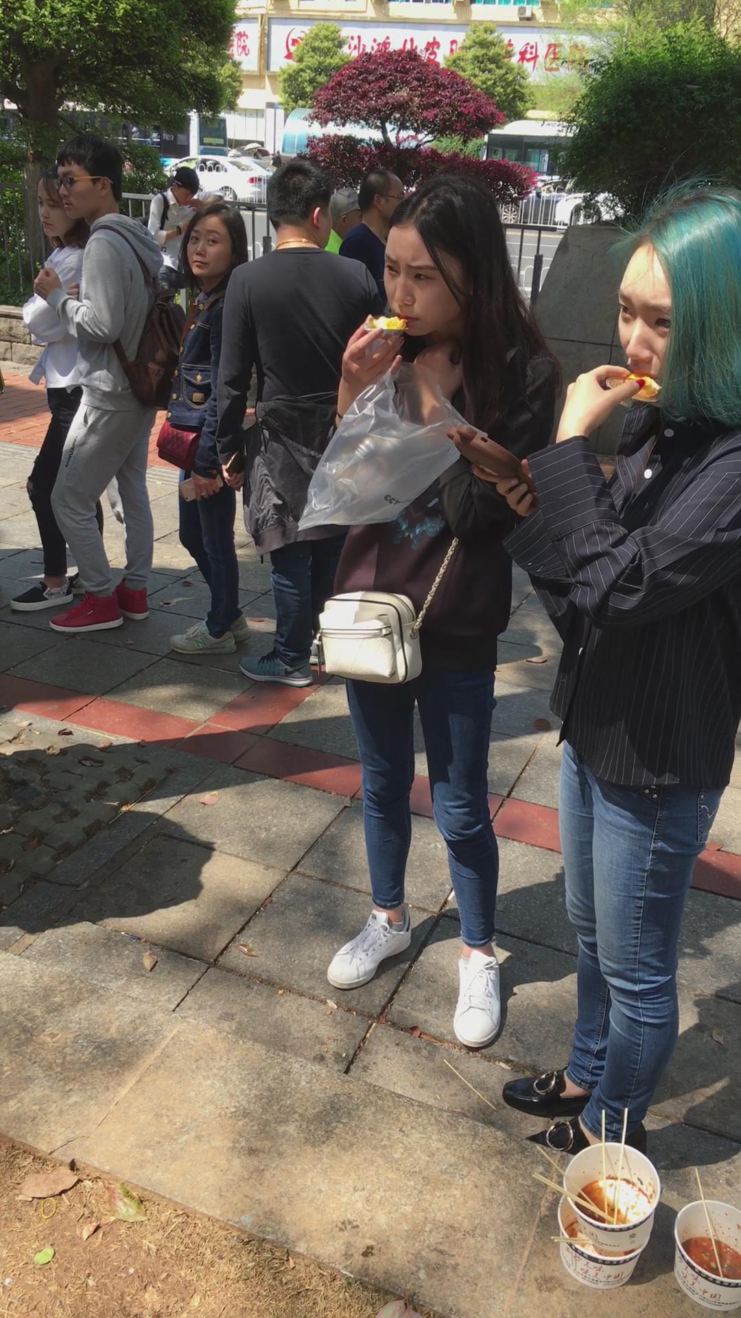 路边吃小吃的两位蓝牛妹纸 编号5353