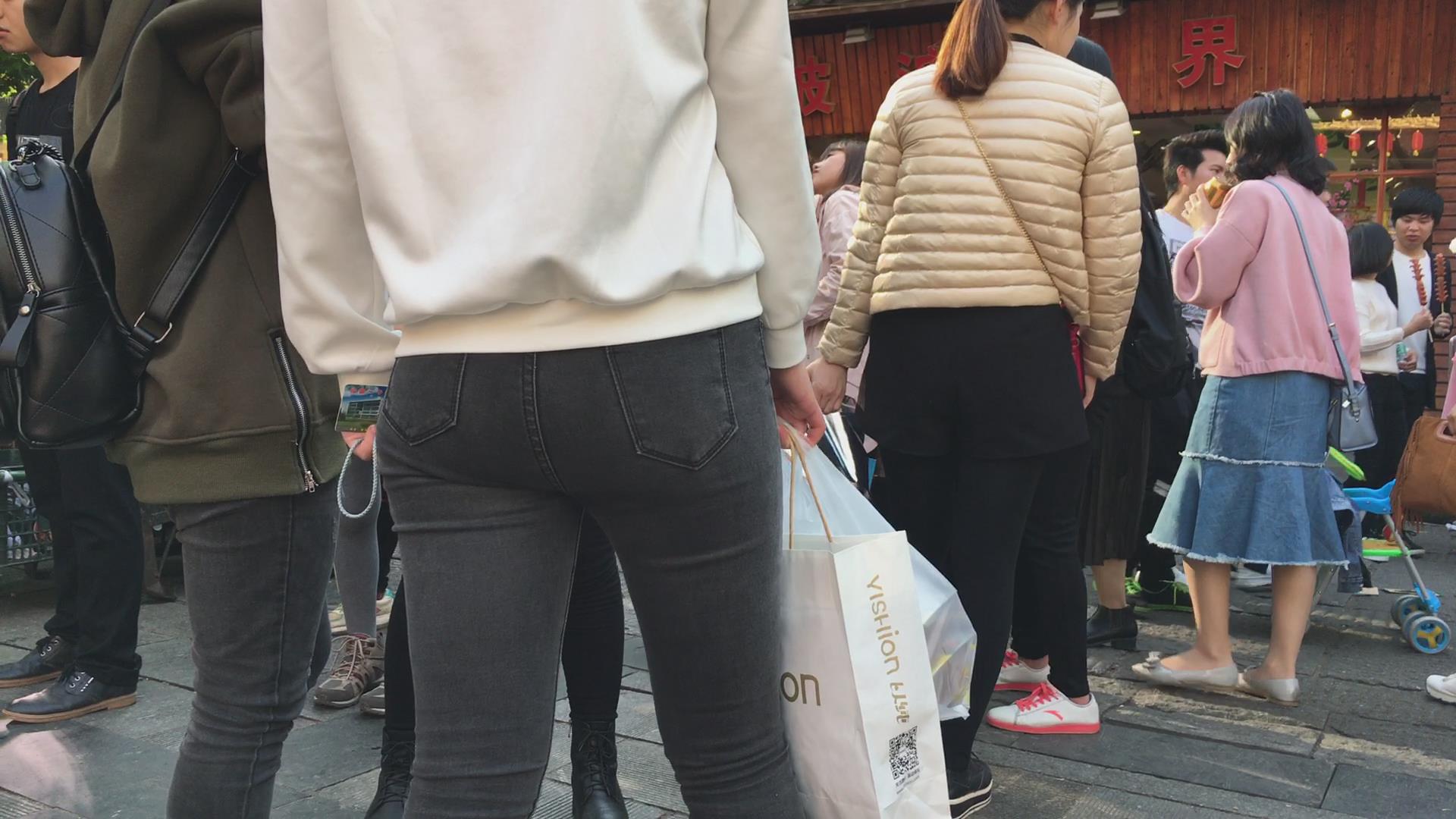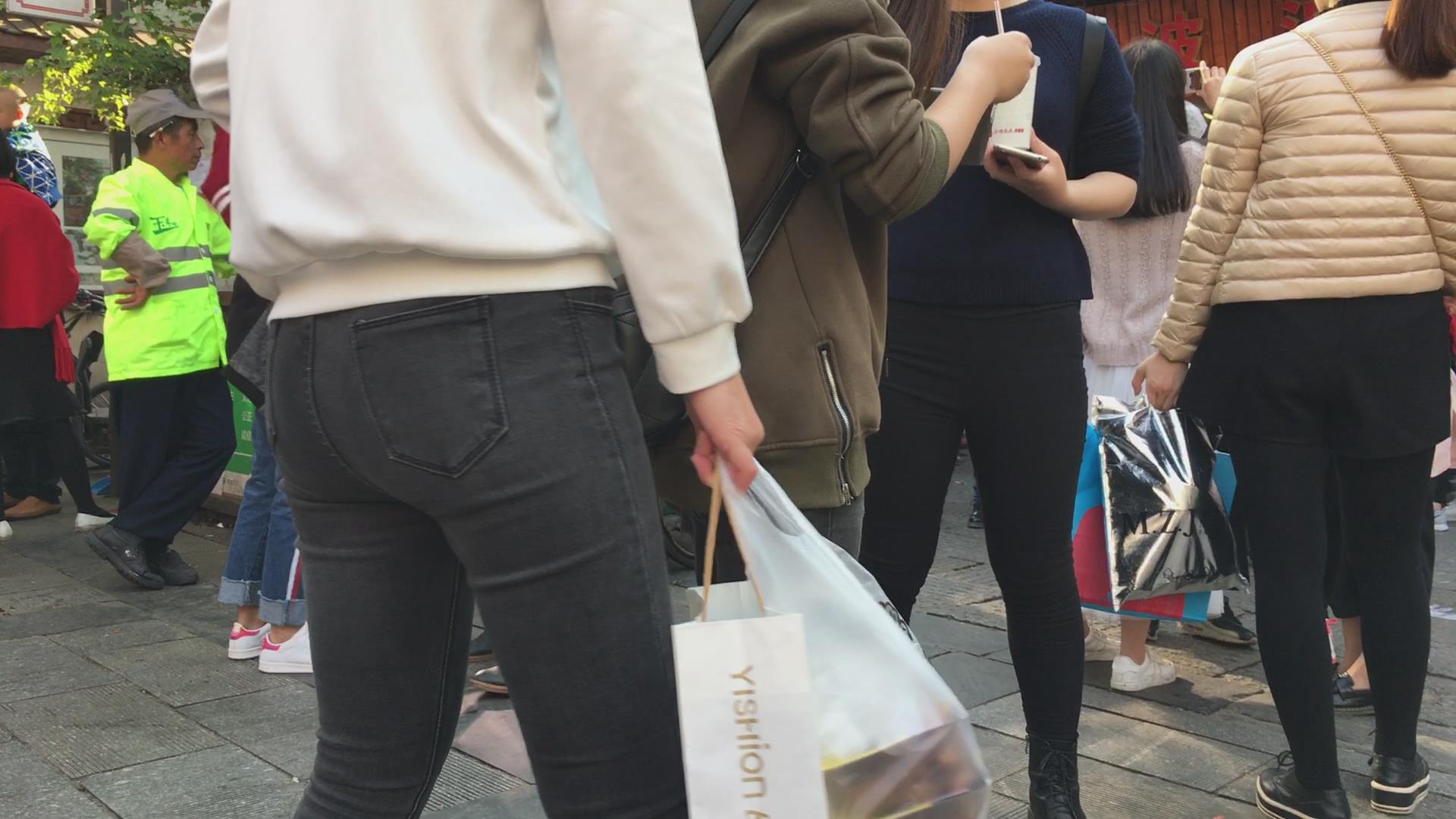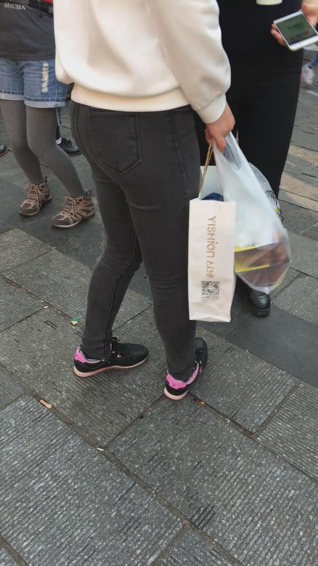 街拍极品黑色紧身裤宽臀美眉 编号5355