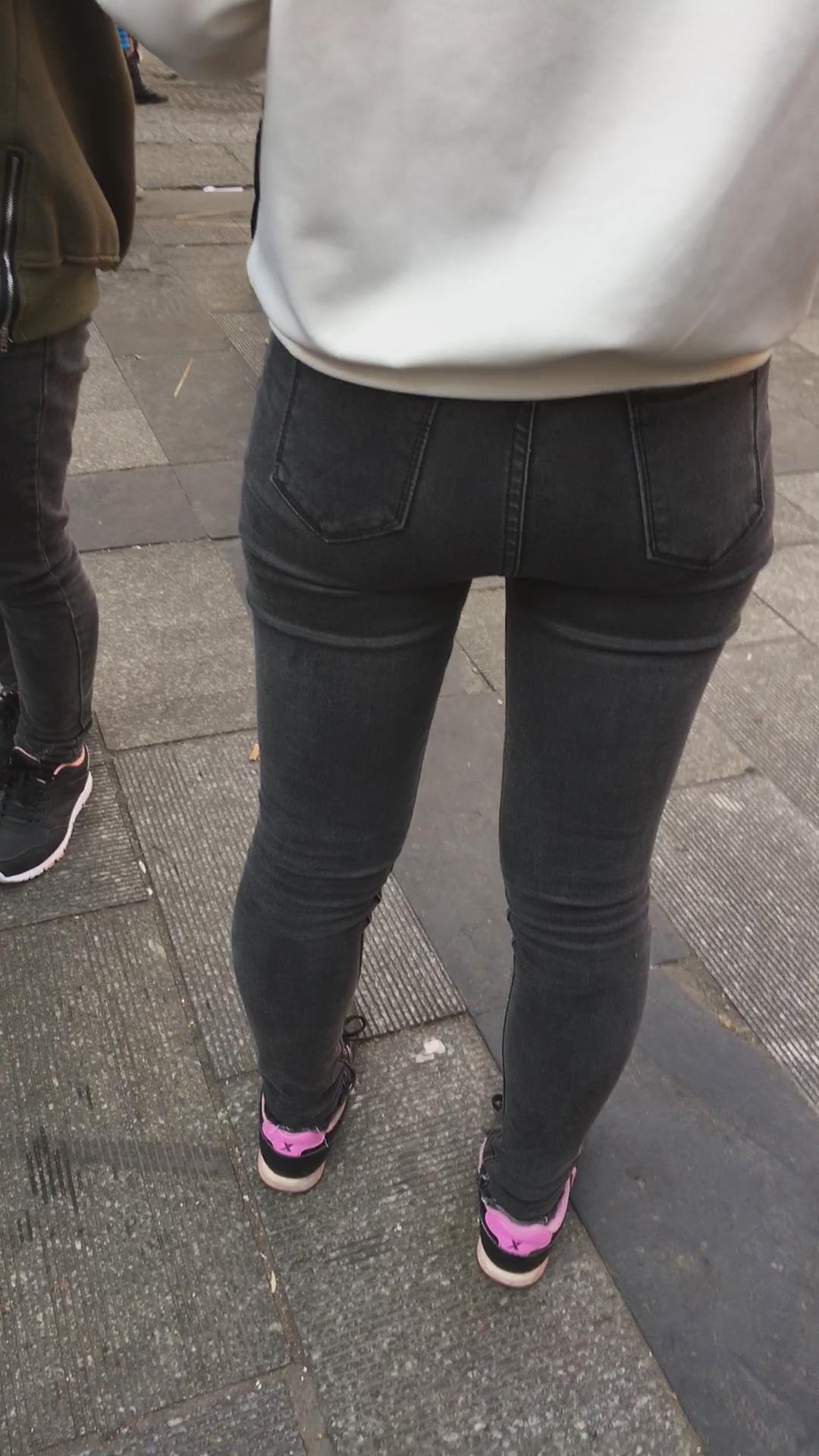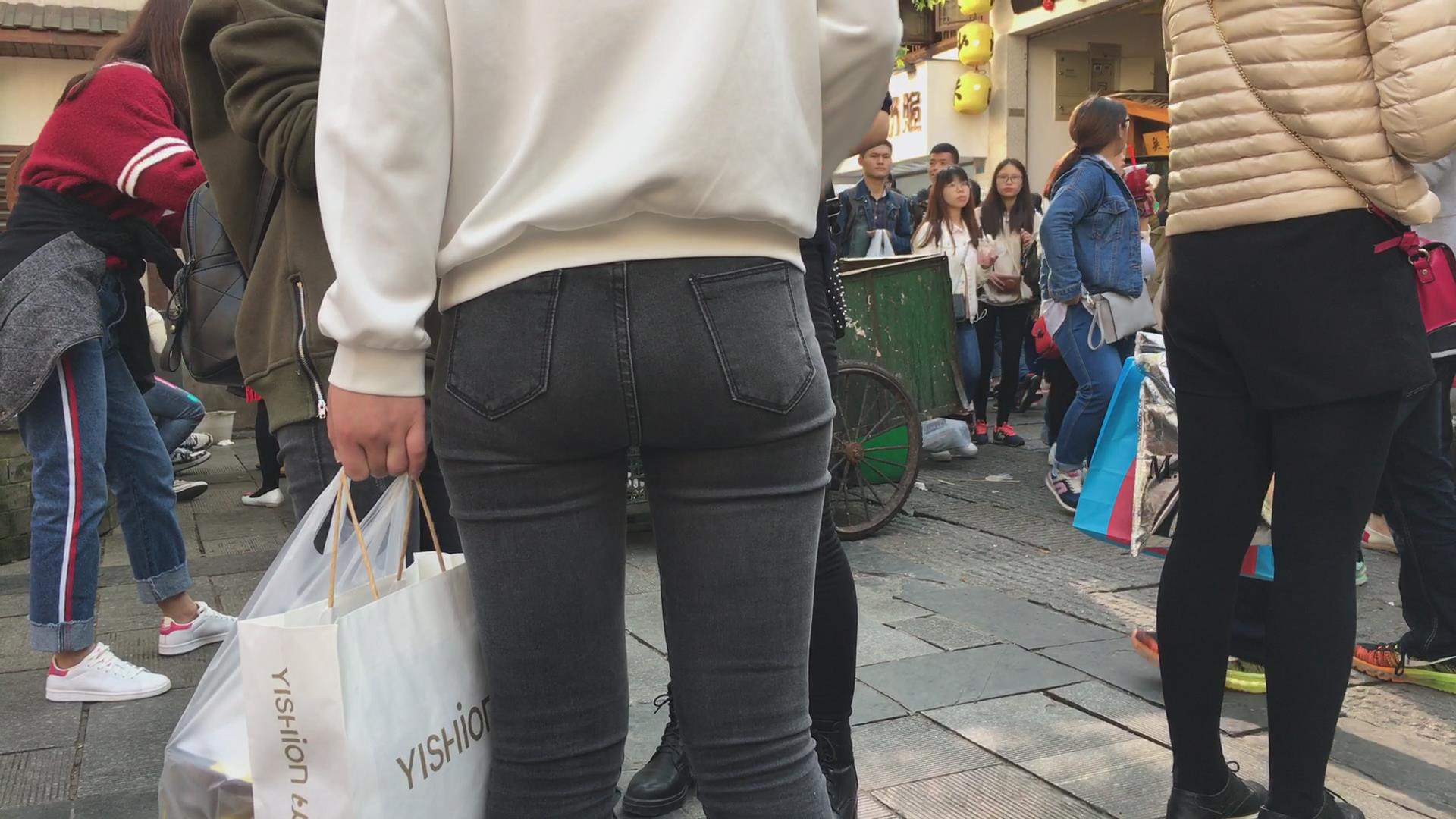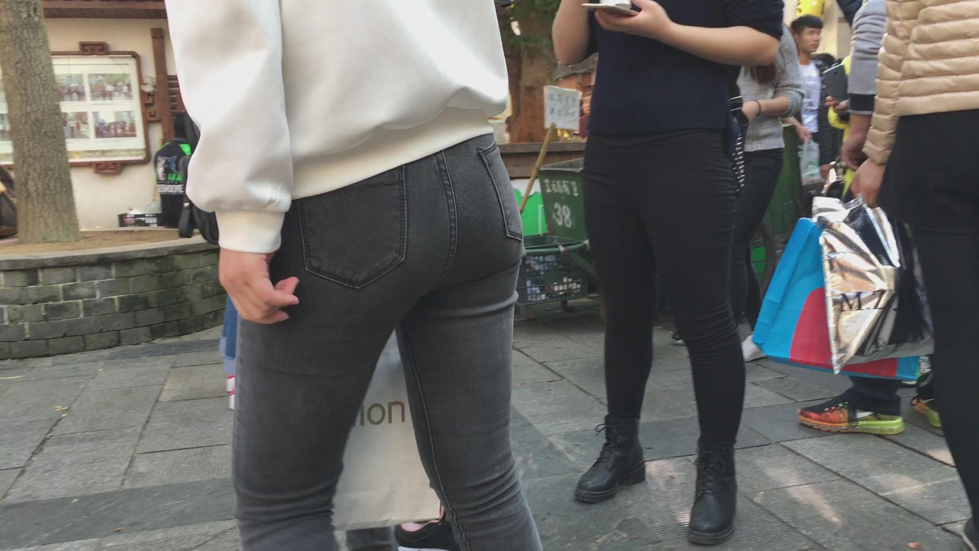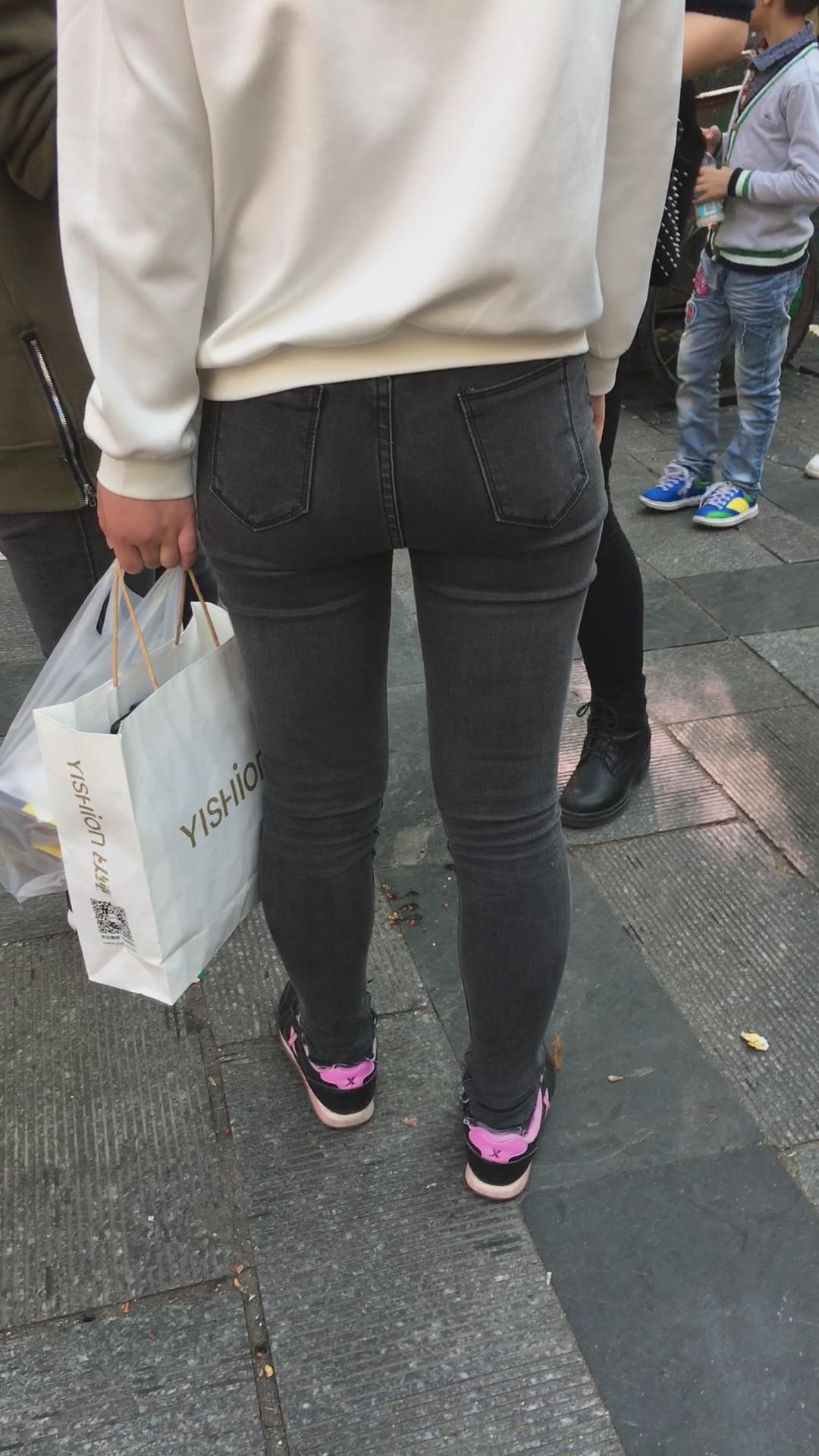 街拍极品黑色紧身裤宽臀美眉 编号5355