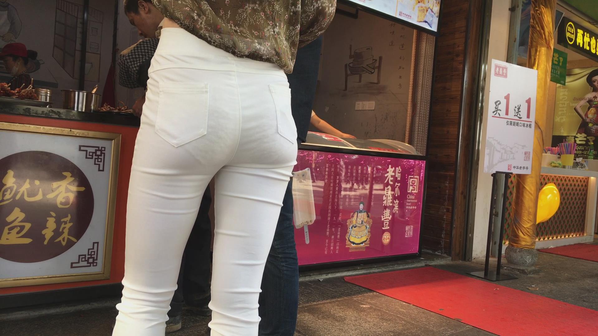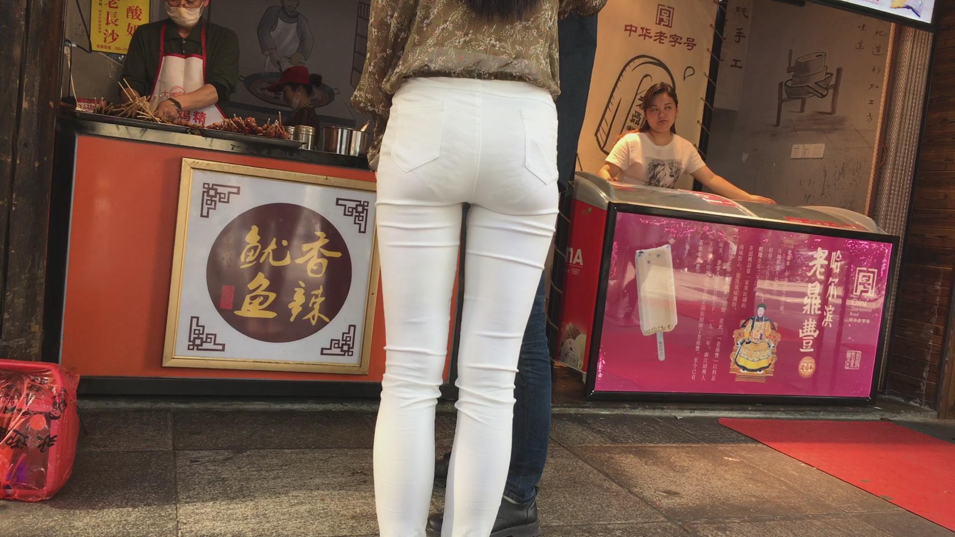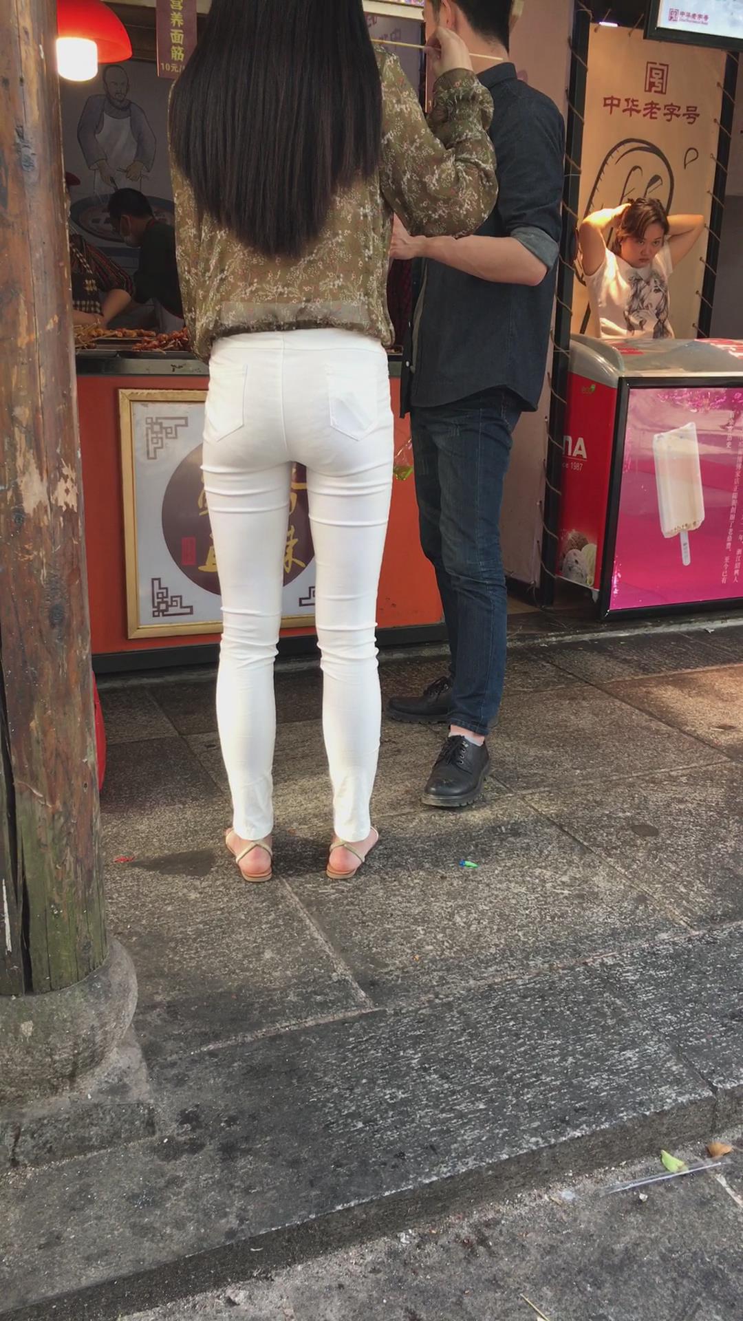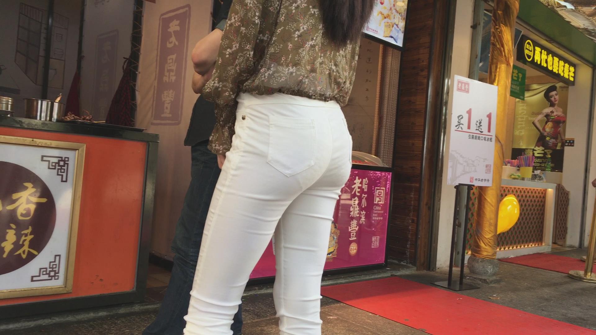 街拍极品超薄紧身白裤美女,似乎内内都印出来了 编号5361