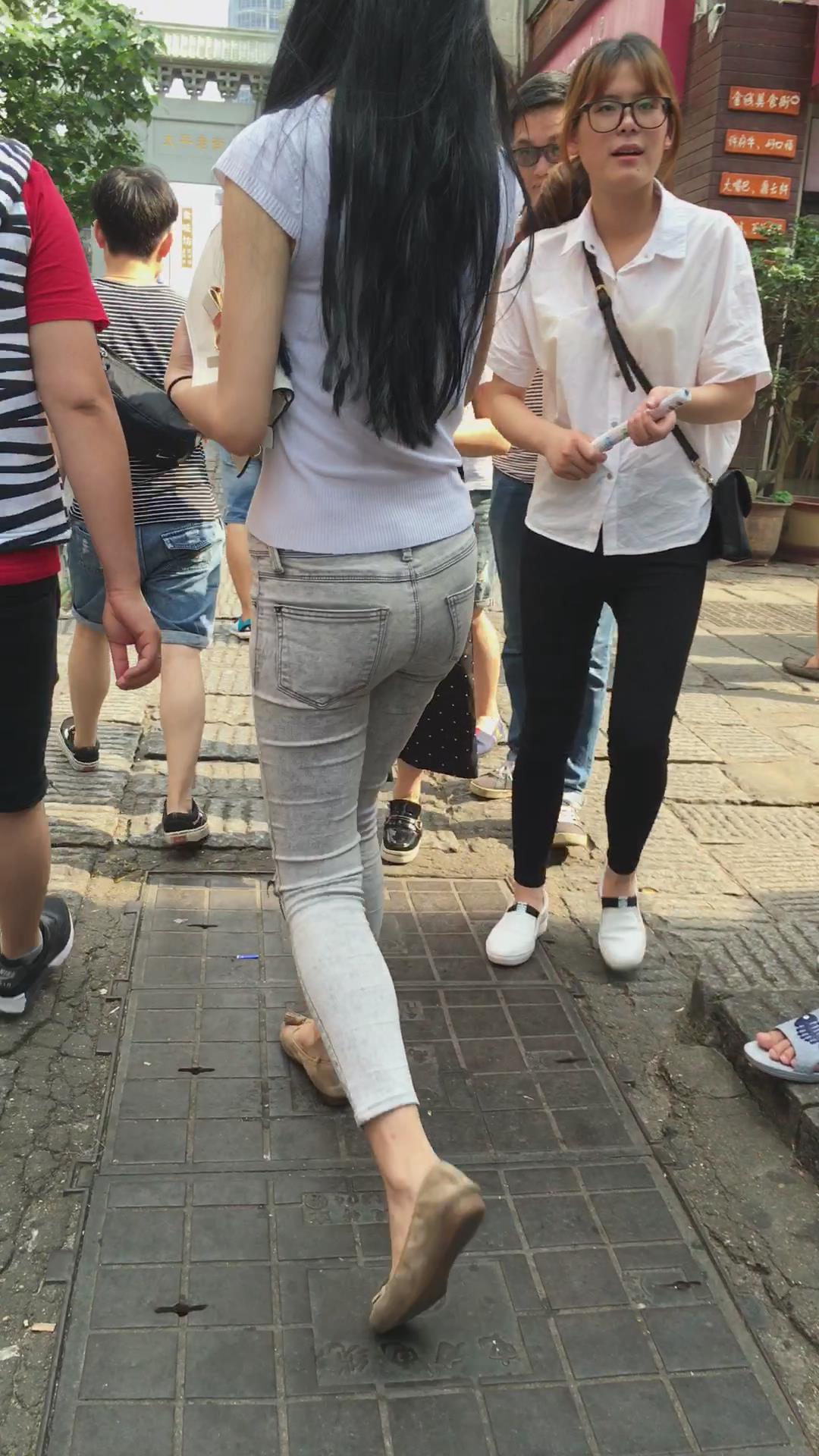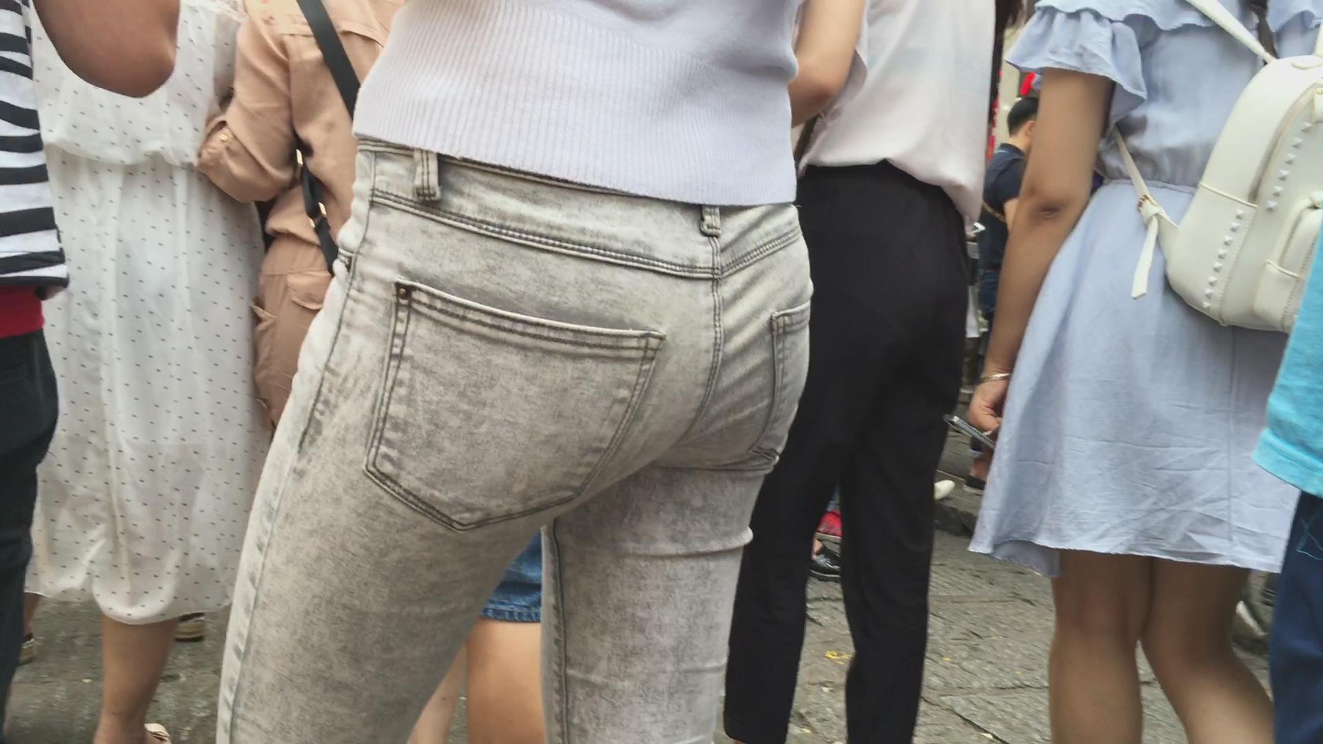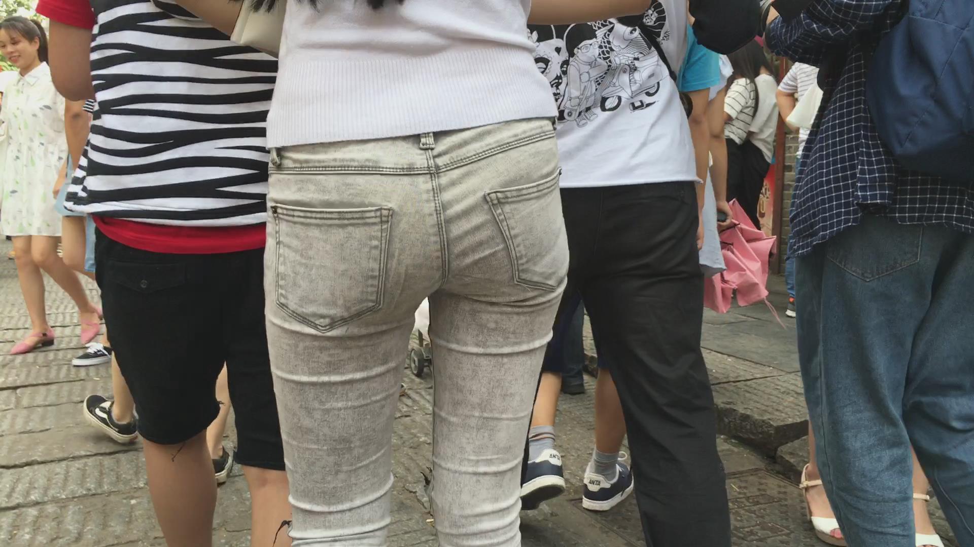 修身灰色牛仔裤细腿苗条青春美女 编号6120