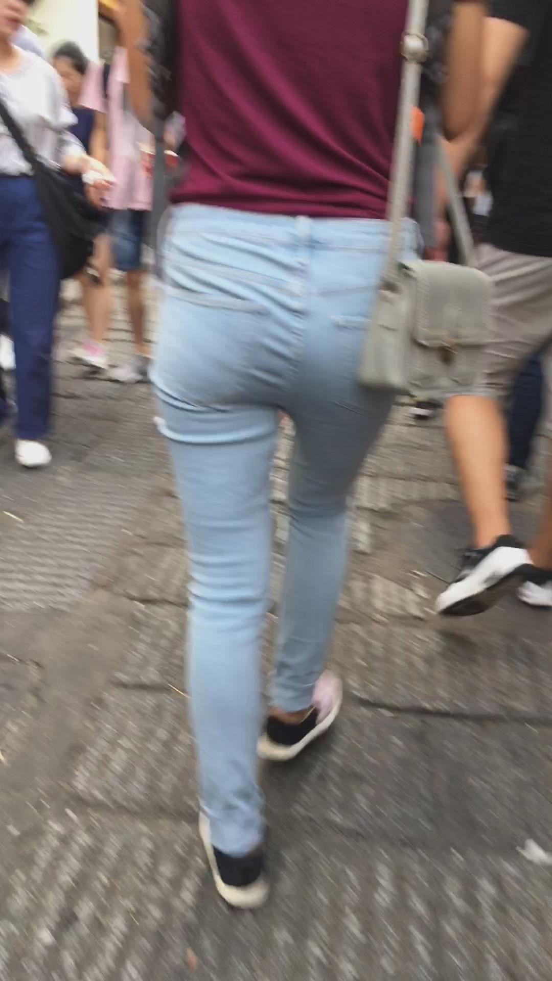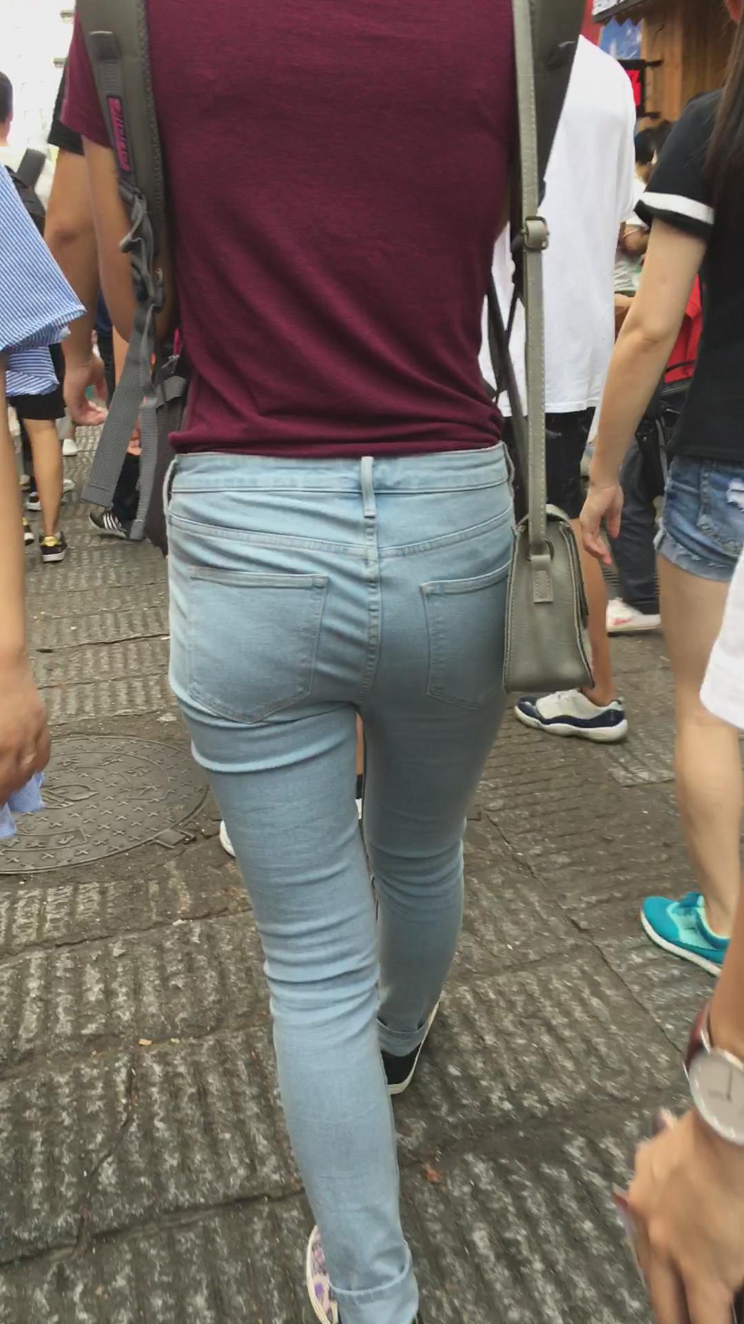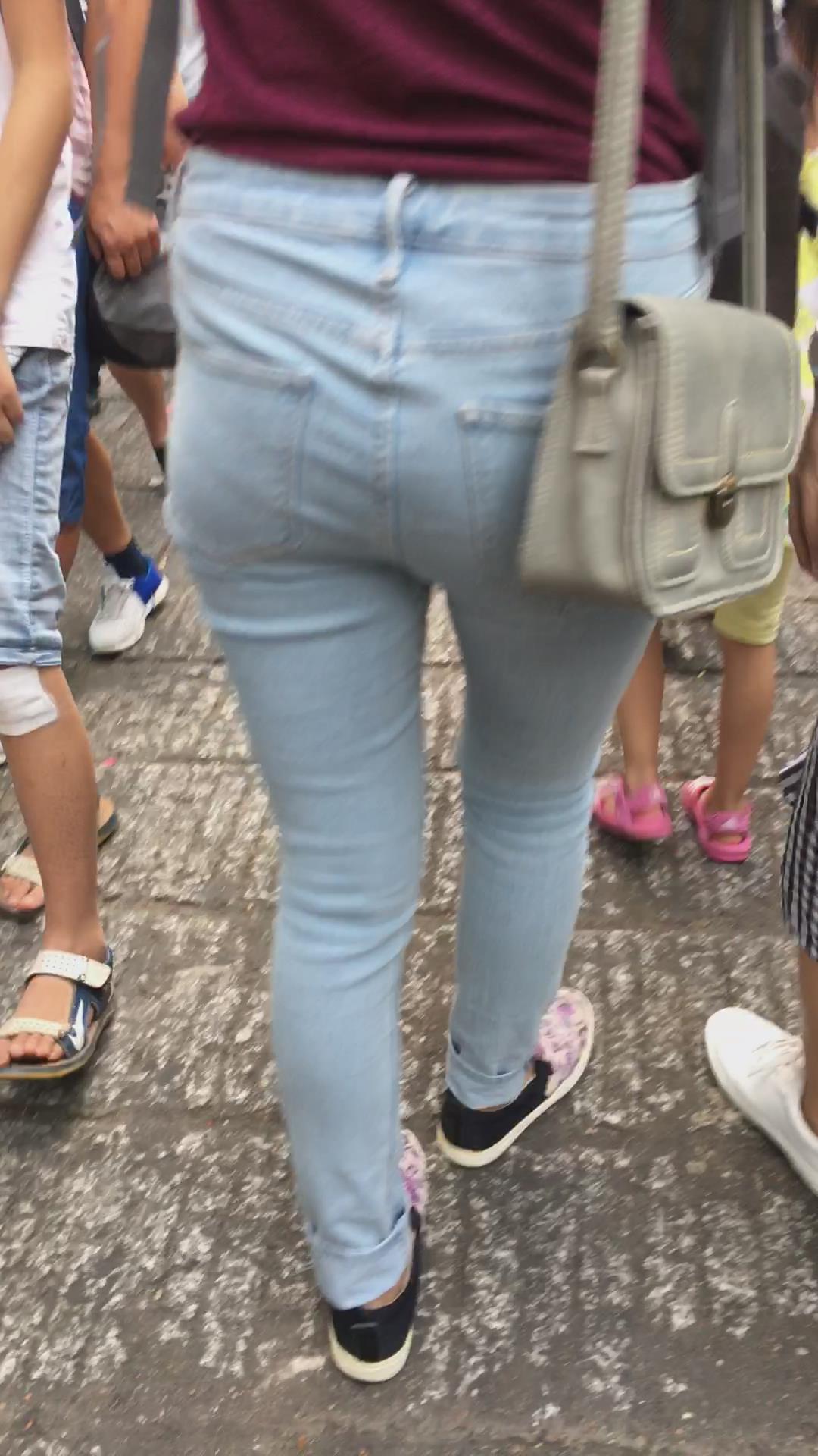 街拍紧身蓝色牛仔裤妹纸 编号5379