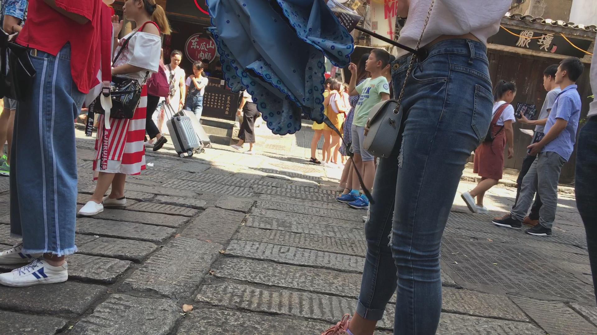 街拍超级紧身牛仔裤美眉 编号5385
