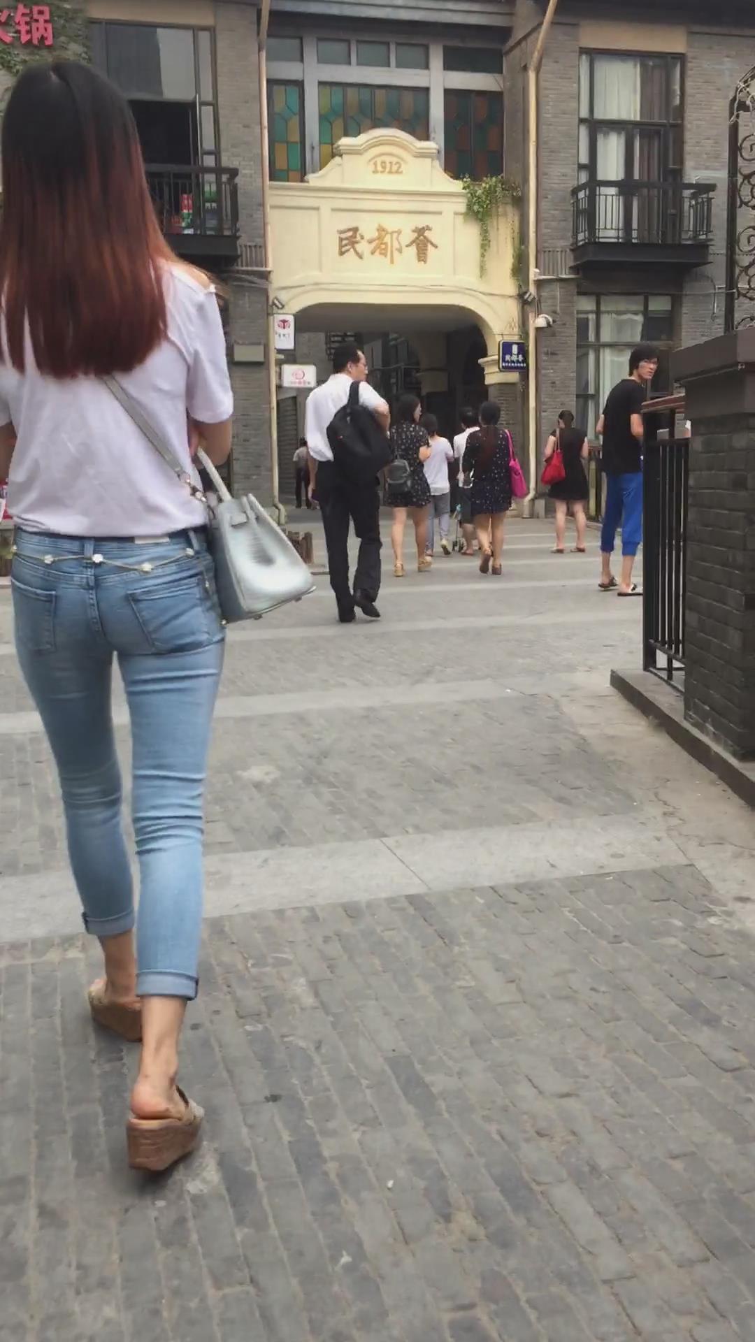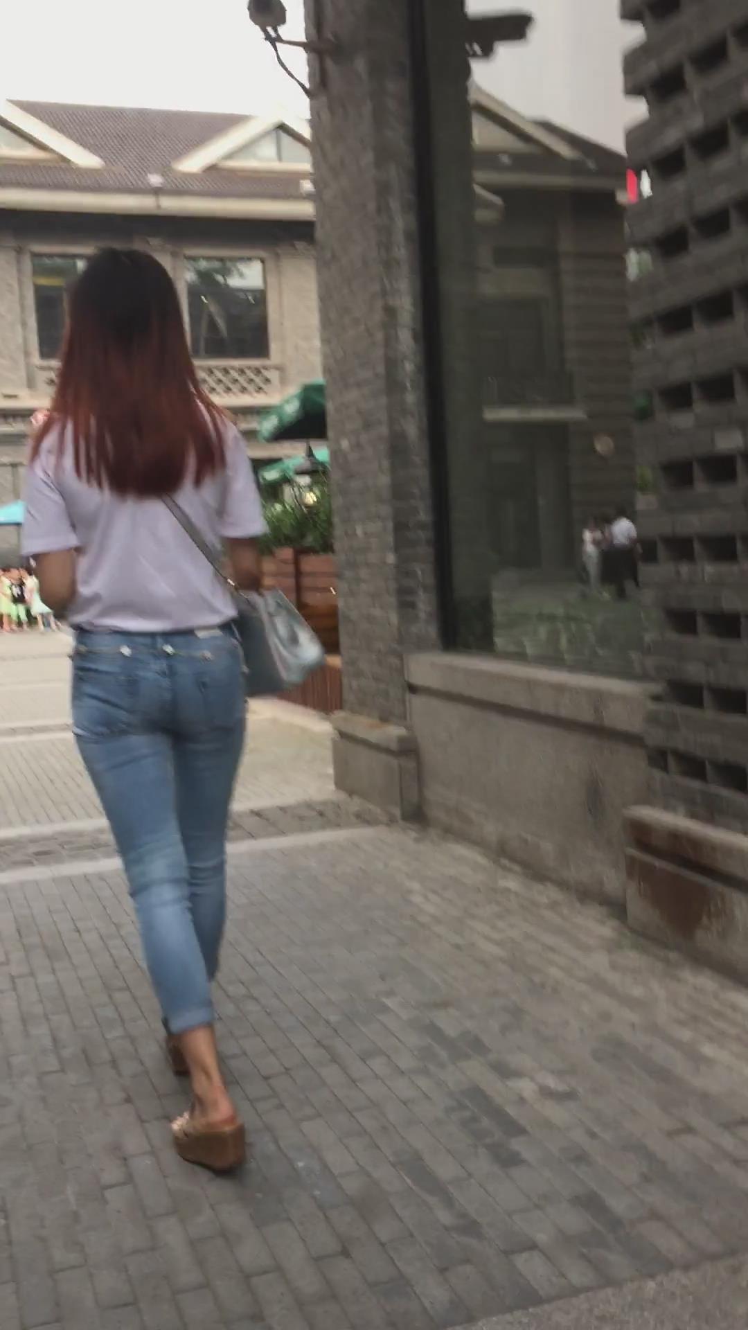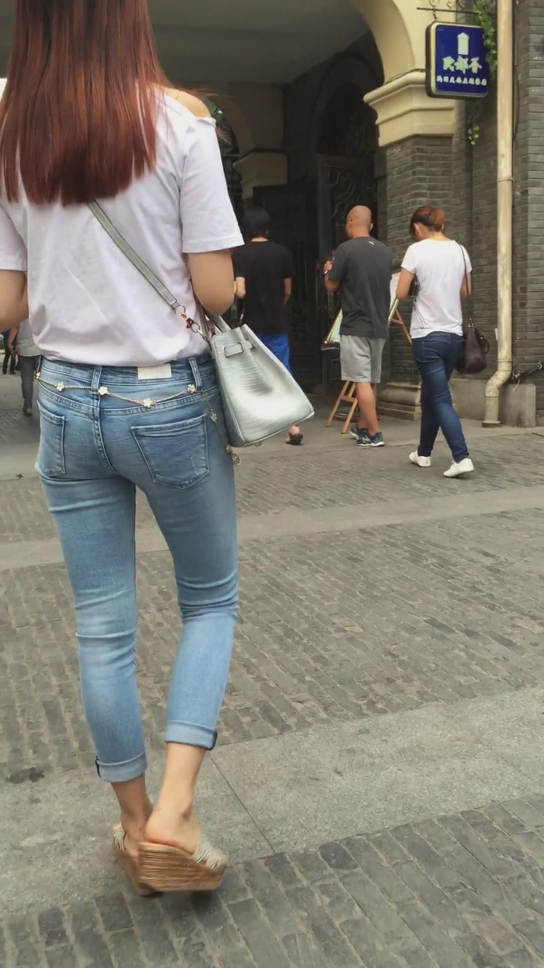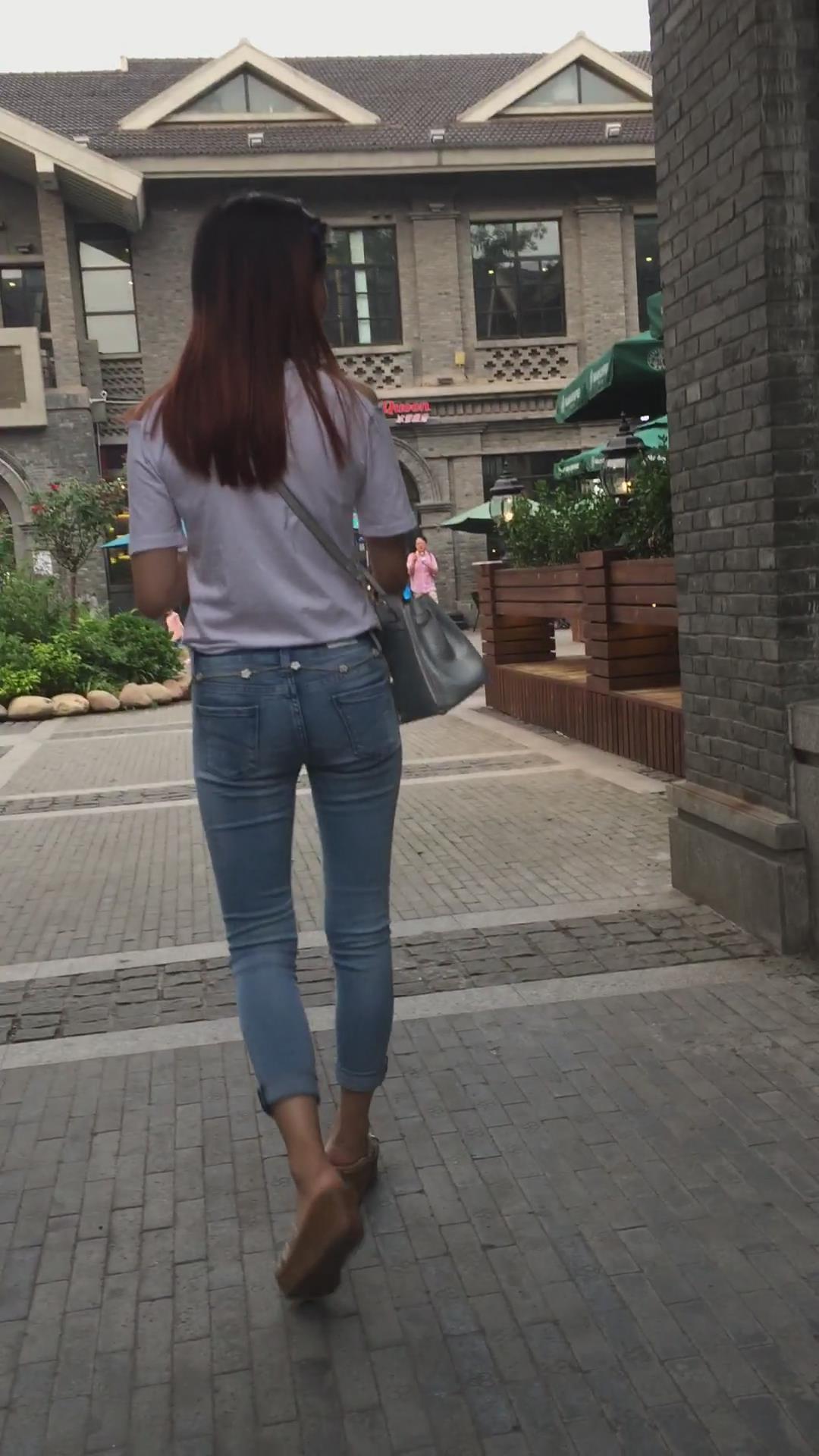 街拍超紧身蓝色牛仔裤宽臀小姐姐 编号5395
