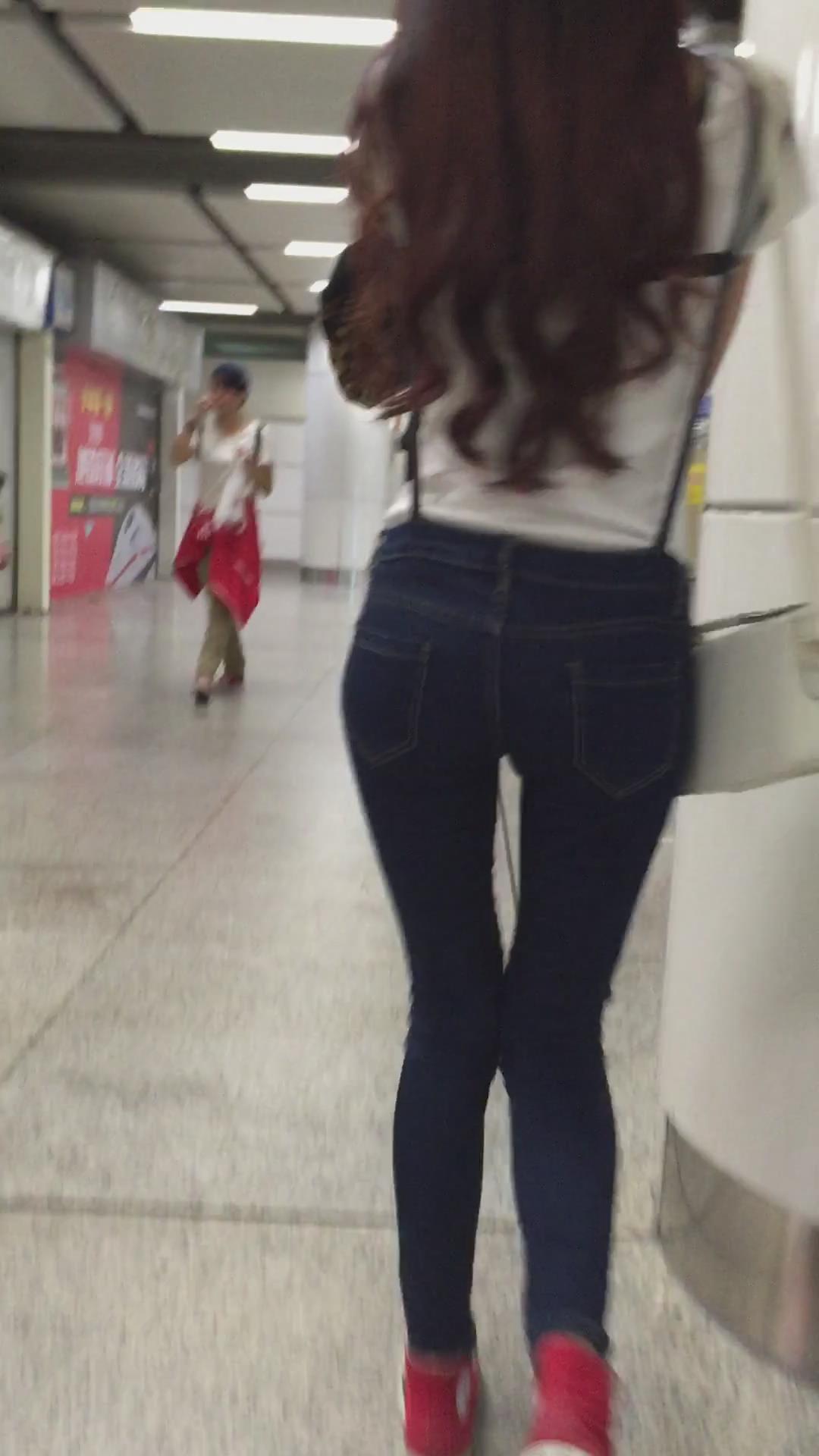 刚下地铁的紧身蓝色牛仔裤小姐姐 编号5402