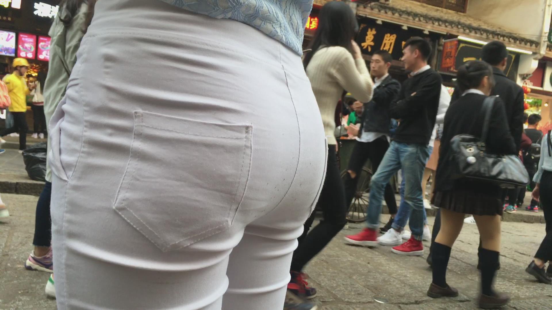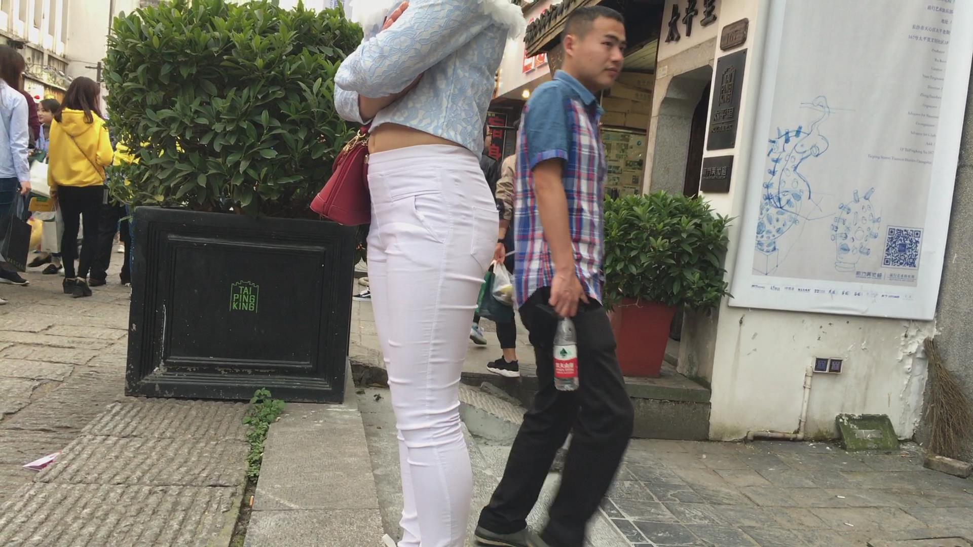 街拍紧身白裤翘臀女孩,紧到令人无法呼吸 编号5413