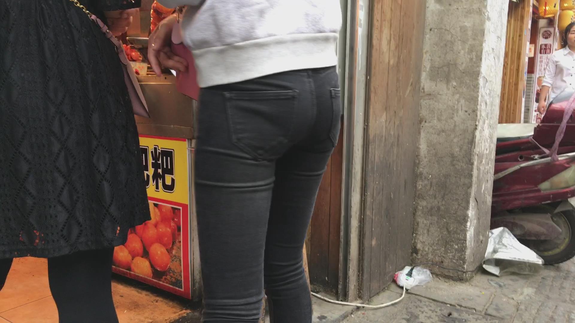 街拍紧身蜜桃臀美眉,内内印痕明显 编号5424