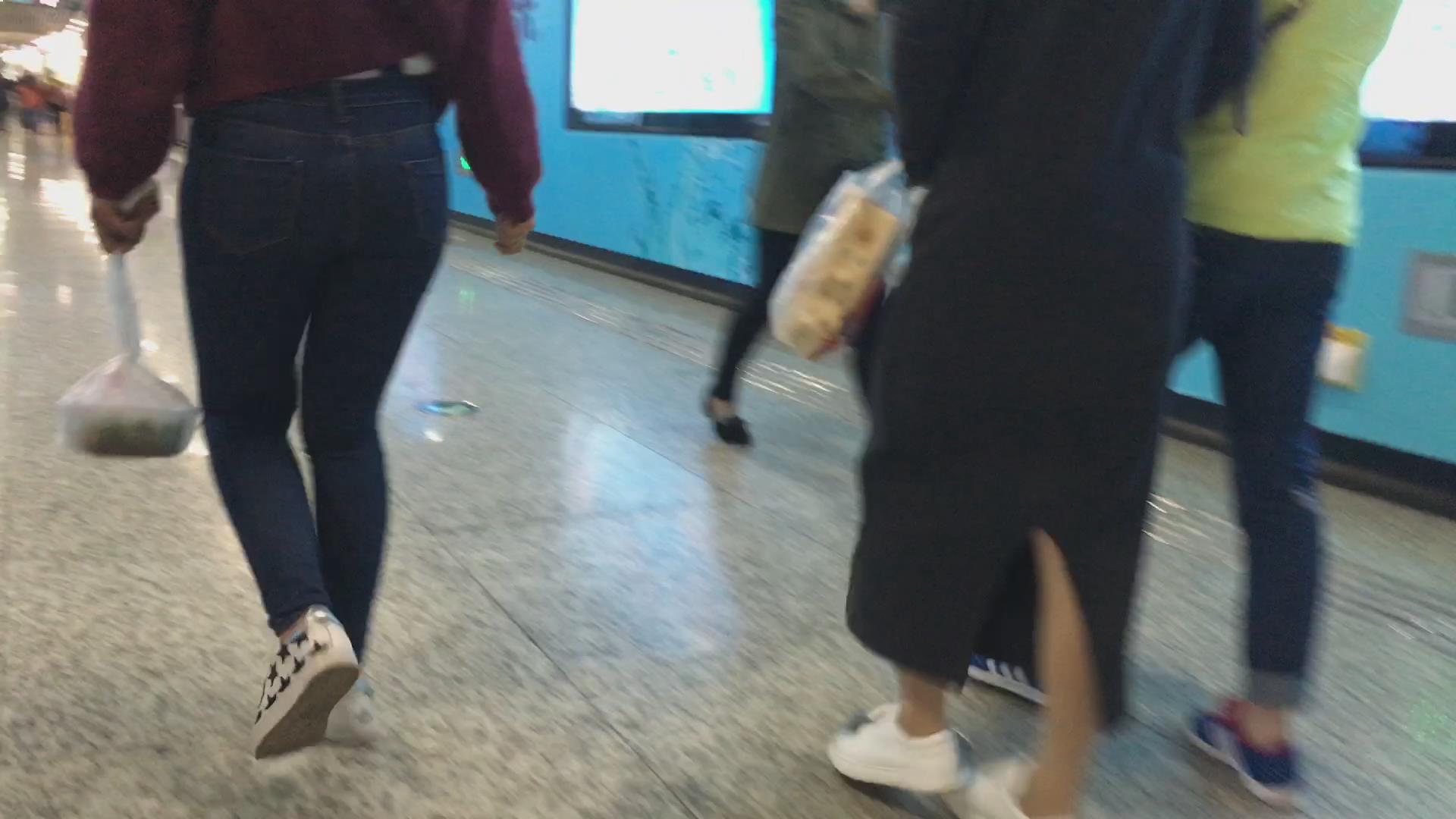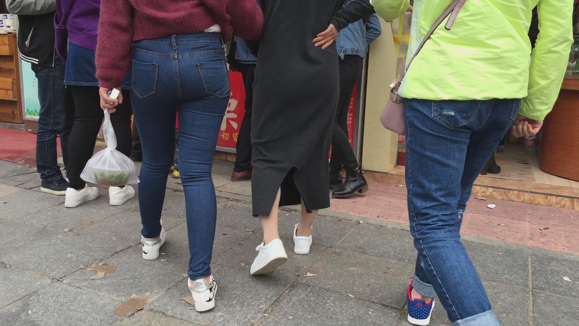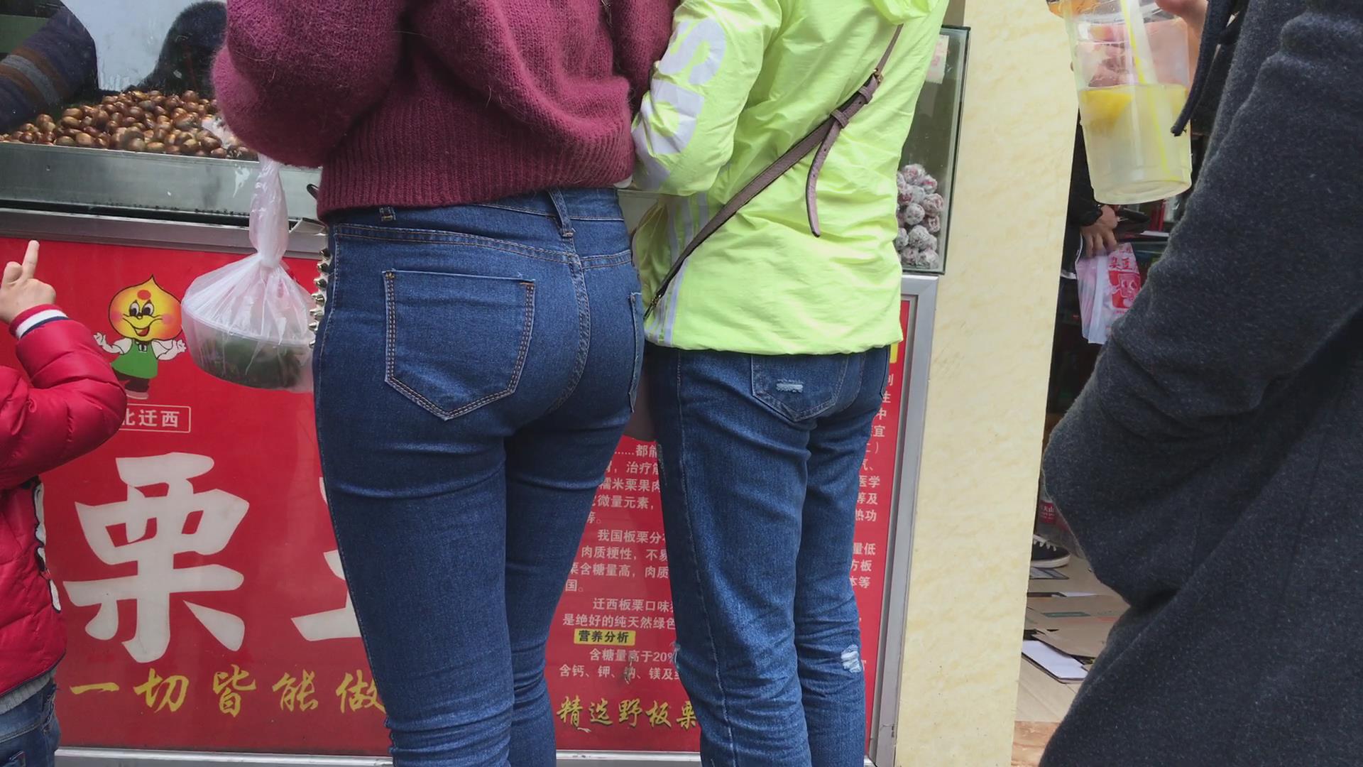 街拍极品美臀紧身蓝色牛仔裤美眉 编号5427