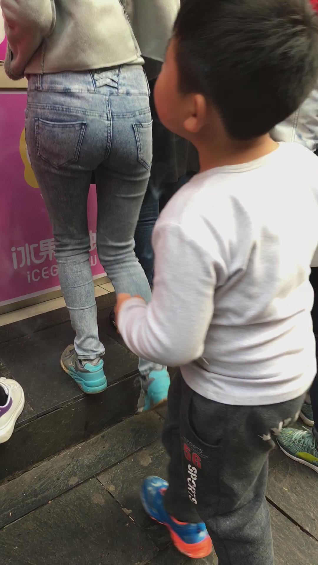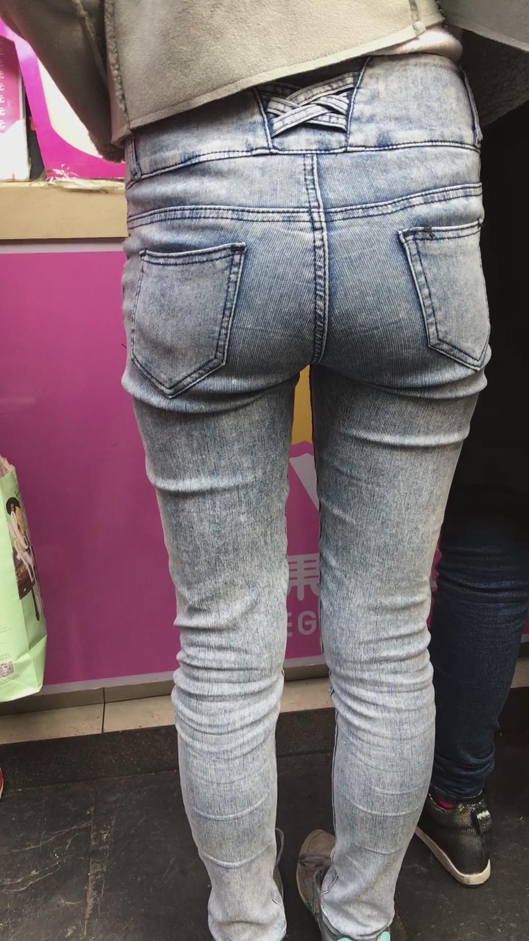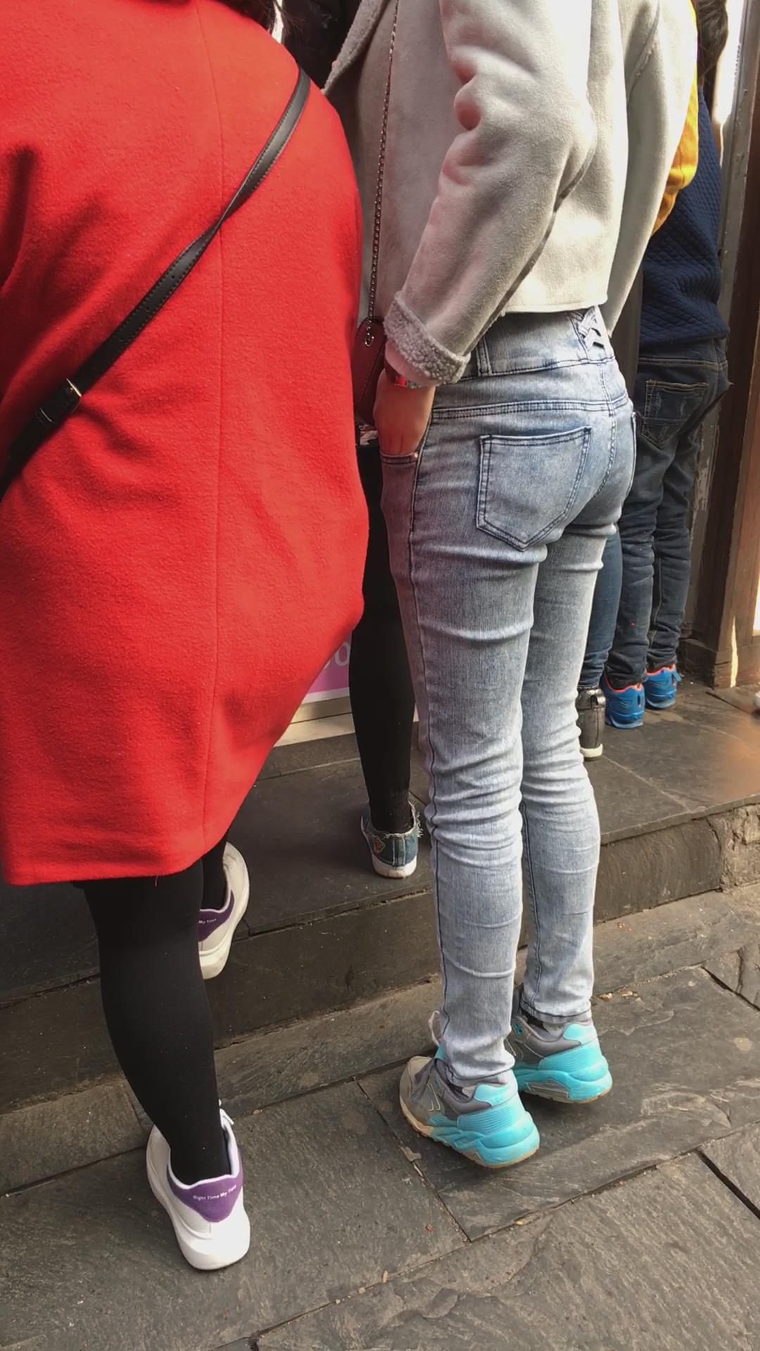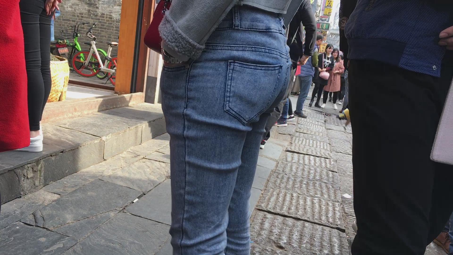 街拍紧身牛仔裤宽臀妹纸 编号5433