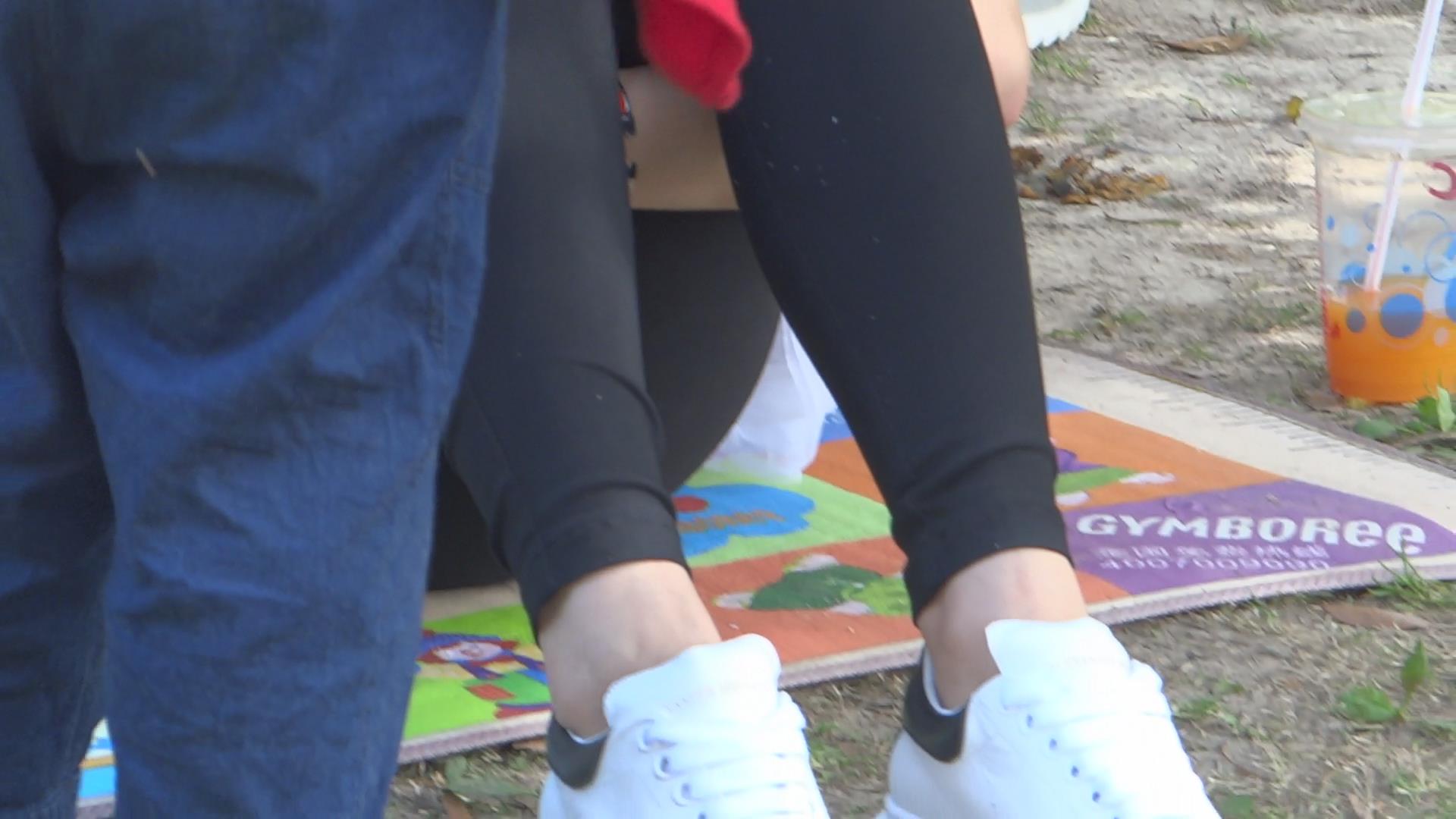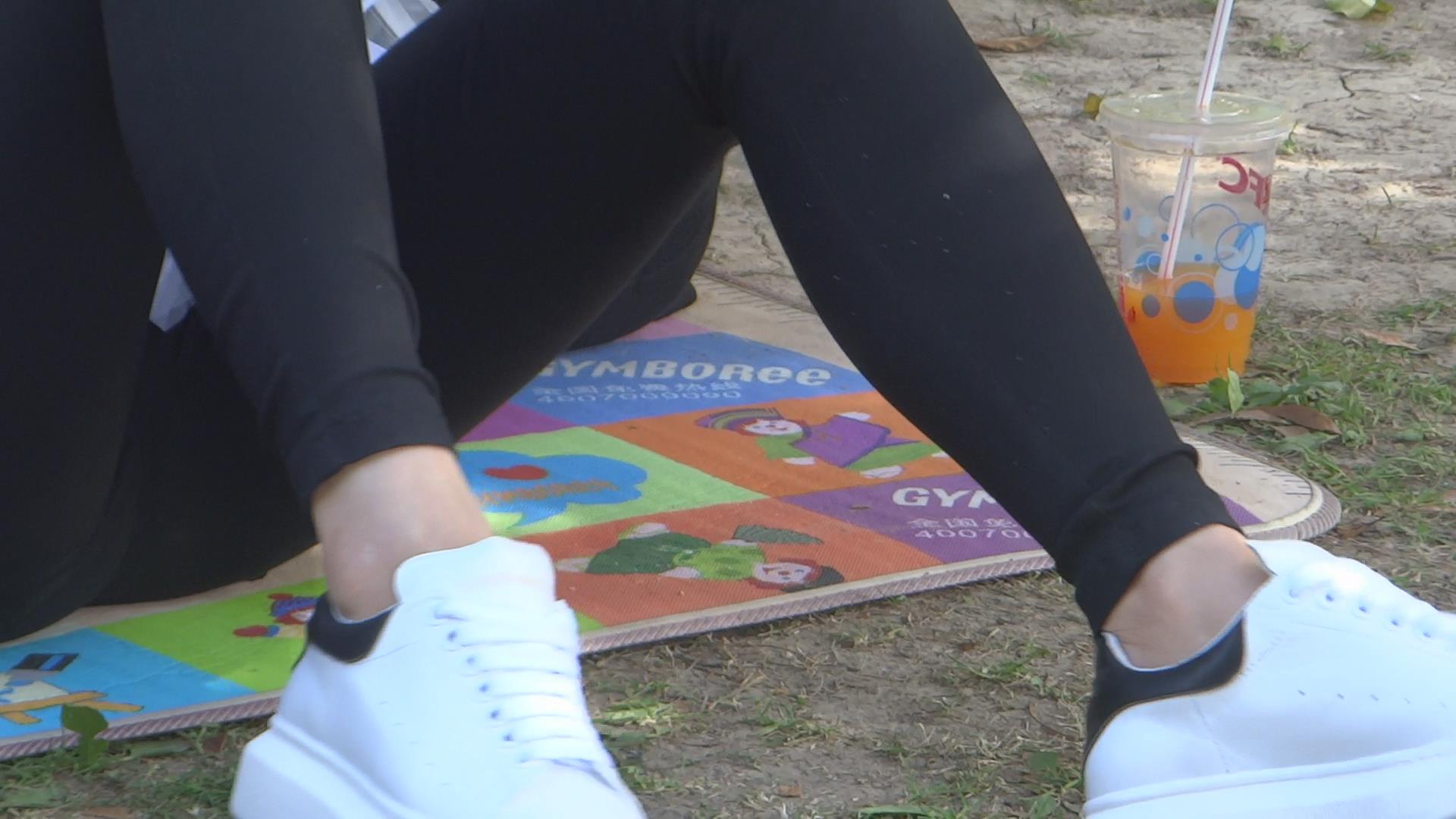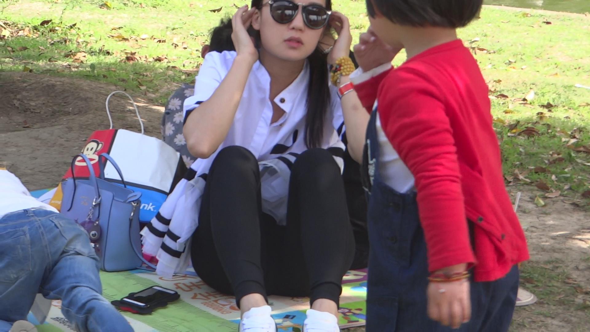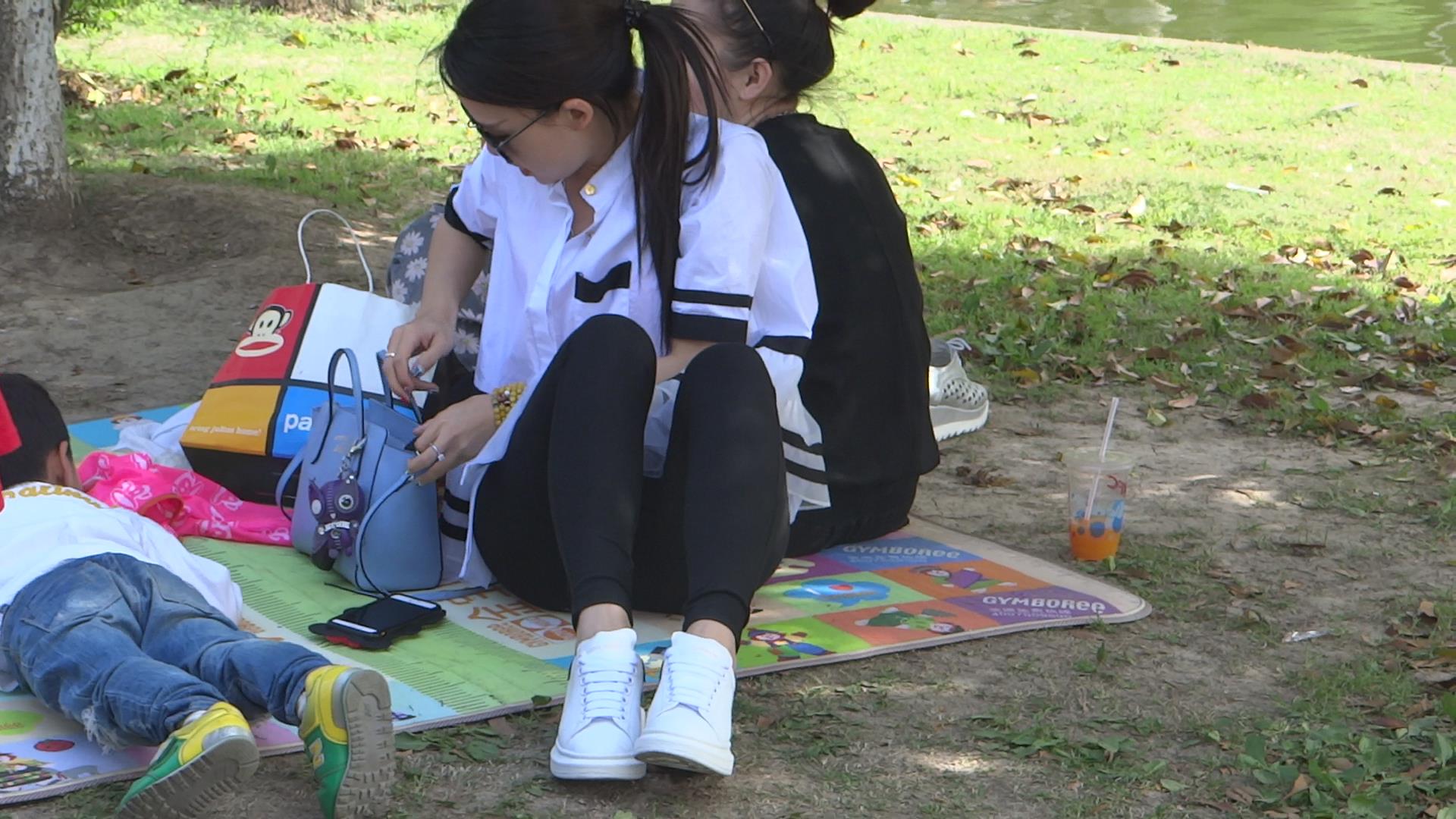 公园草地上高颜值年轻少妇把玩着自己的玉足 编号5447