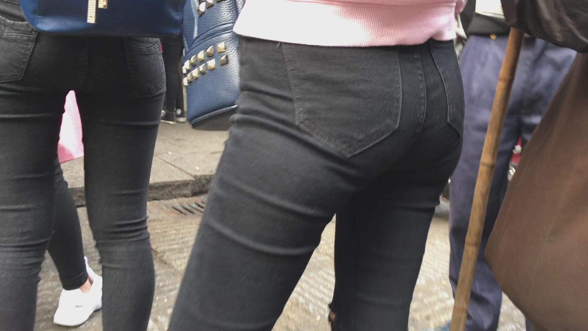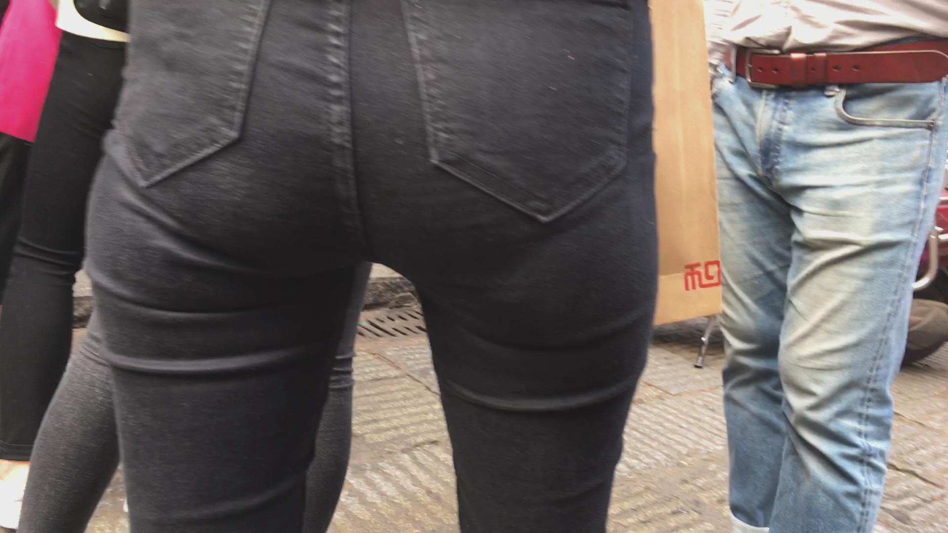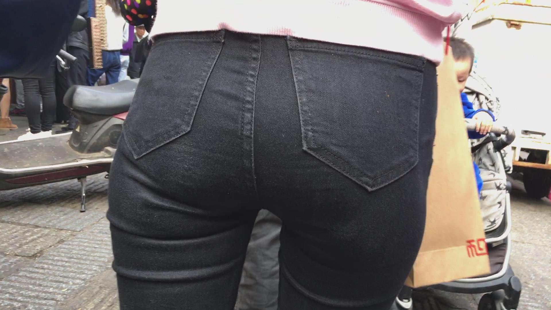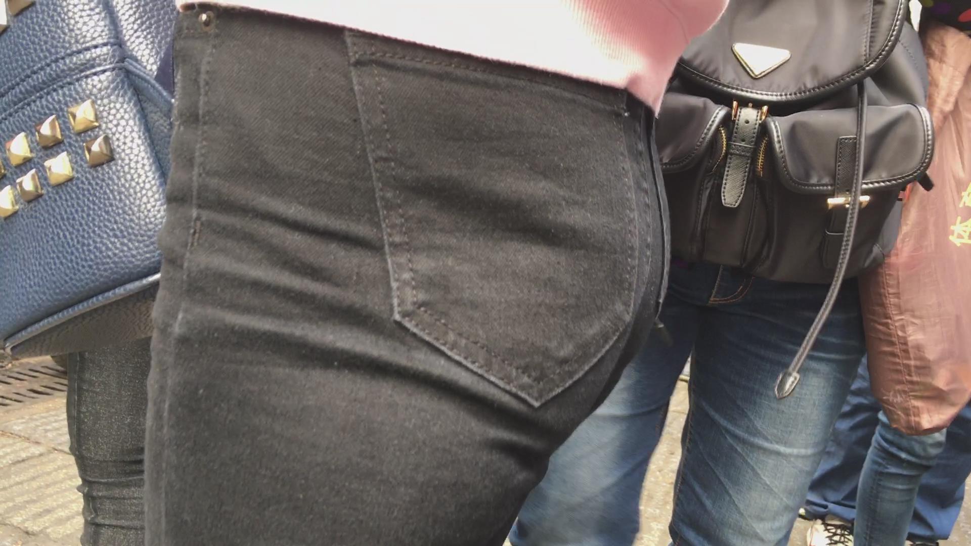 街拍紧俏圆臀黑色牛仔裤妹子 编号5475