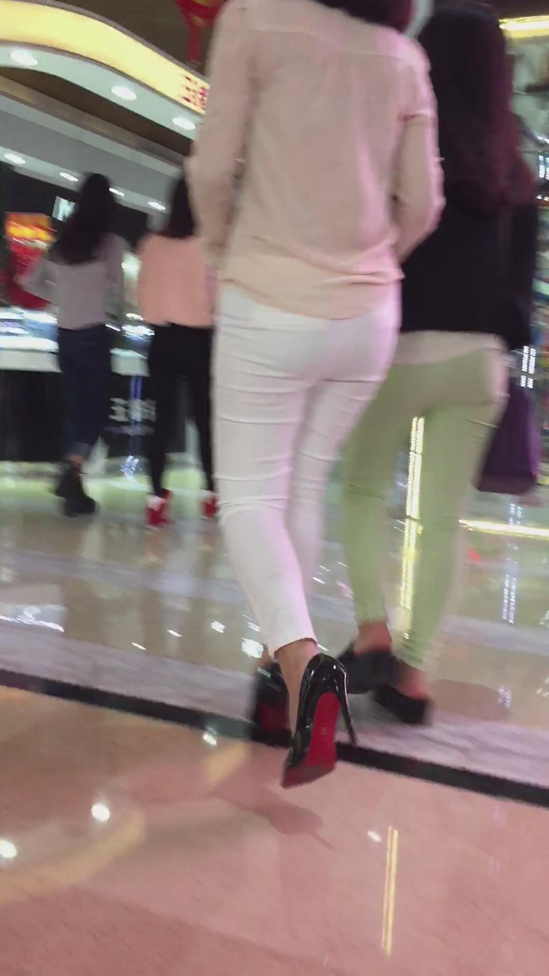 跟拍高跟鞋丰臀紧身白裤少妇挽着姐妹的手 编号5497