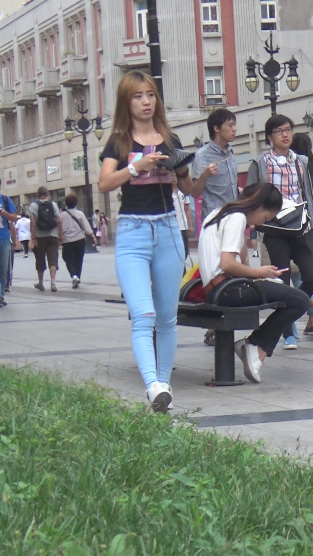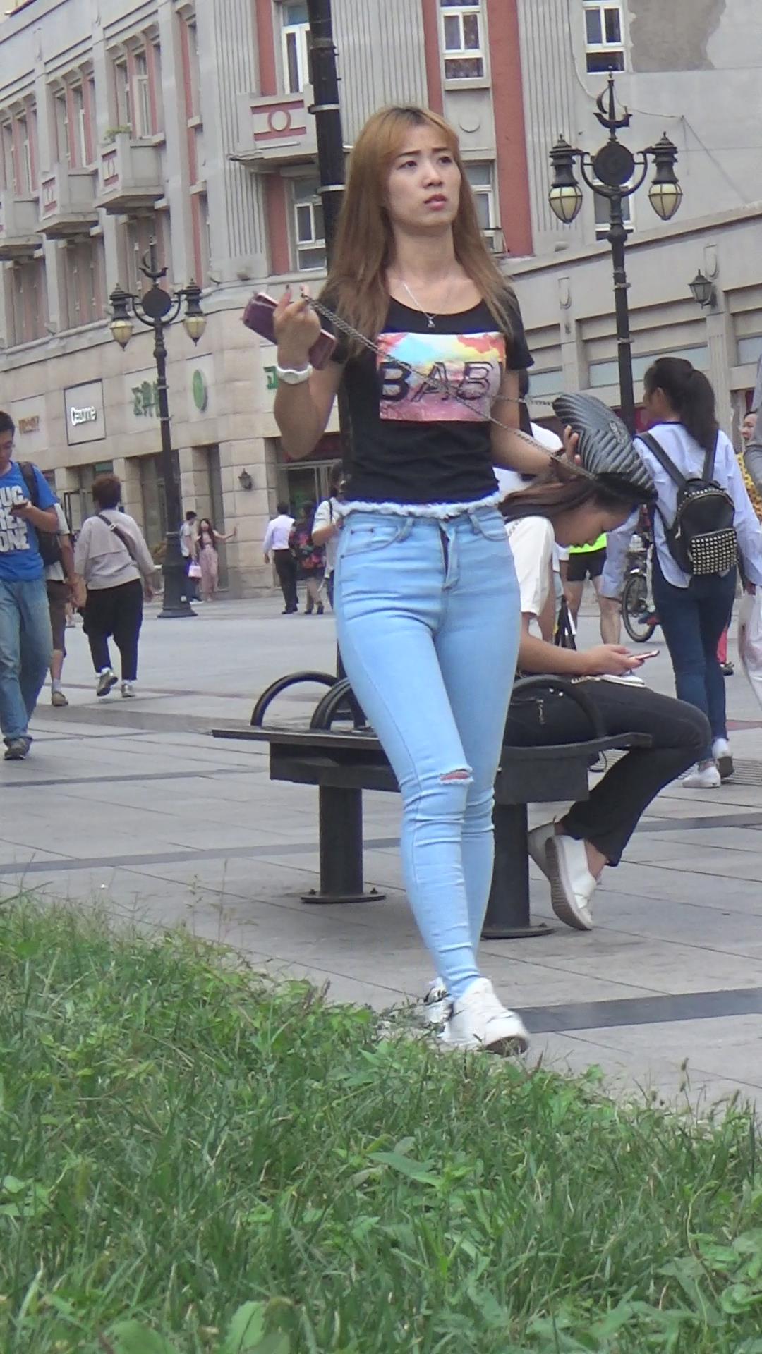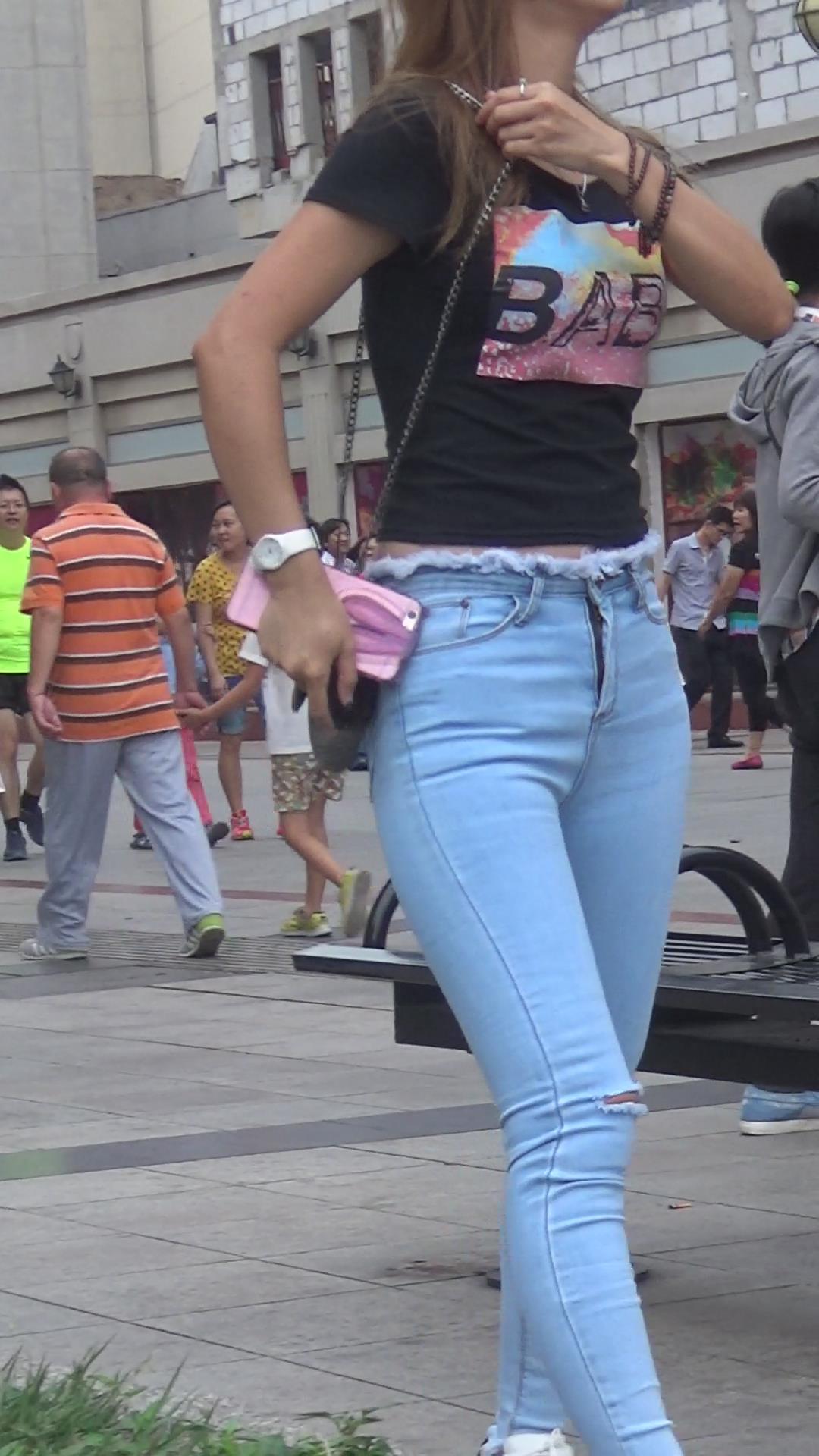 街拍高颜值丰满苹果臀紧身蓝牛美女,太紧致了 编号5511