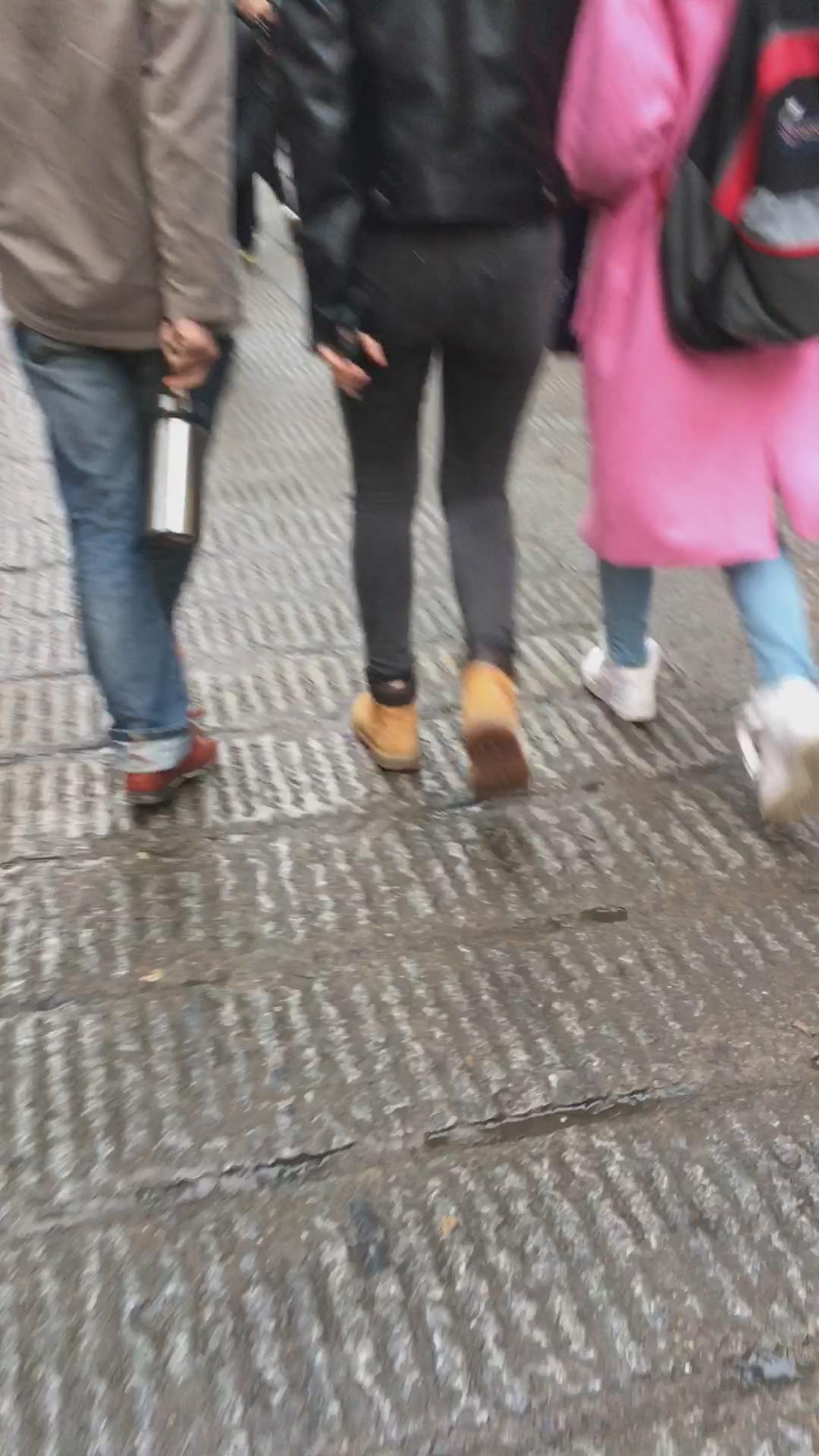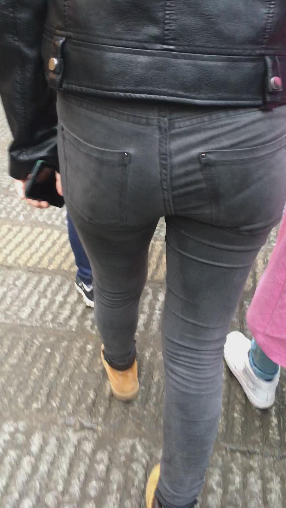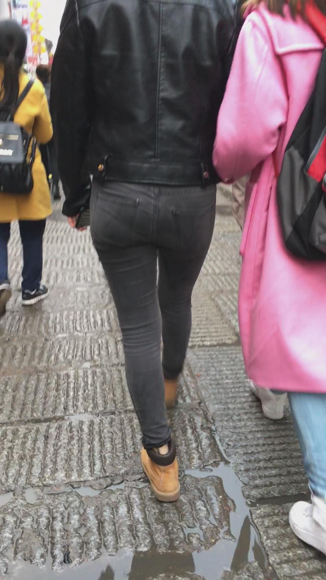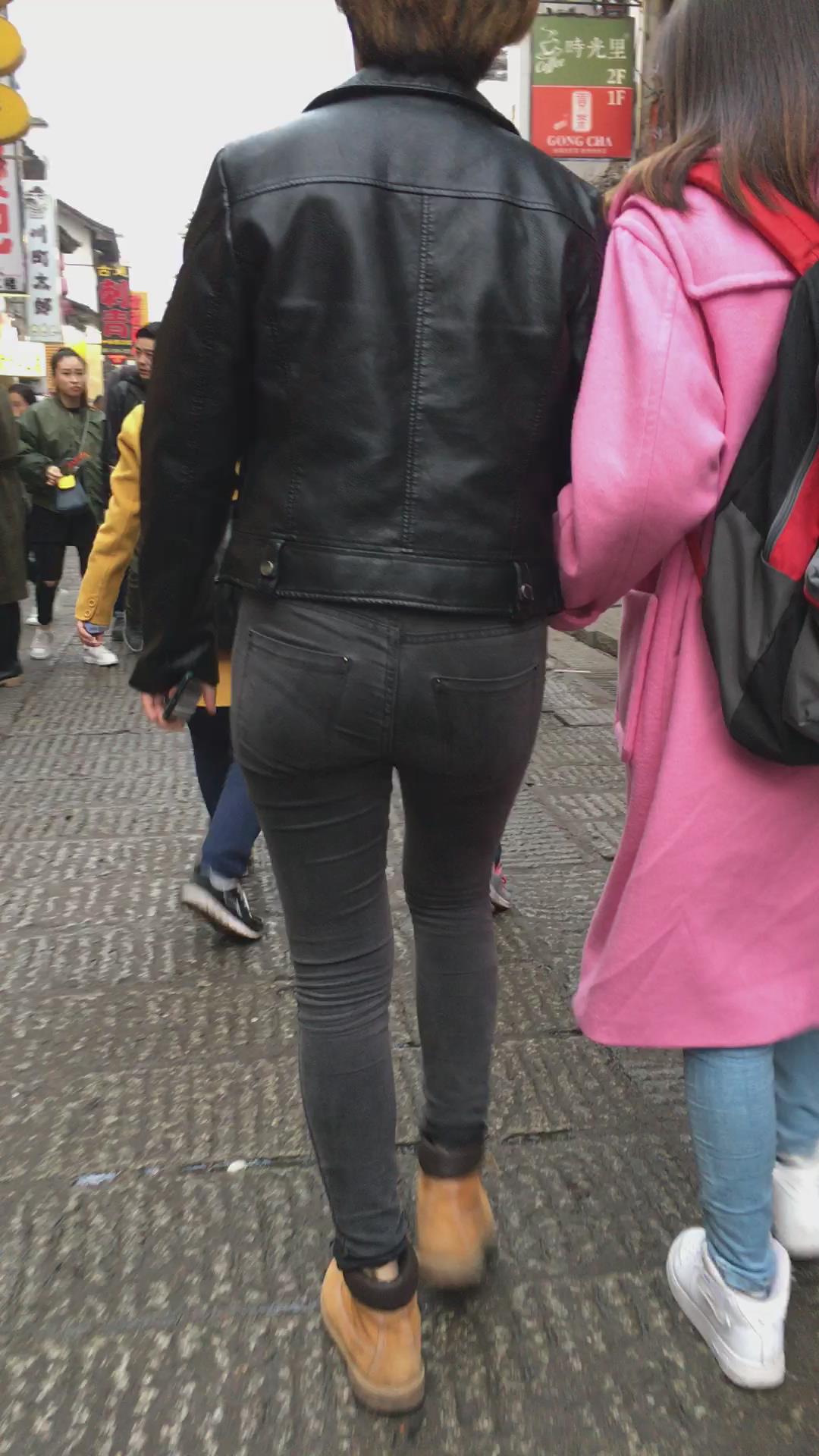 跟拍超紧绷灰色牛仔裤苹果臀美女,闺蜜也不错哦 编号5519