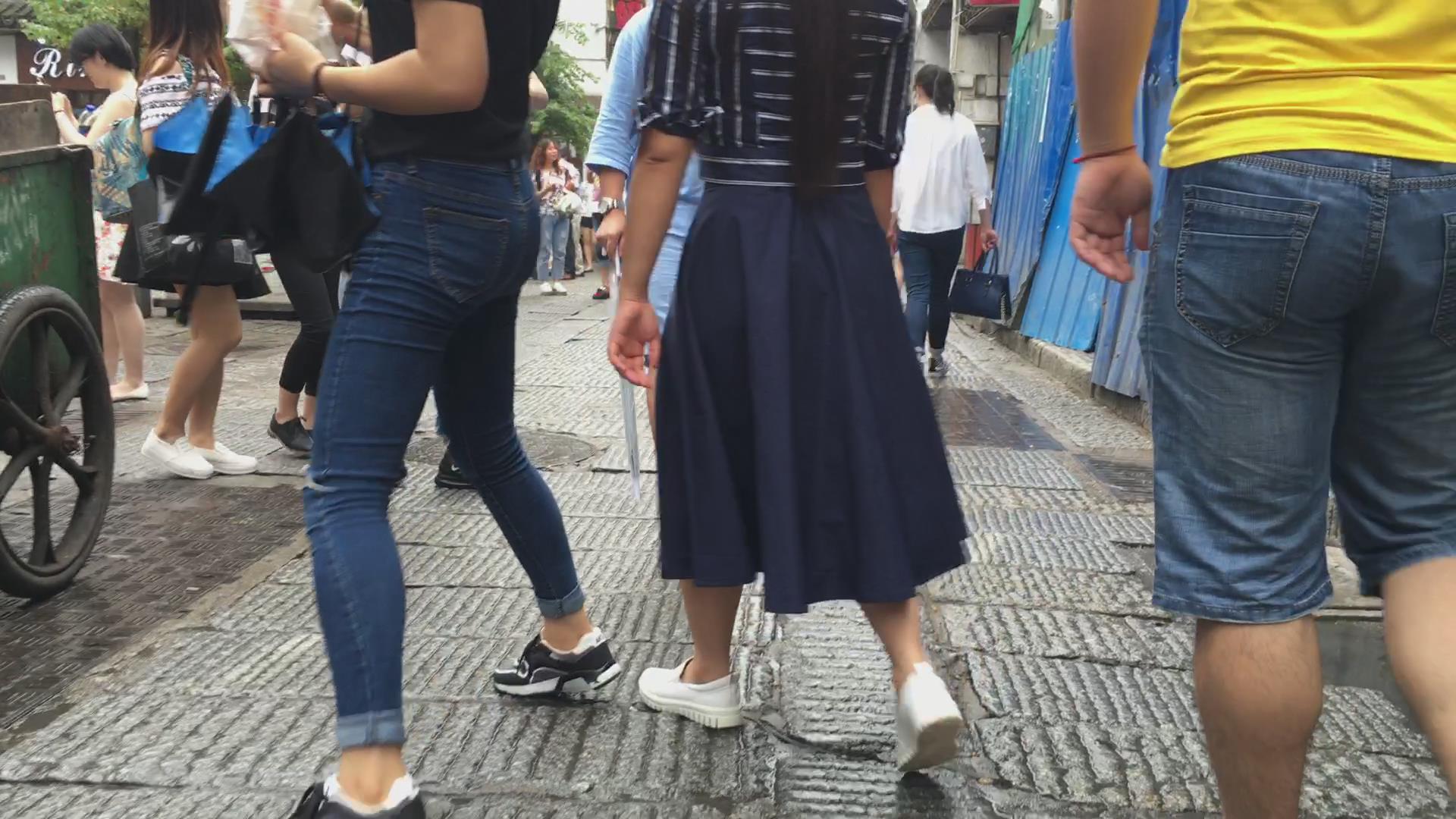 跟拍超紧绷蓝色牛仔裤妹子,紧到让人无法呼吸 编号5520