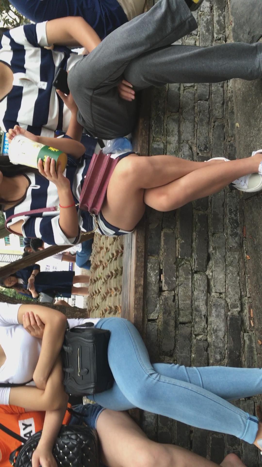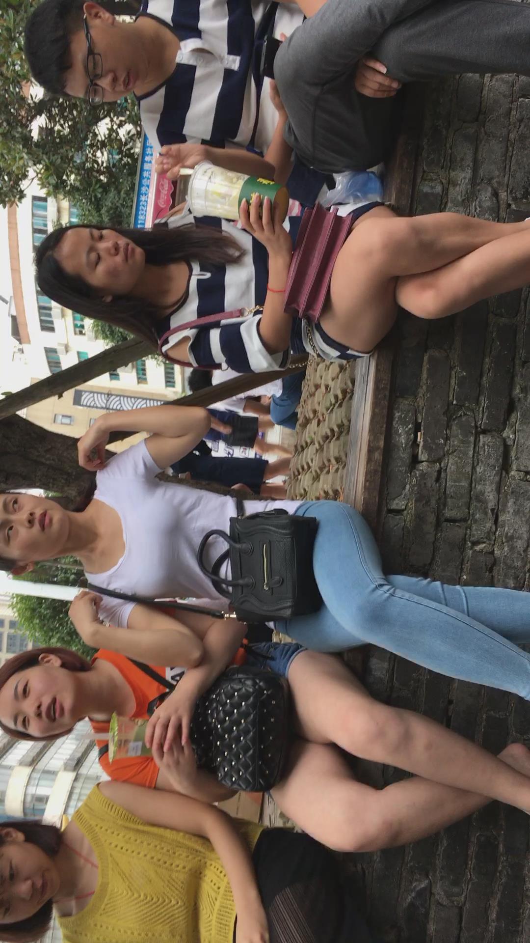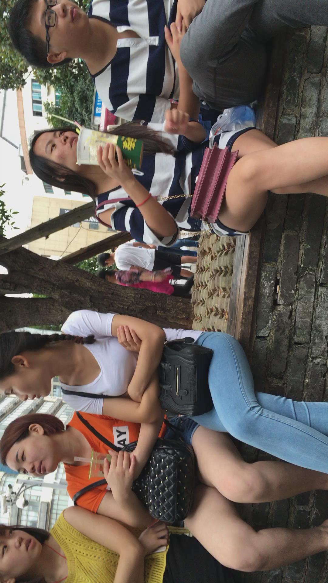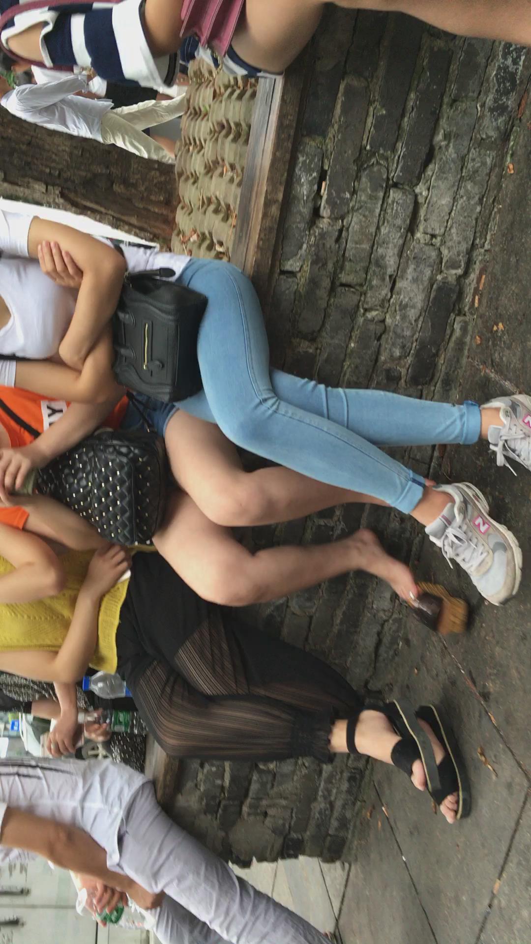 紧身蓝牛美女跟好友树下聊天 编号5525