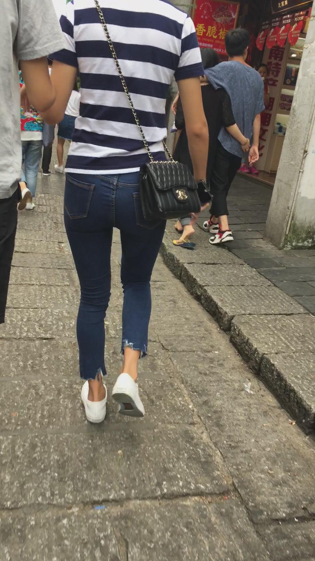 极品超紧身蓝色牛仔裤青春气质小美女 编号5527