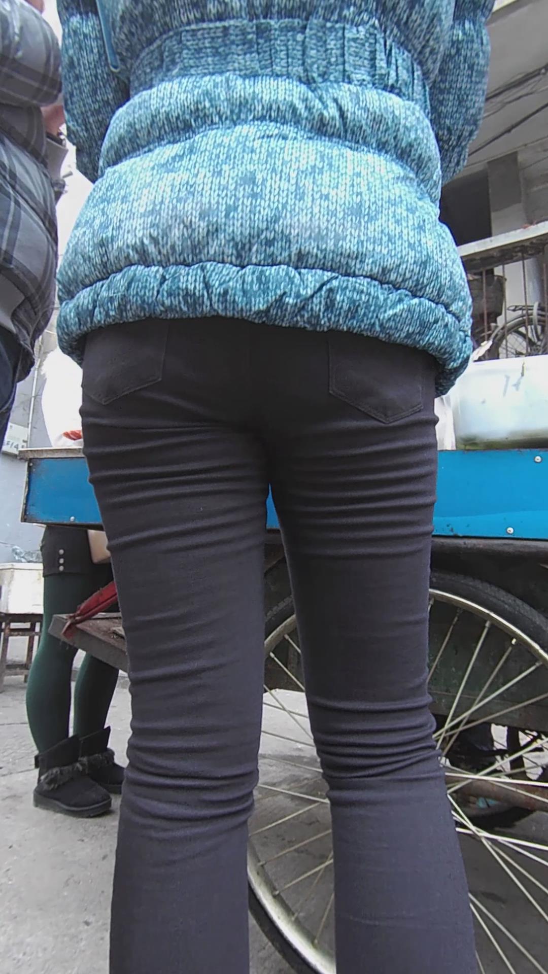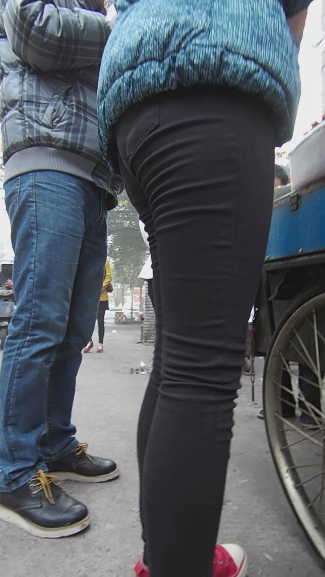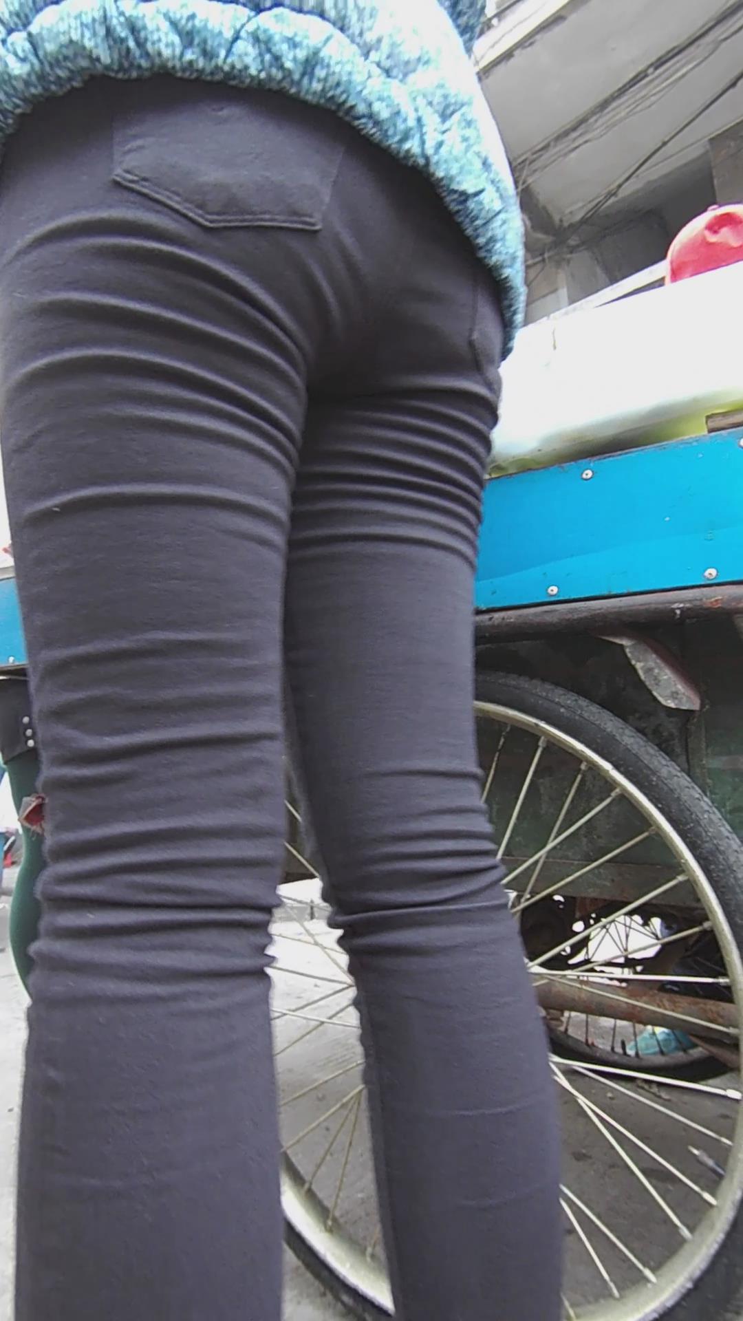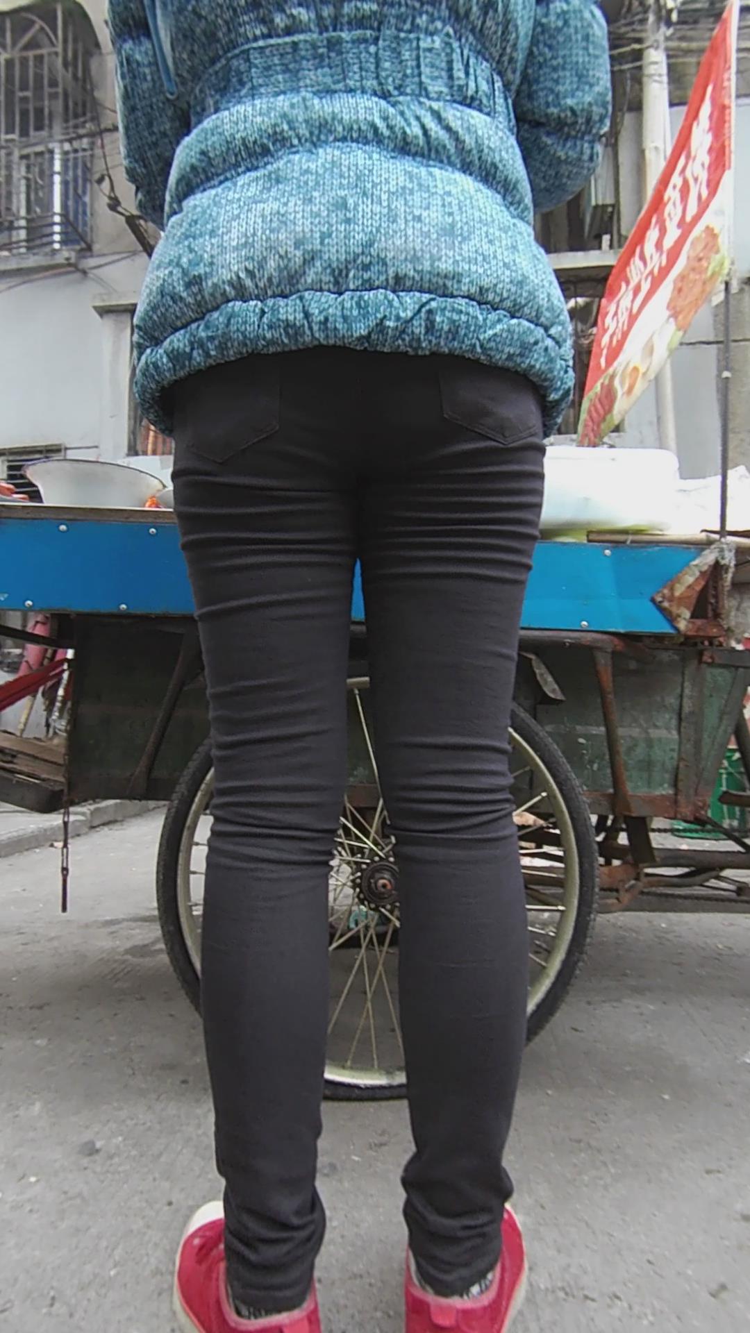 黑色紧身裤美腿妹子买小吃 编号5532