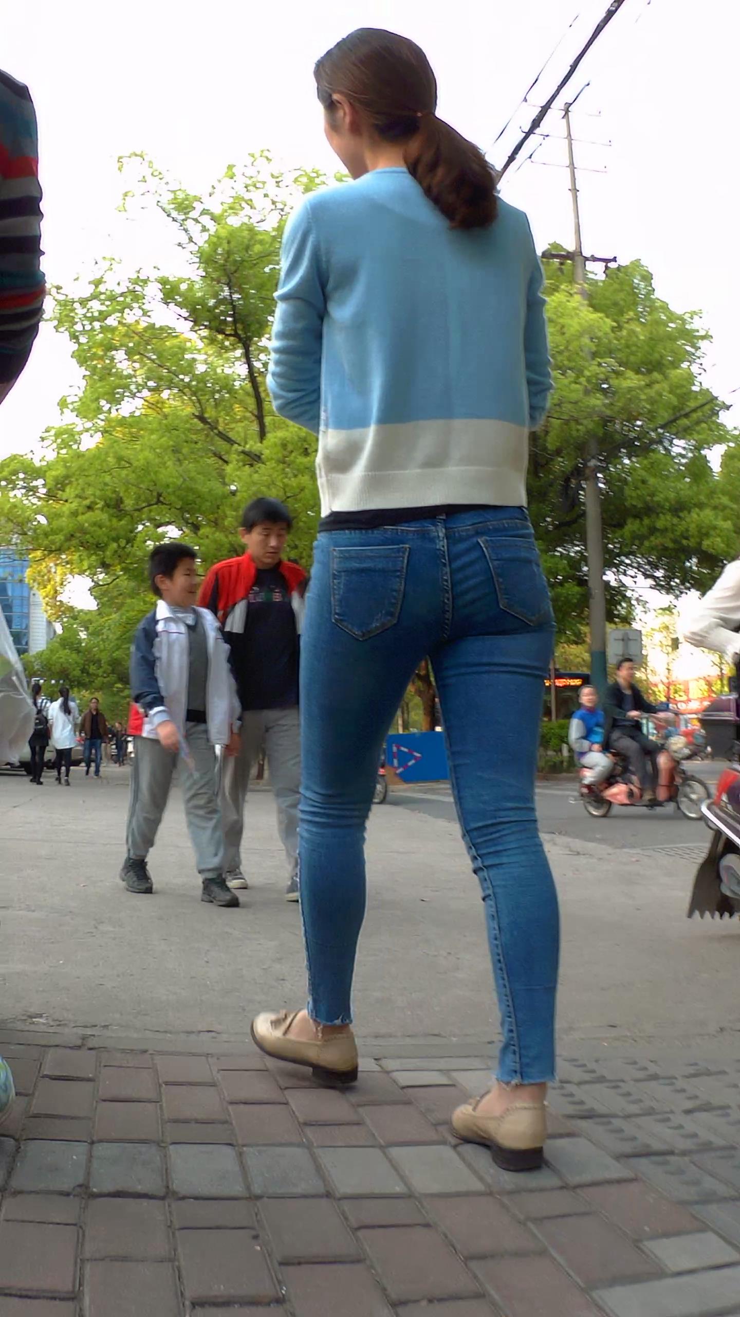 跟拍宽臀紧身蓝牛美少妇跟家婆出来溜娃完整版 编号5535