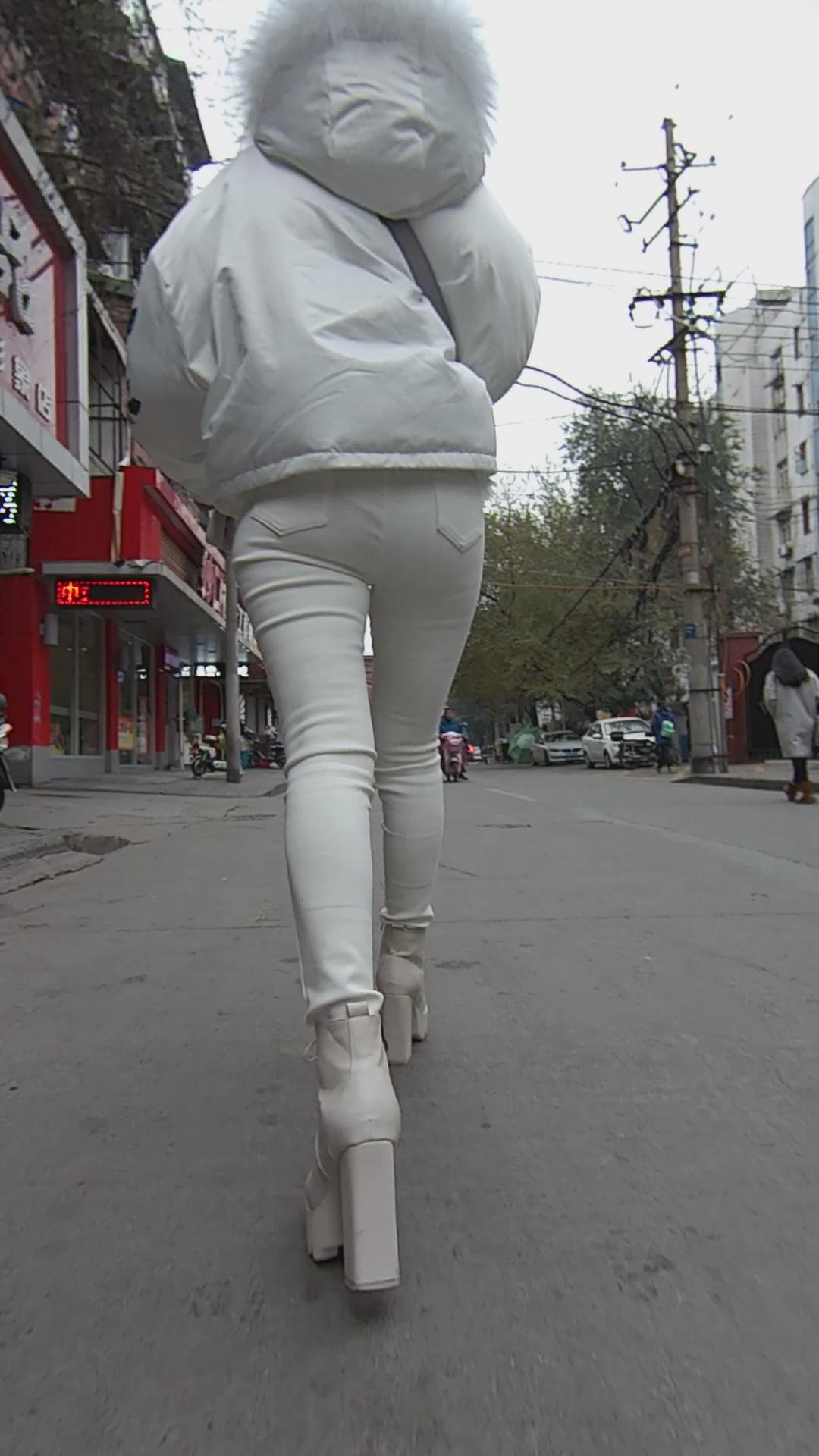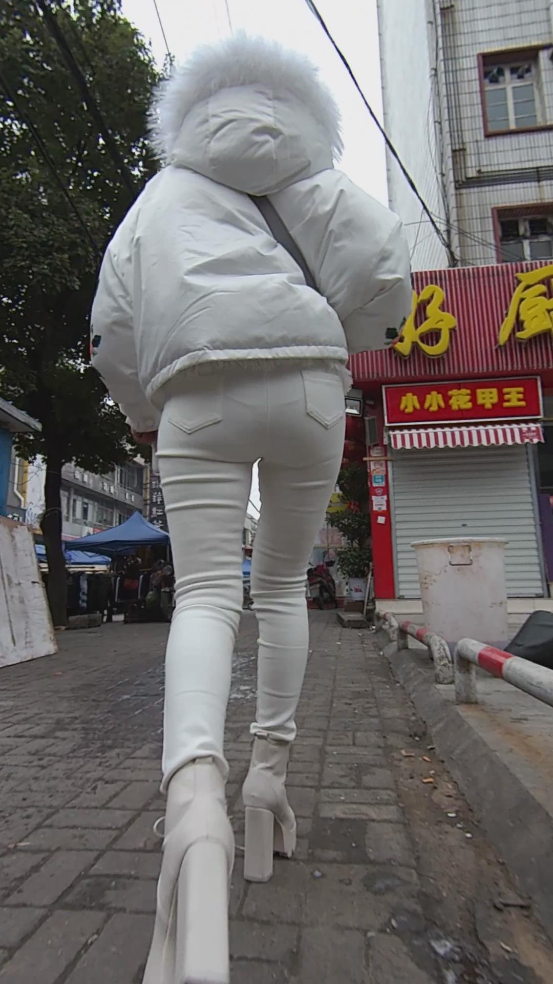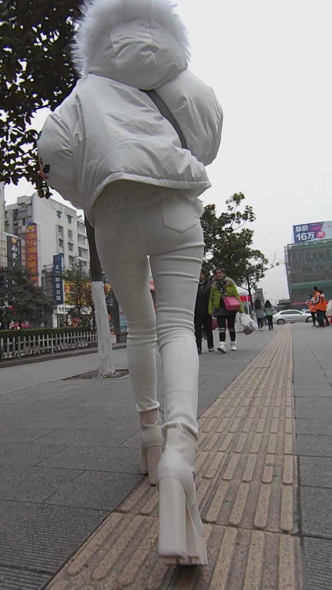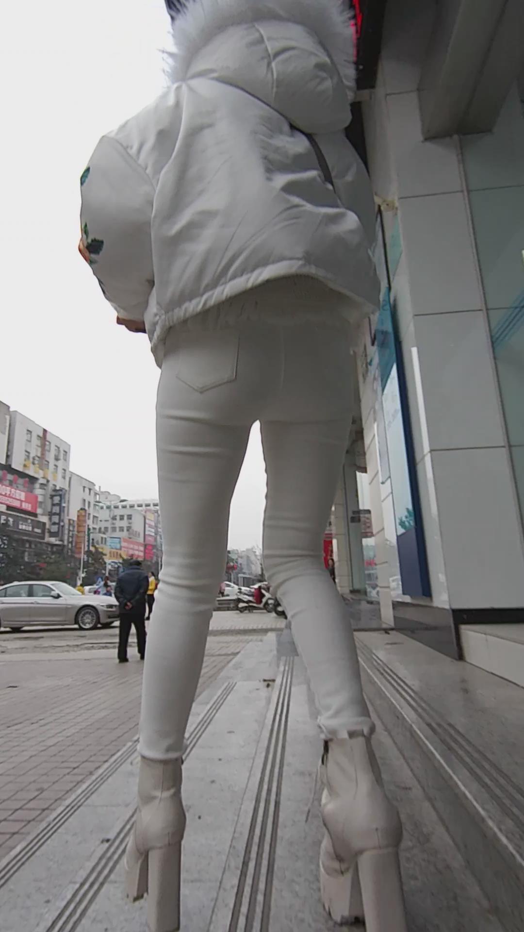 街拍紧身白裤美眉 编号5543