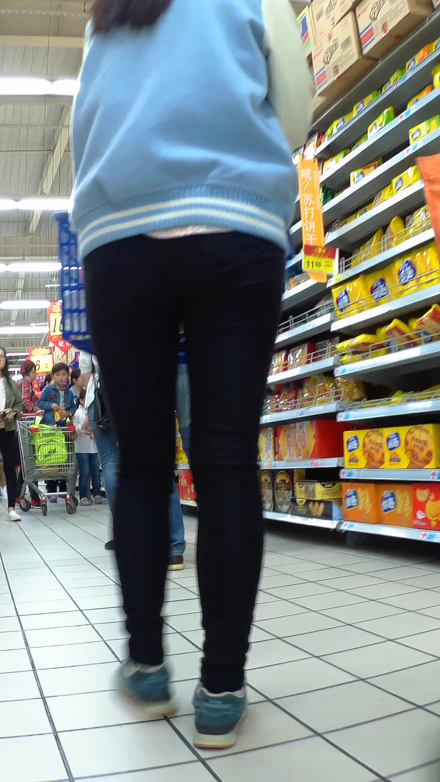黑色紧身裤清纯学生妹逛超市 编号5575