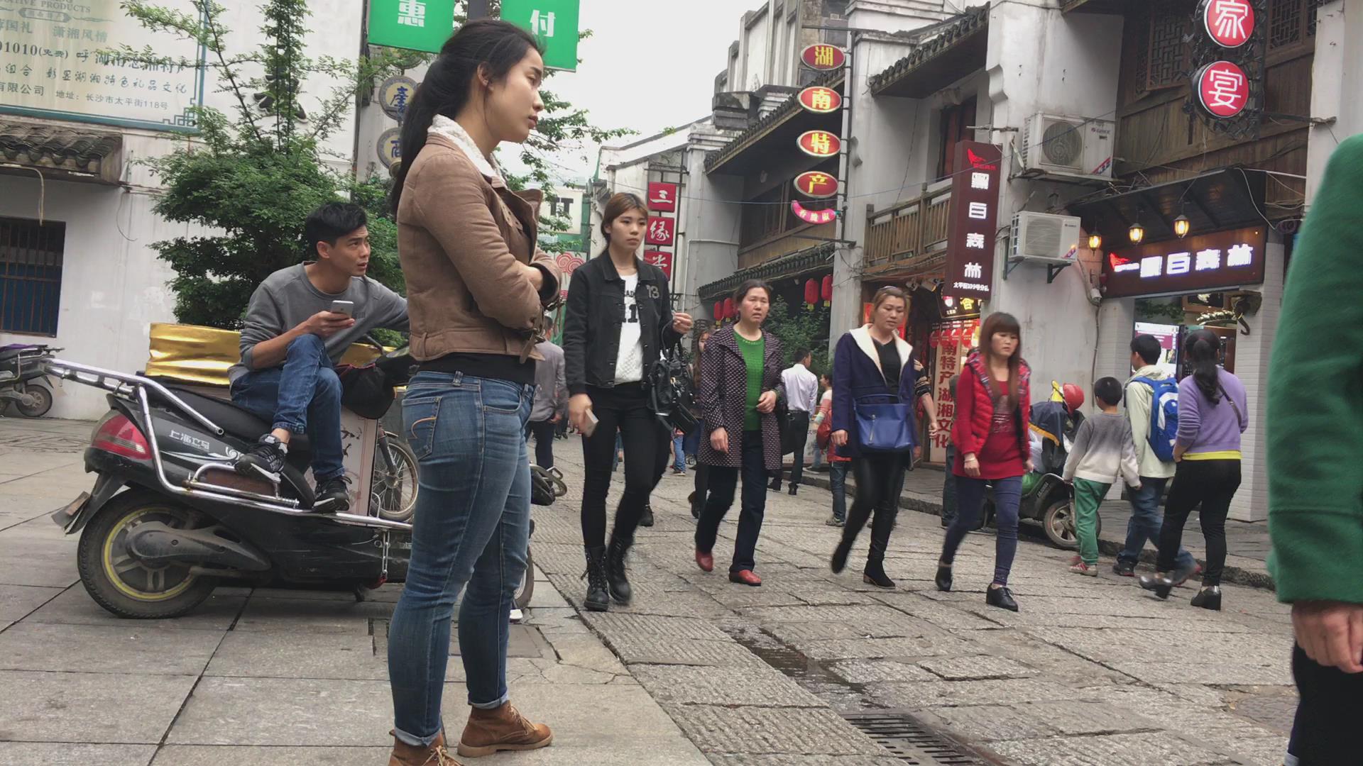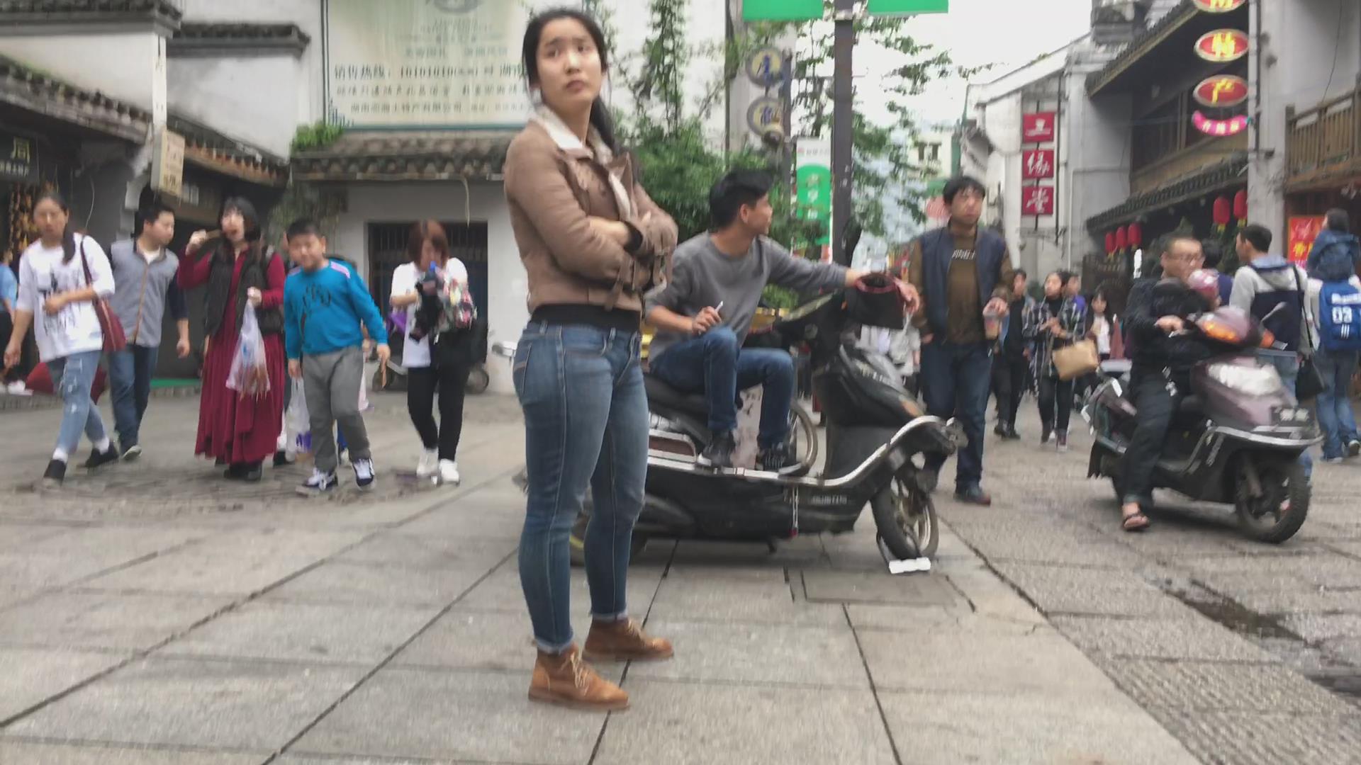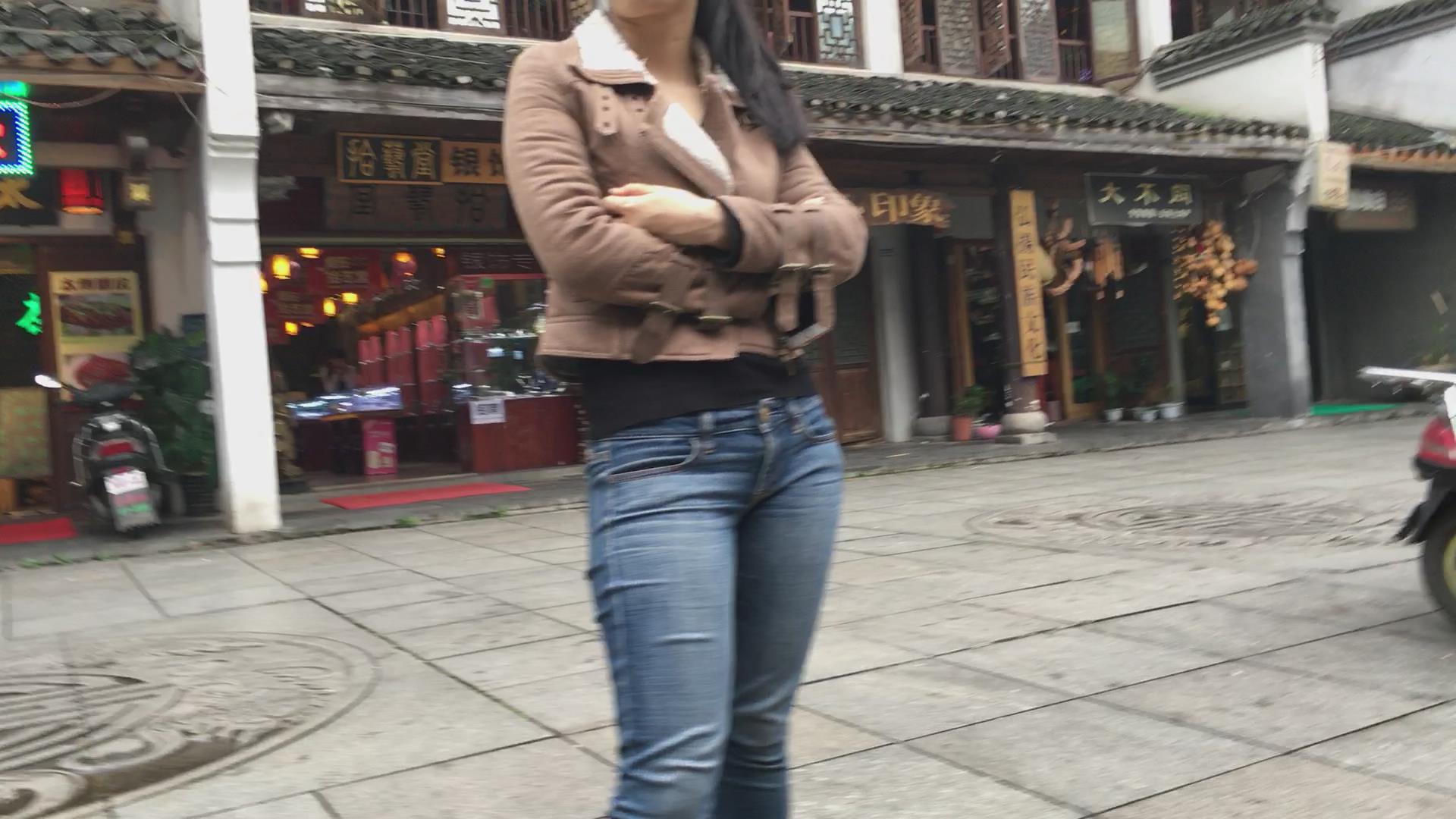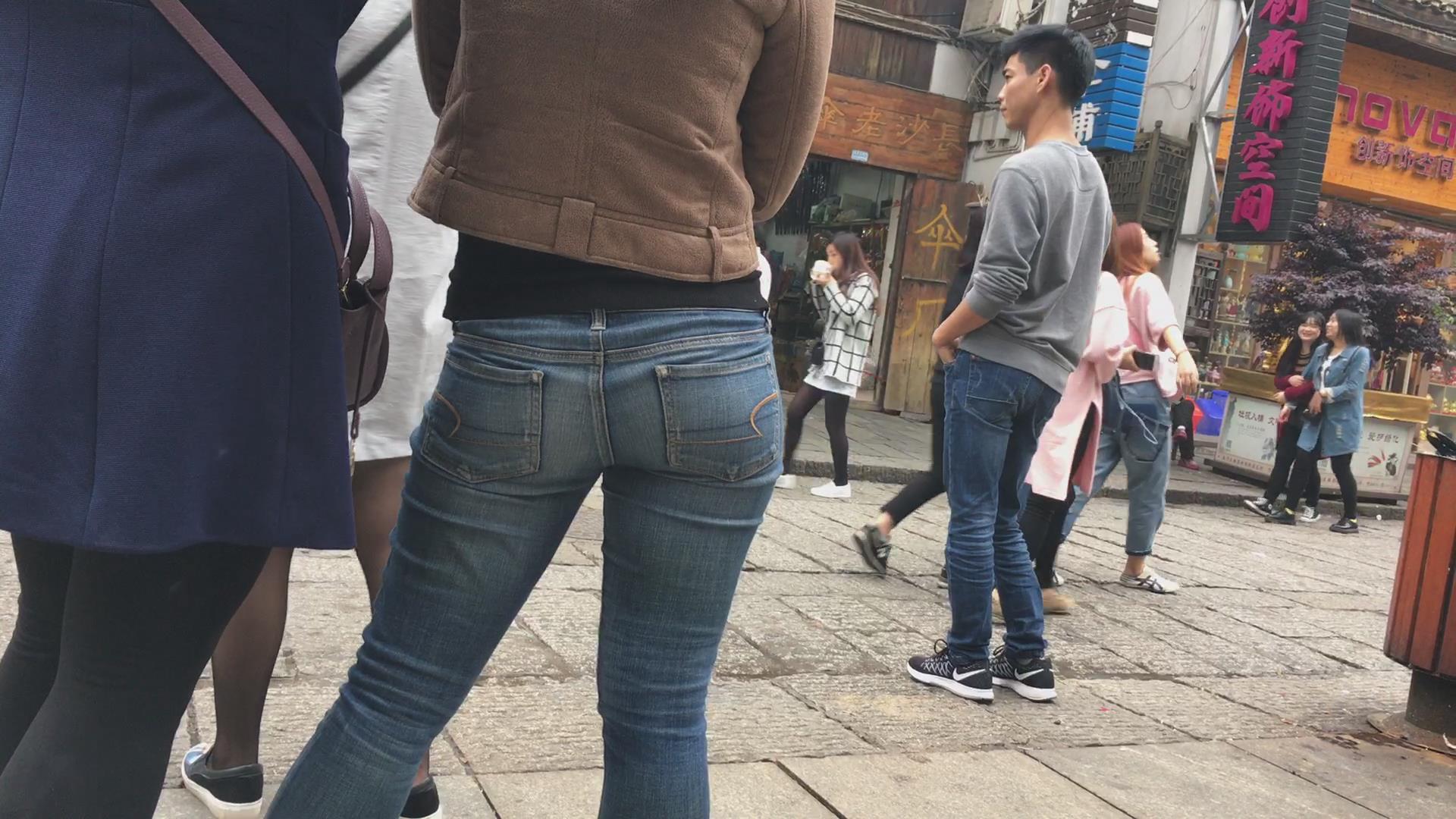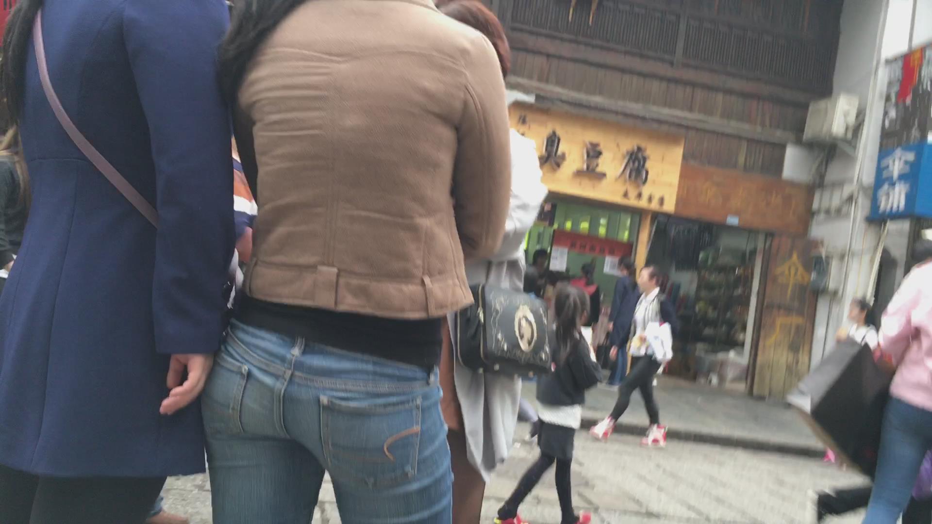 街拍饱满丰臀紧身牛仔裤妹子 编号5579