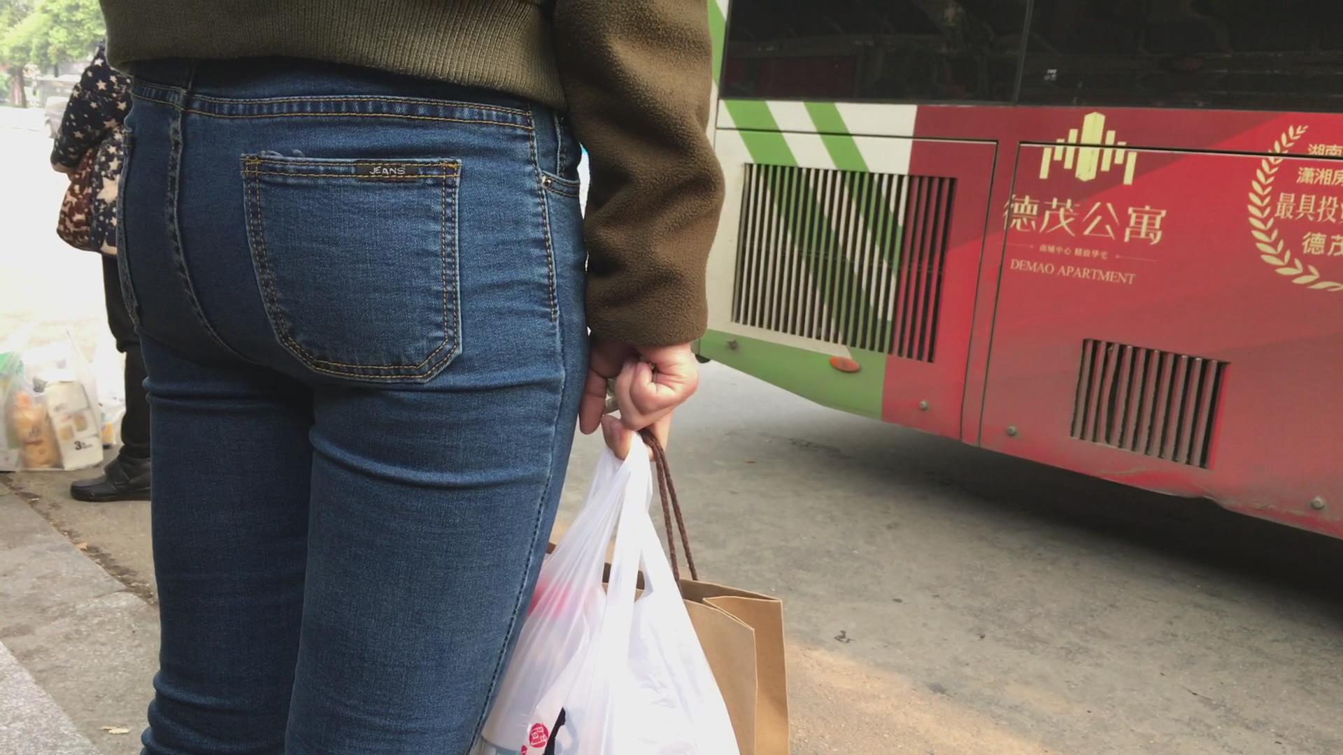 等公交的紧身蓝牛美眉 编号5610