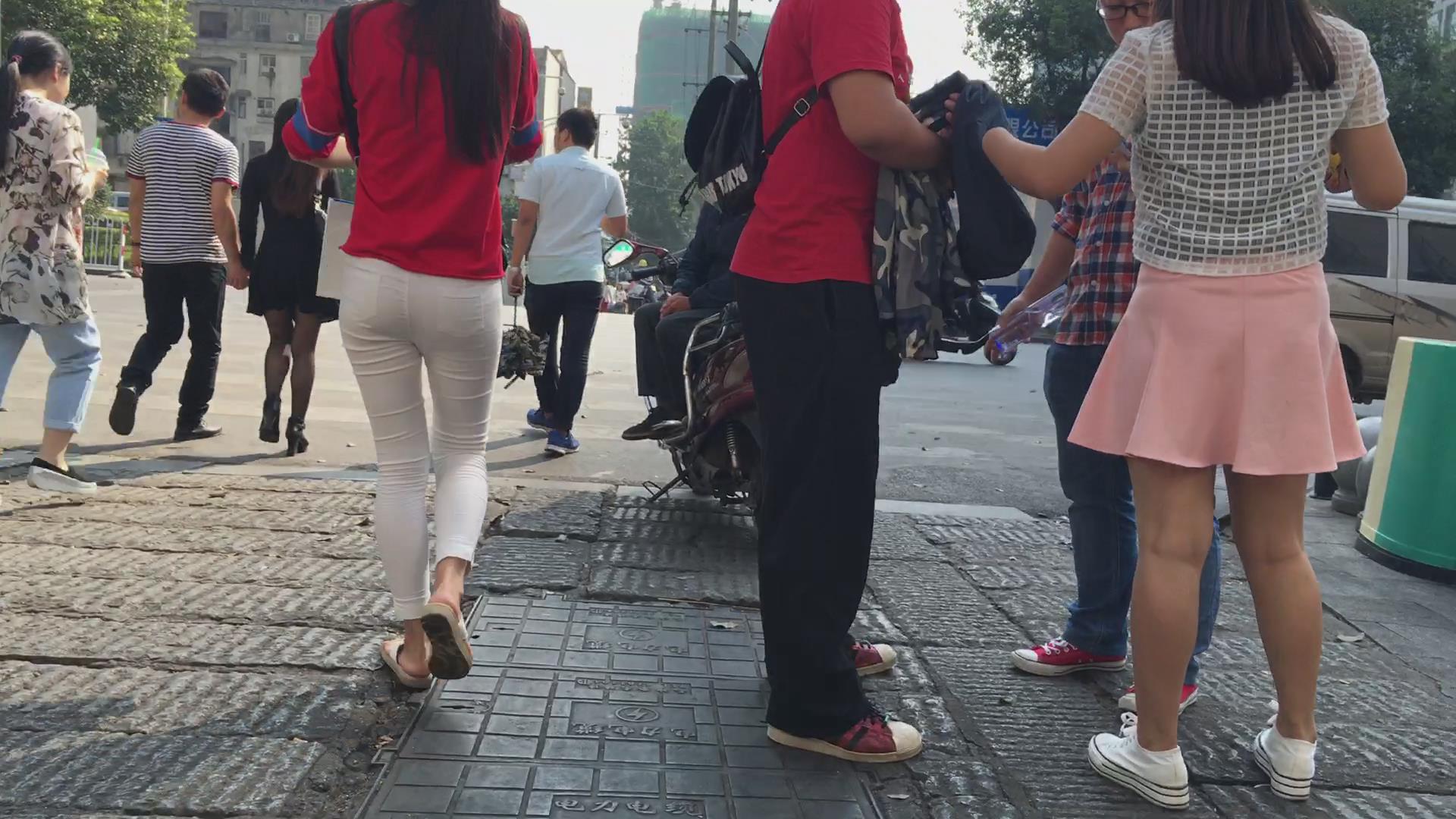 紧身白裤斑点内内红衣小美女 编号5618